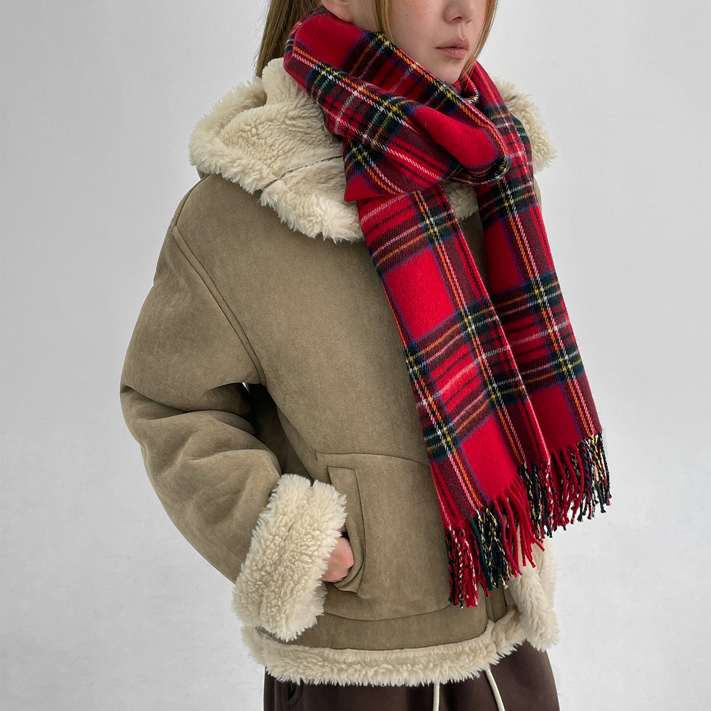 テクラン チェック マフラー (ウール100%)