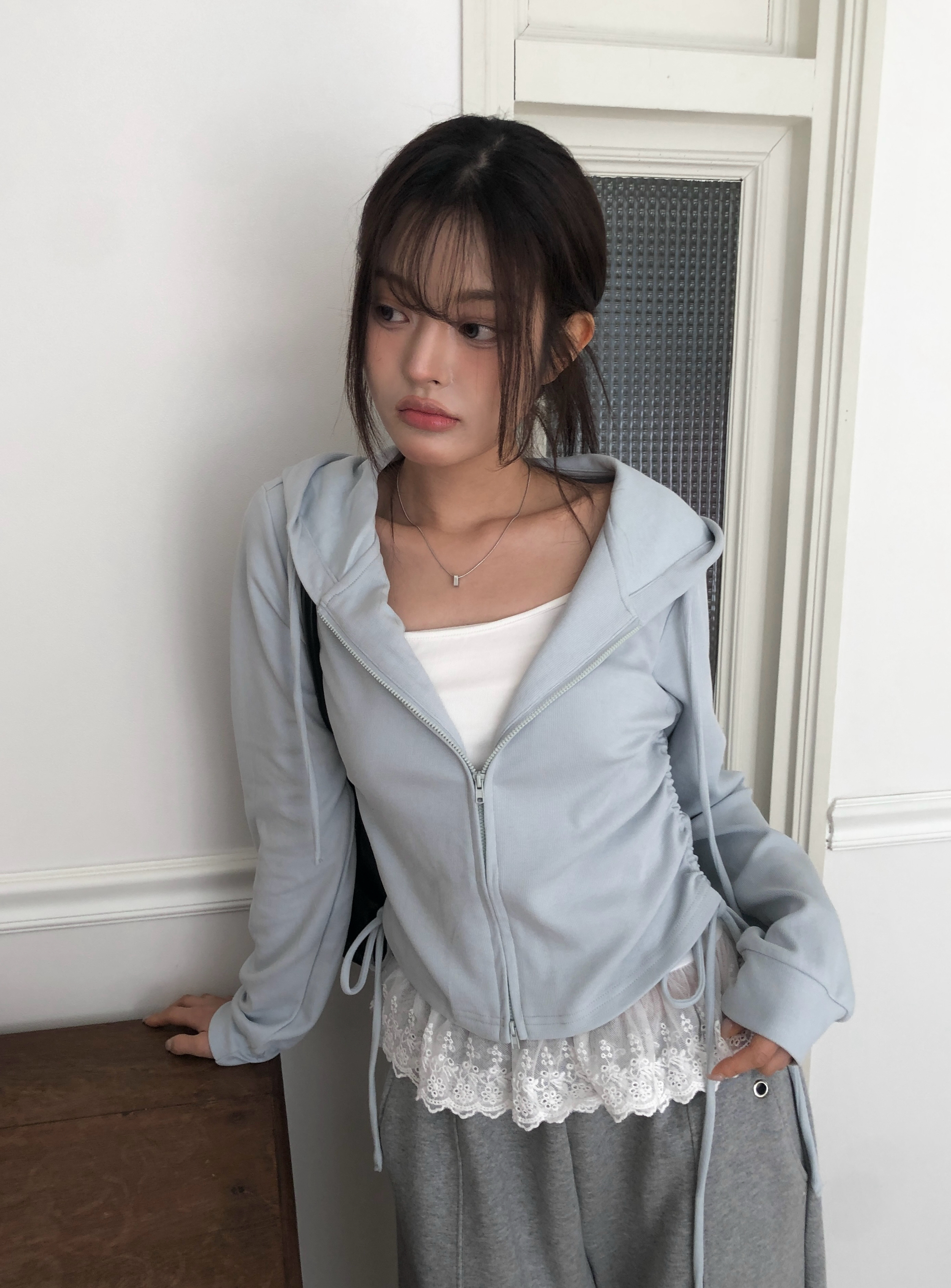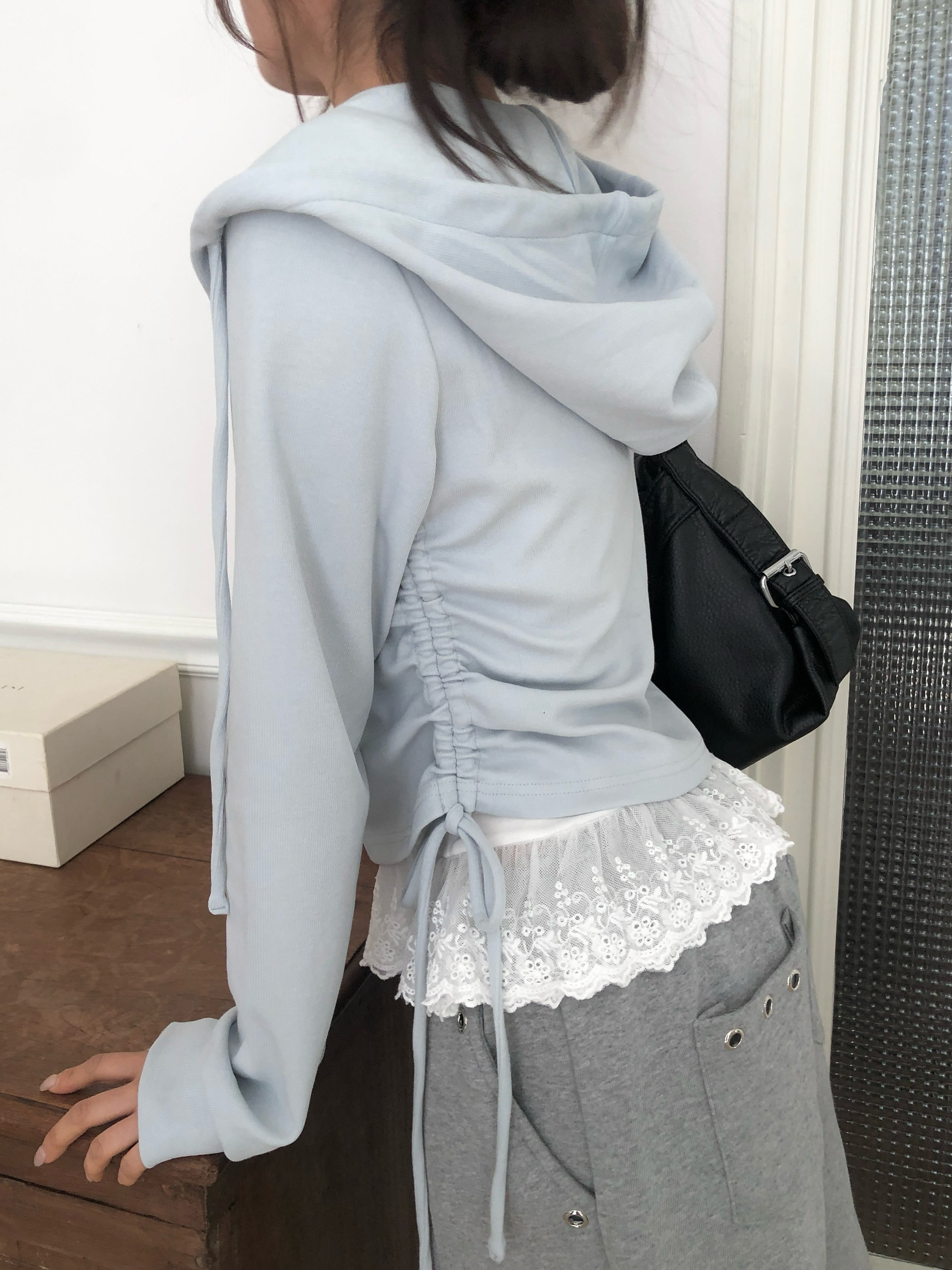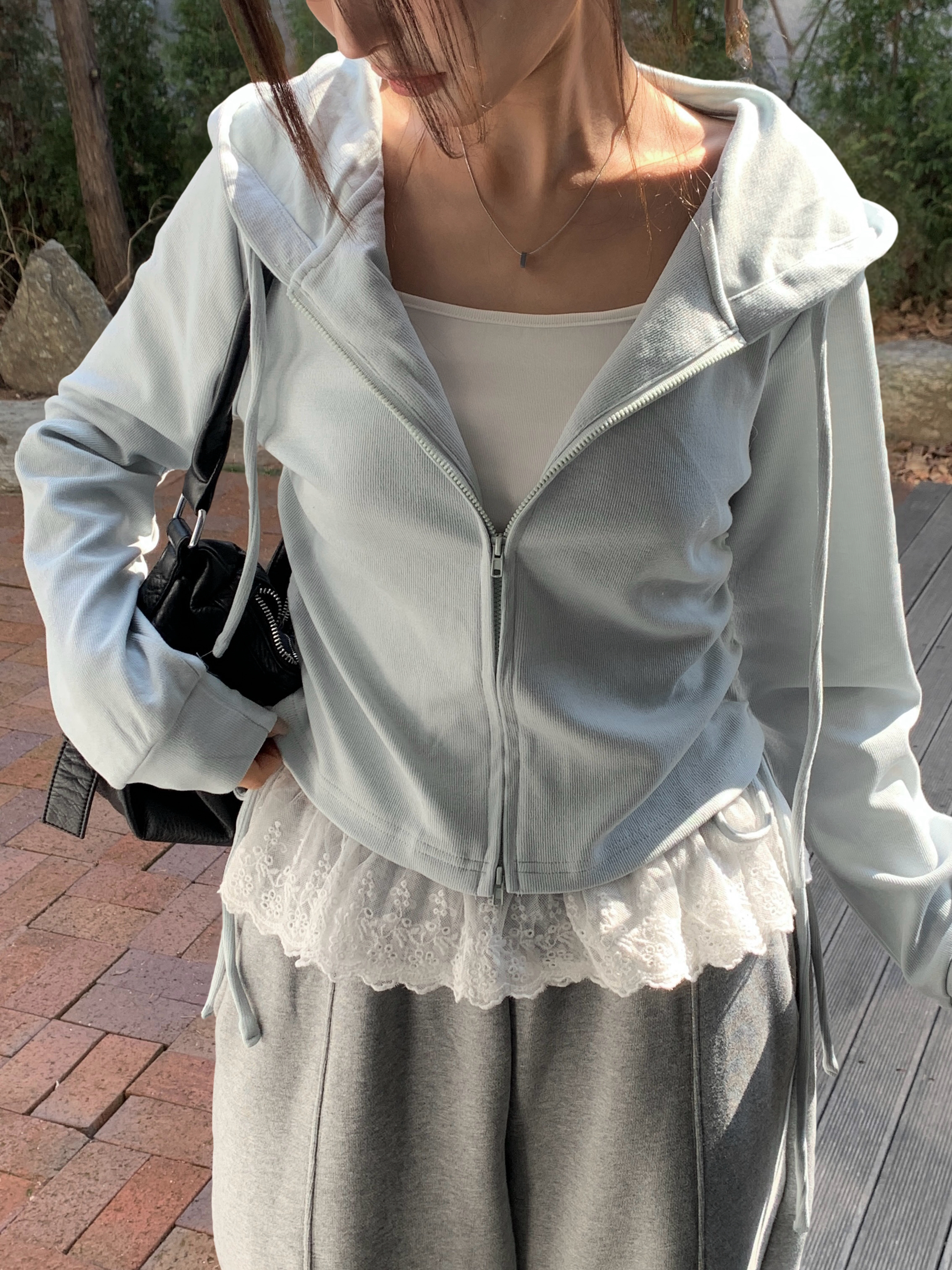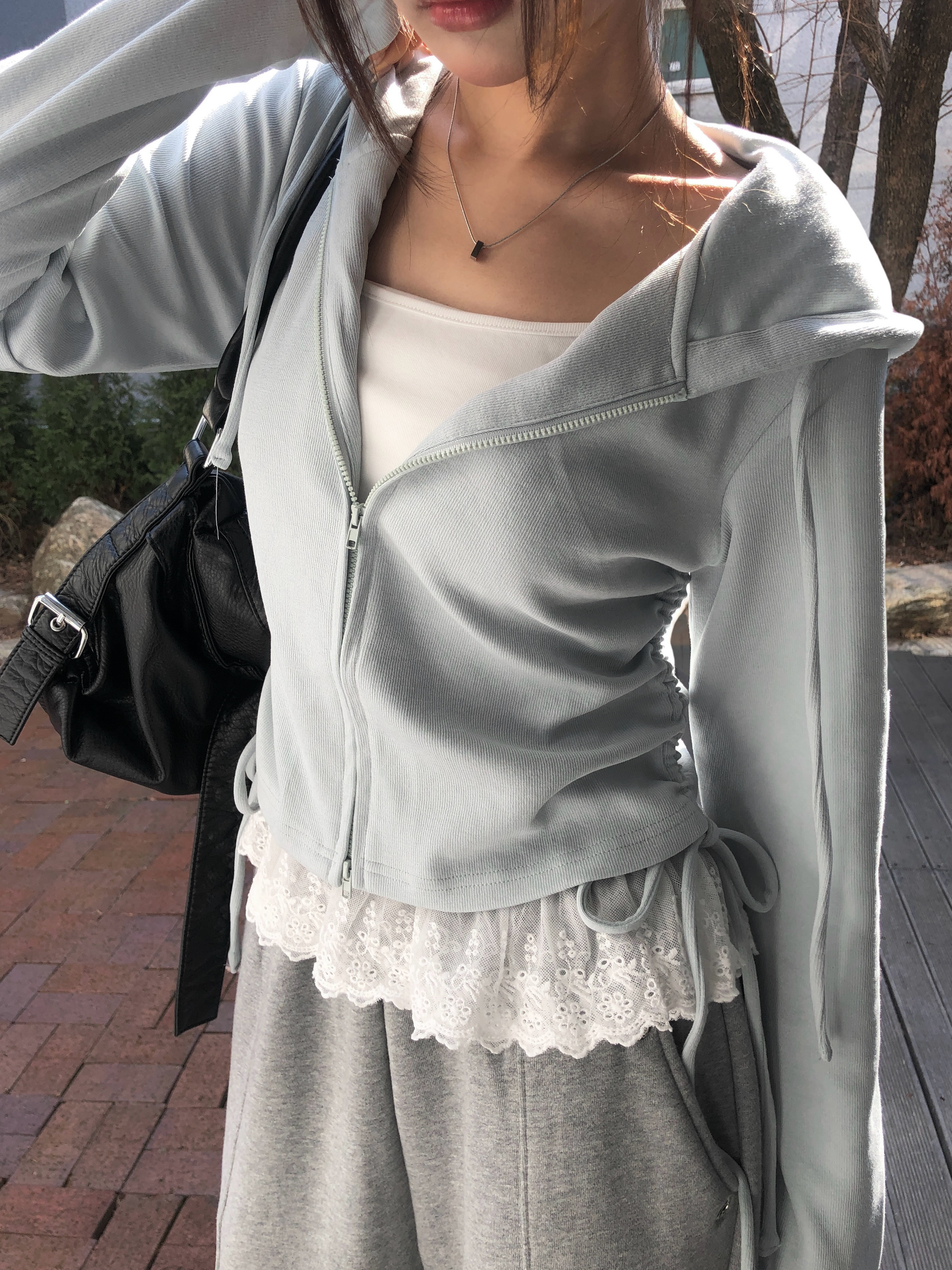 裾レースキャミソール+サイドシャーリングパーカーセット