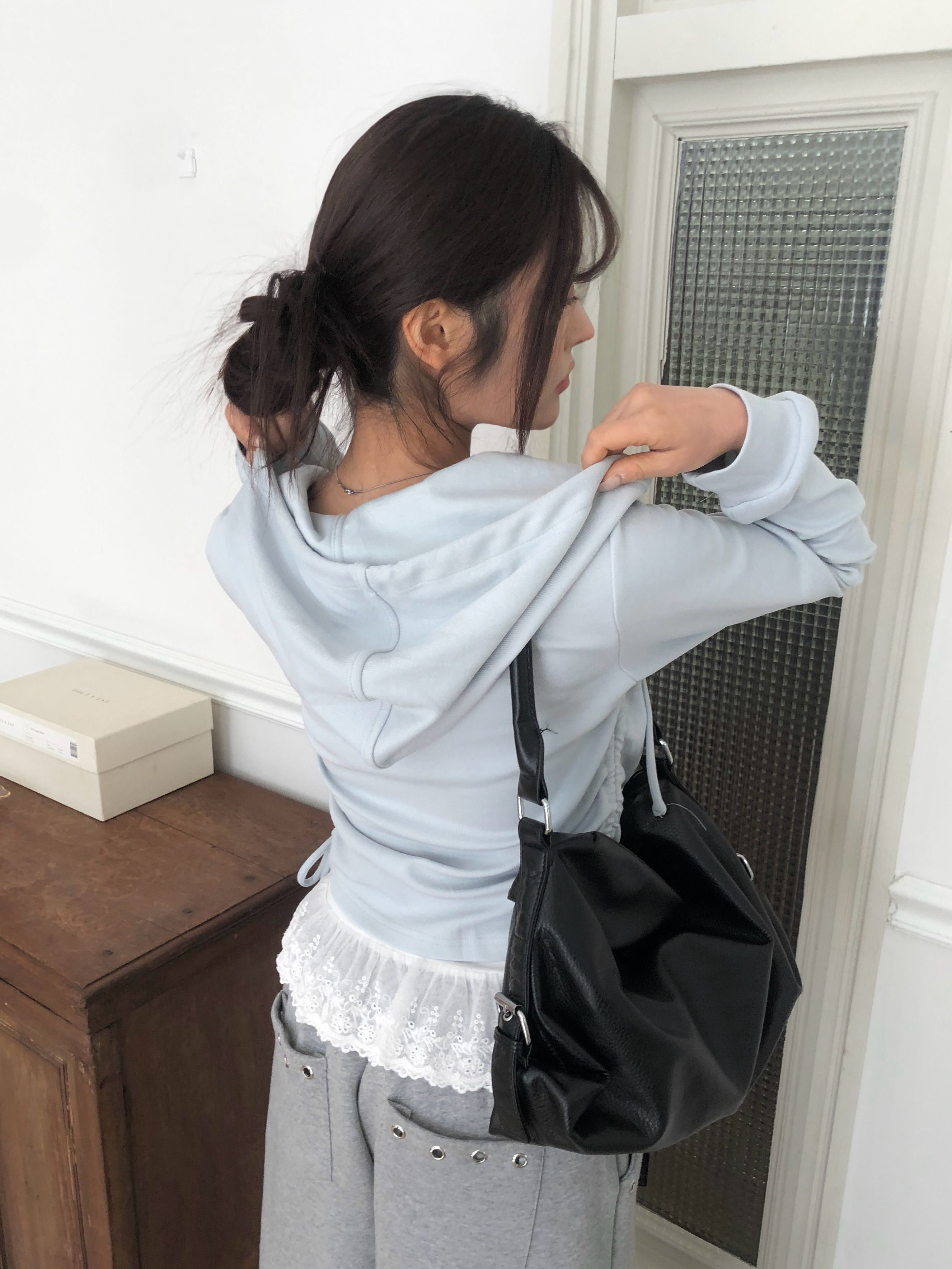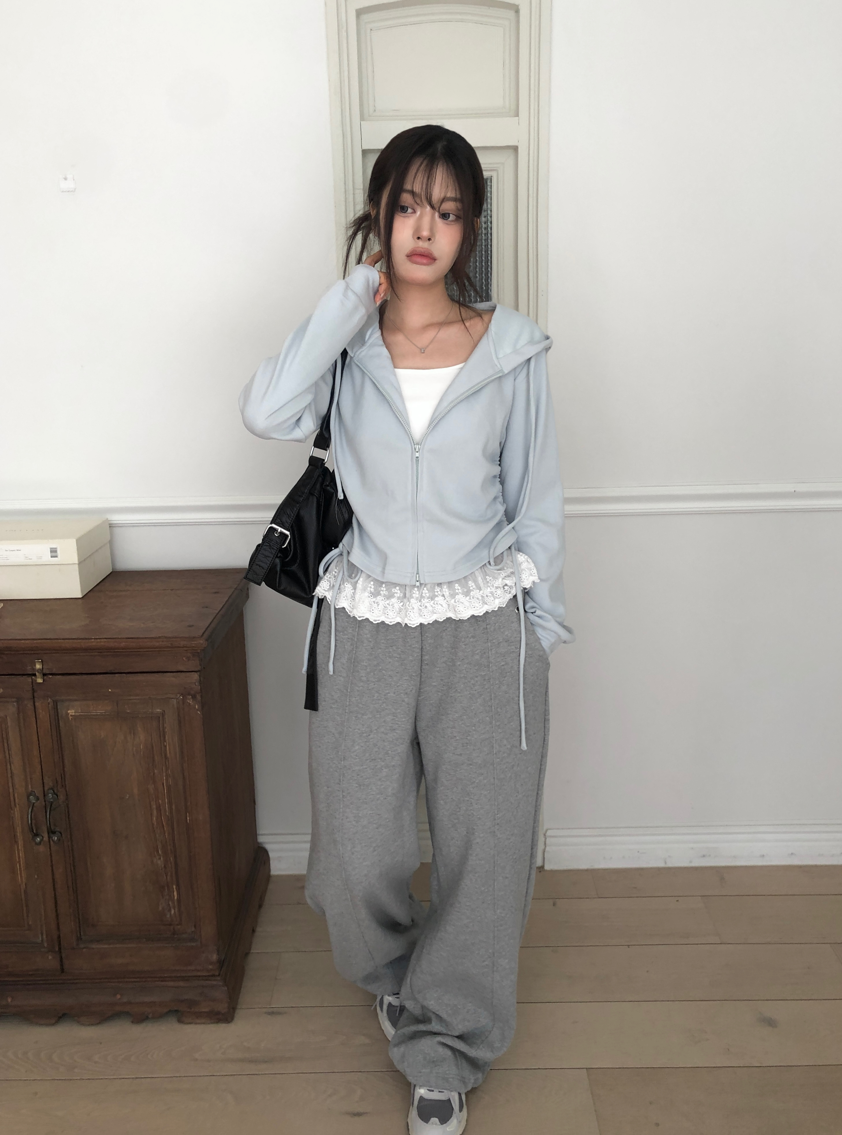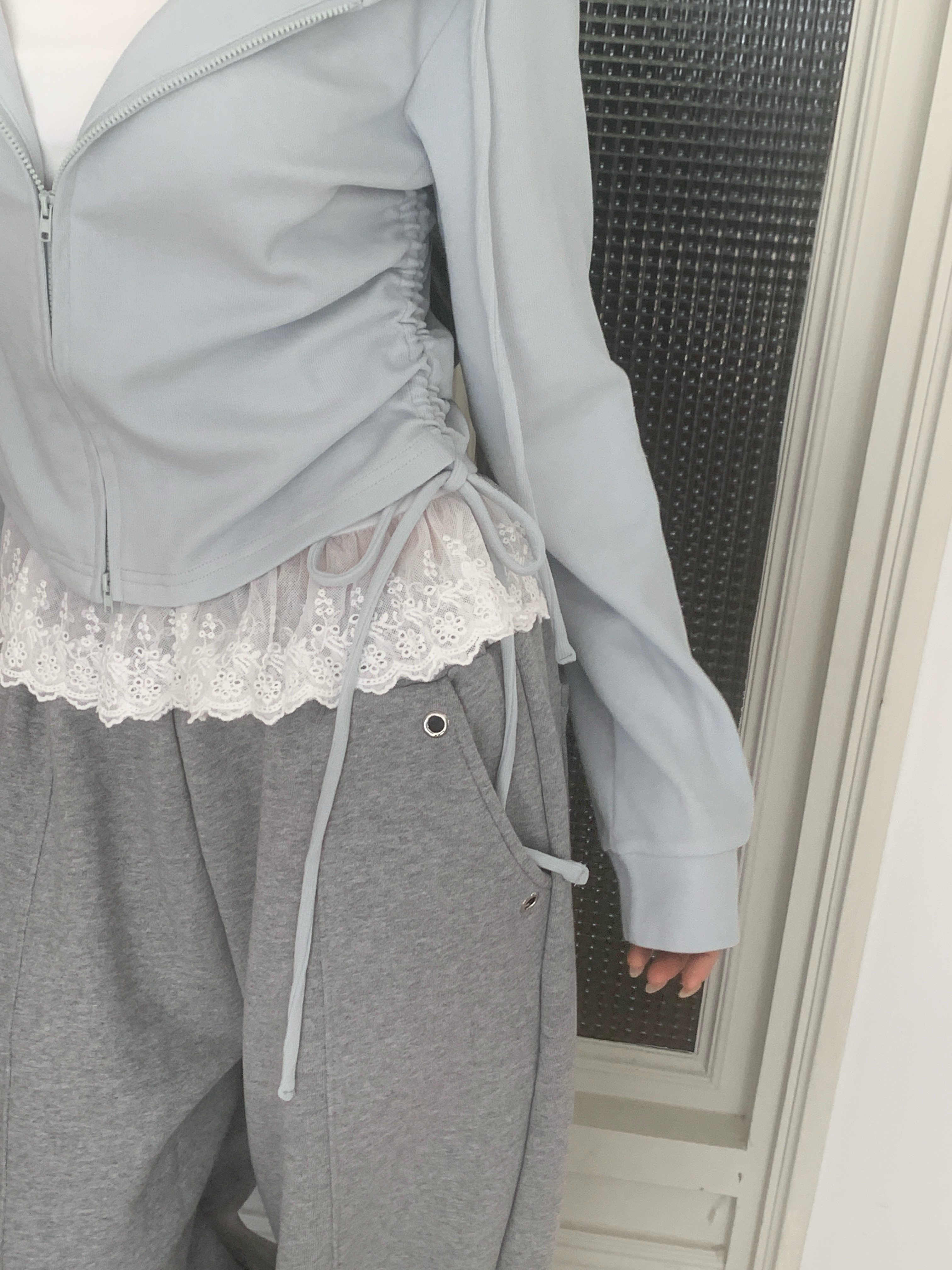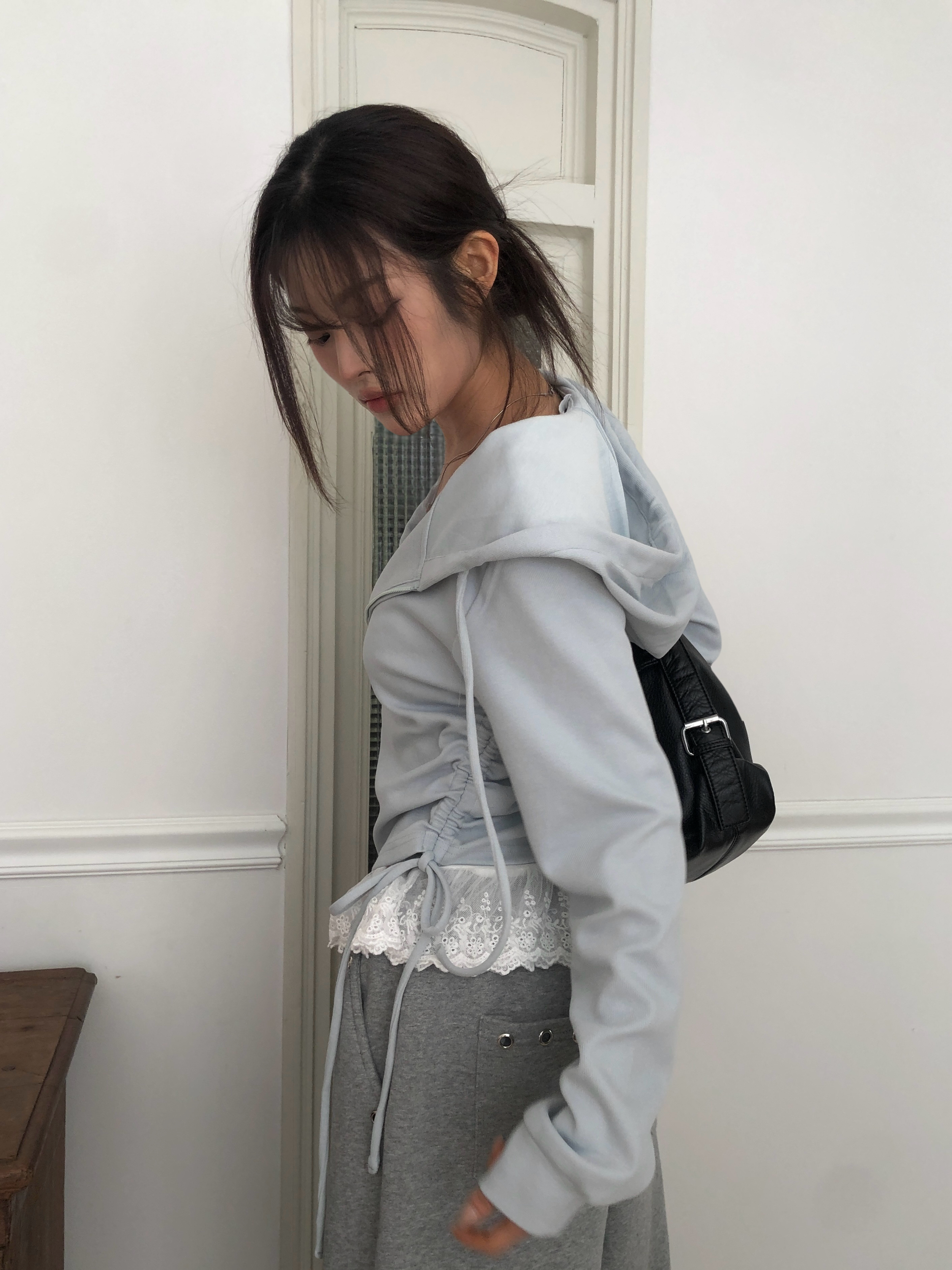 裾レースキャミソール+サイドシャーリングパーカーセット