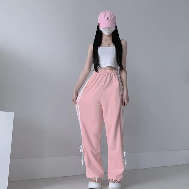 y2kバレエコアリボンワイドパンツ