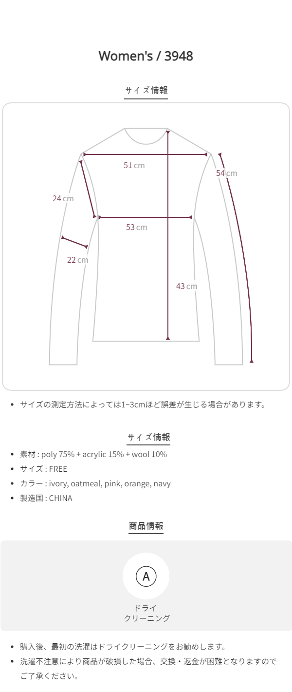 商品準備期間:注文確定後3~5営業日以内に入庫予定