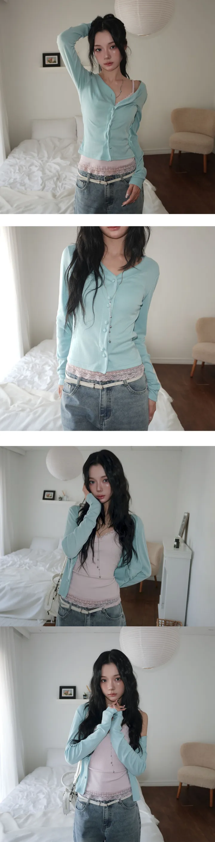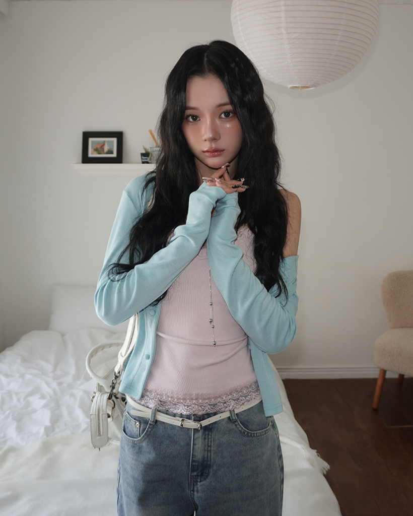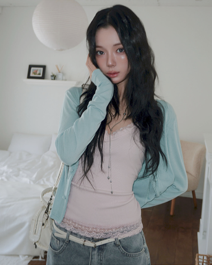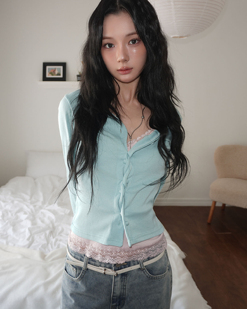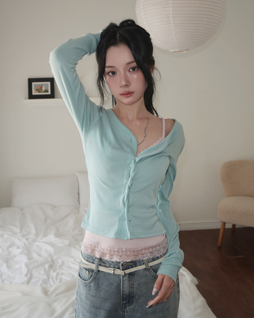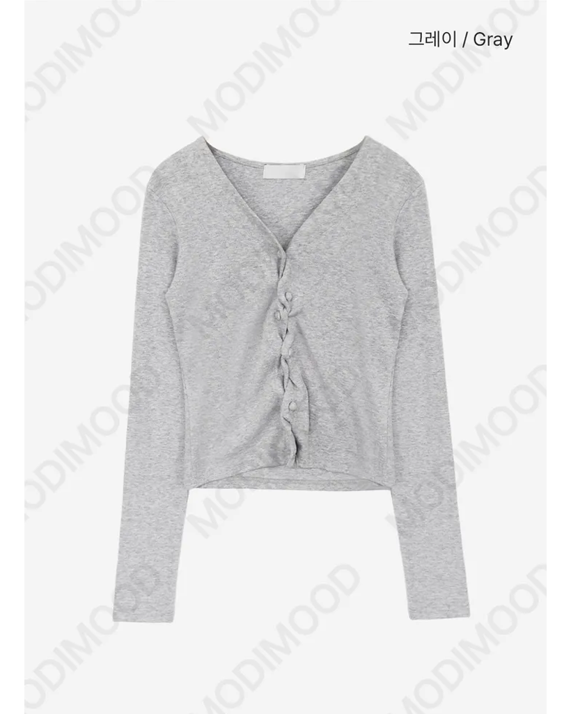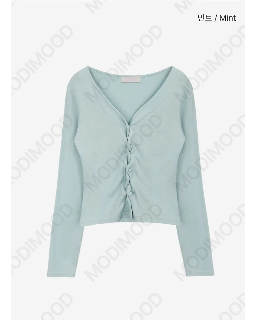 (4 color) パステル ねじり デザイン ボタン Vネック カーディガン
