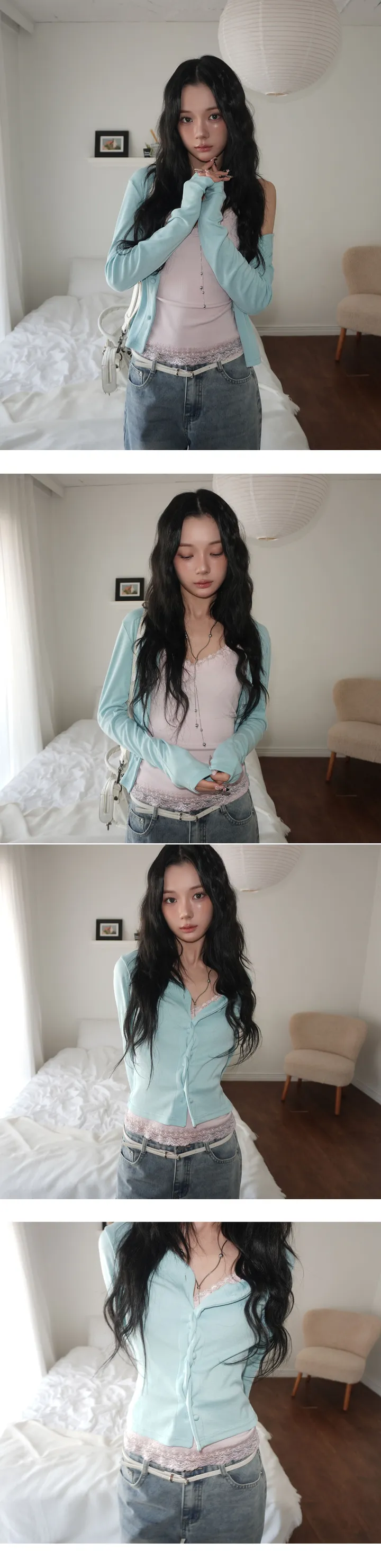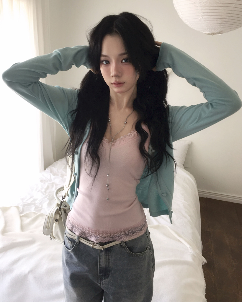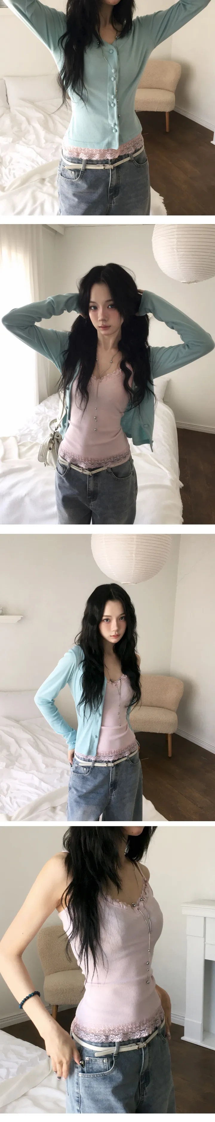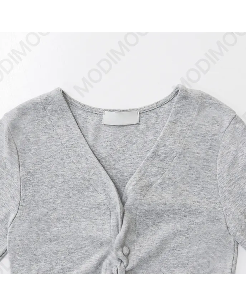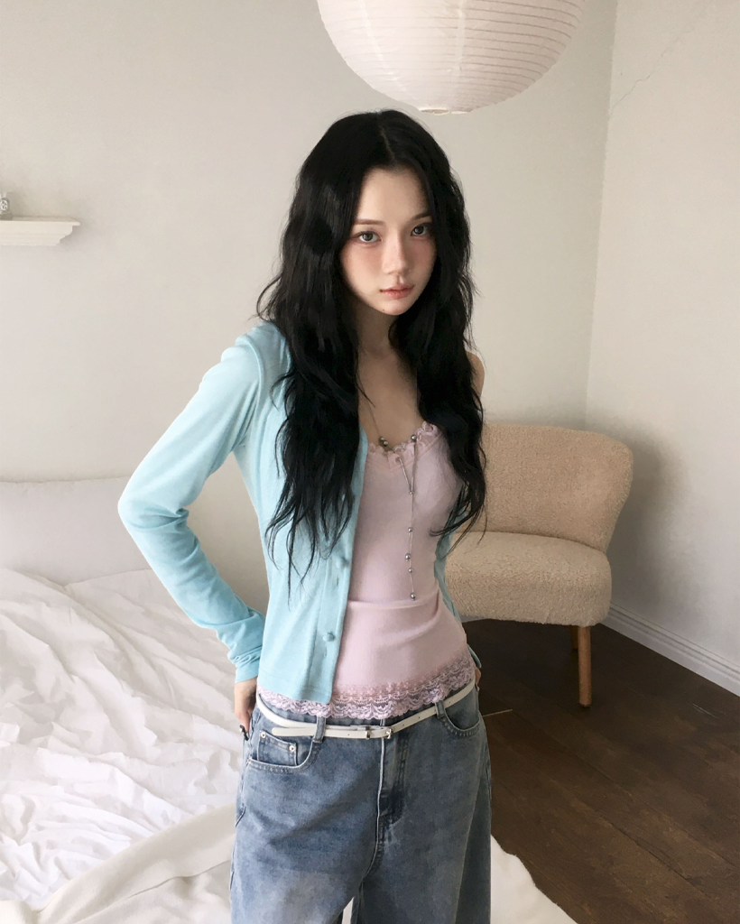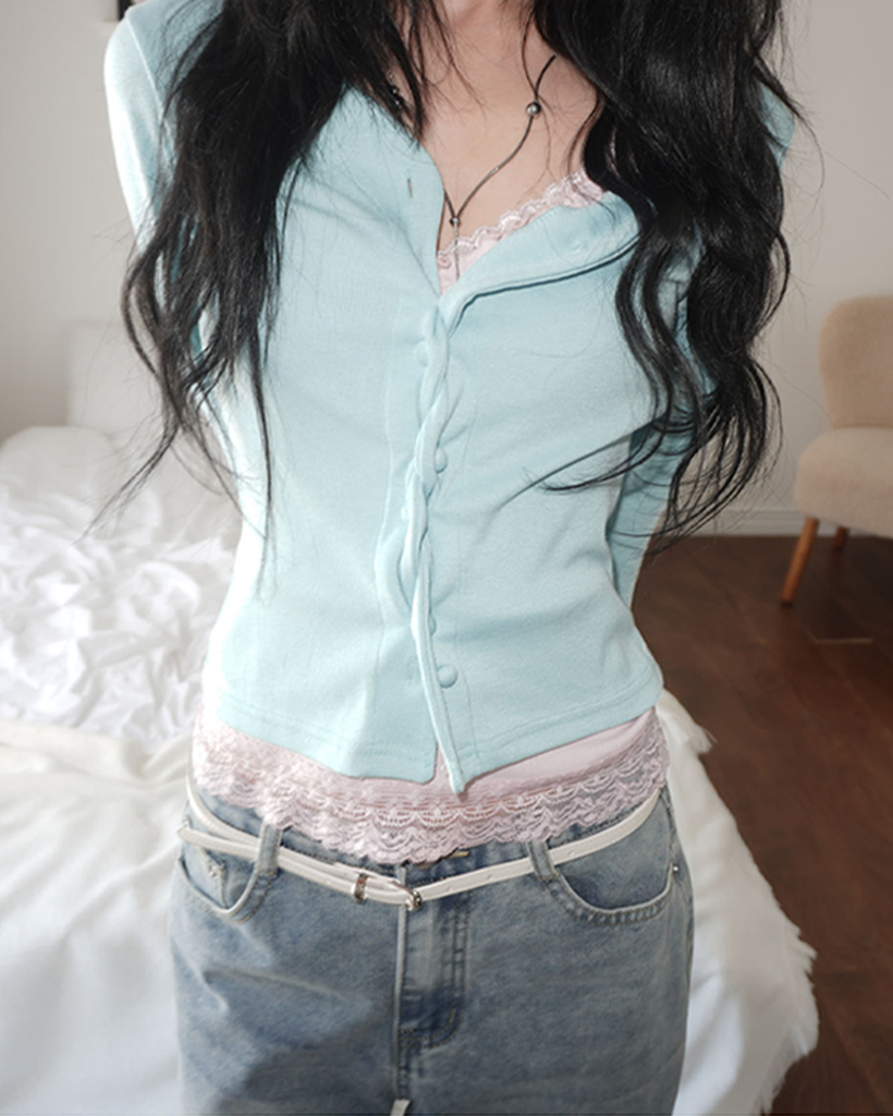 (4 color) パステル ねじり デザイン ボタン Vネック カーディガン