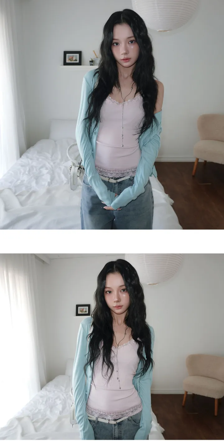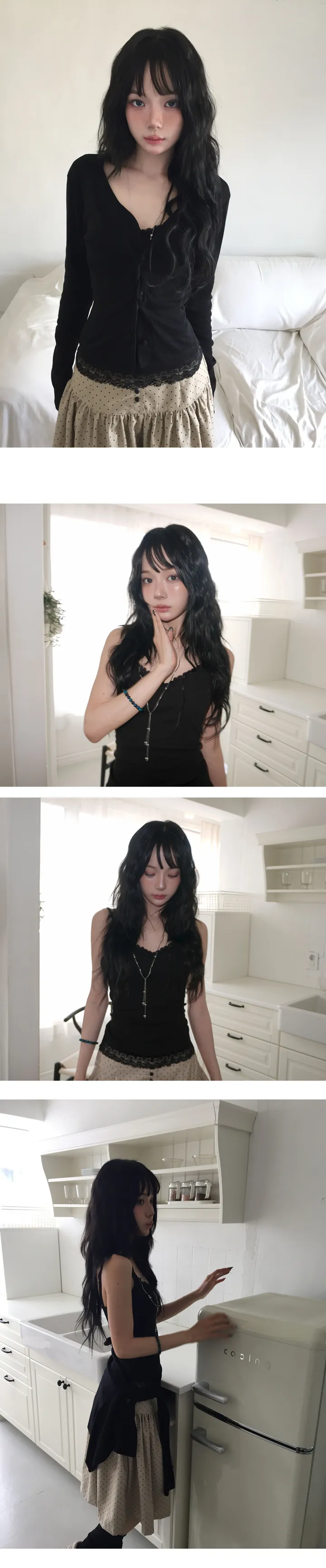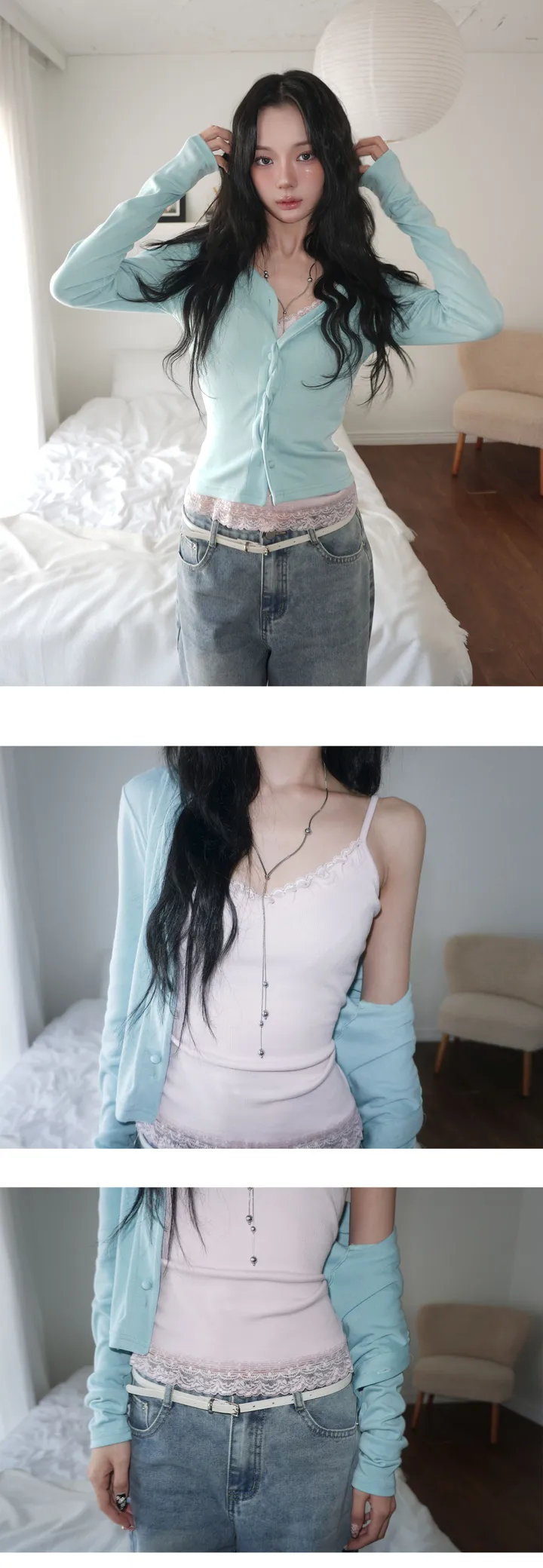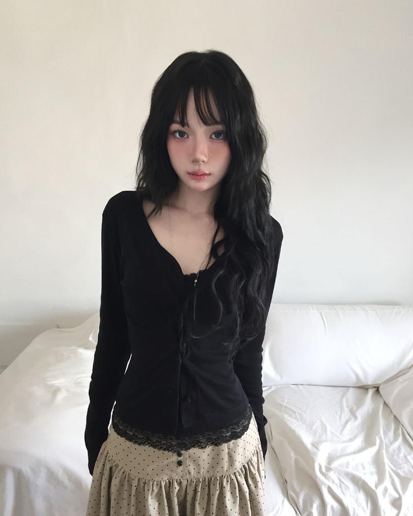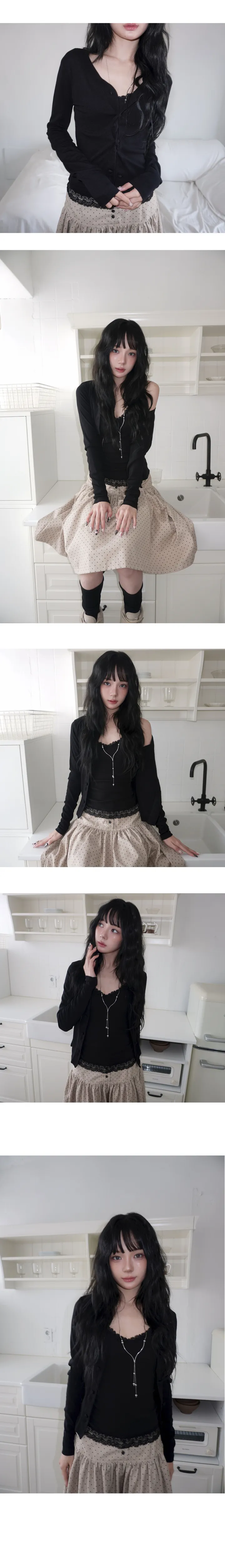 (4 color) パステル ねじり デザイン ボタン Vネック カーディガン