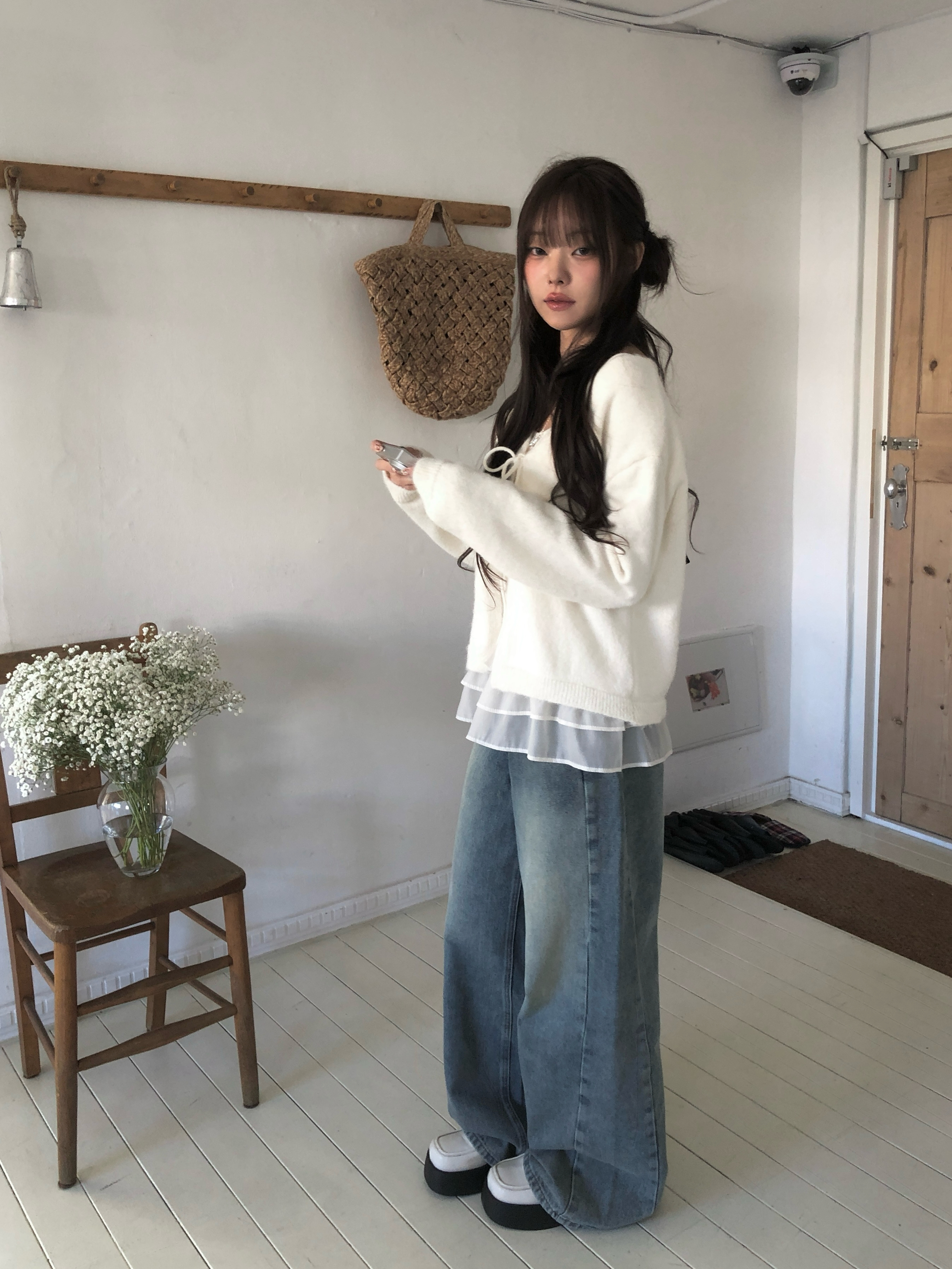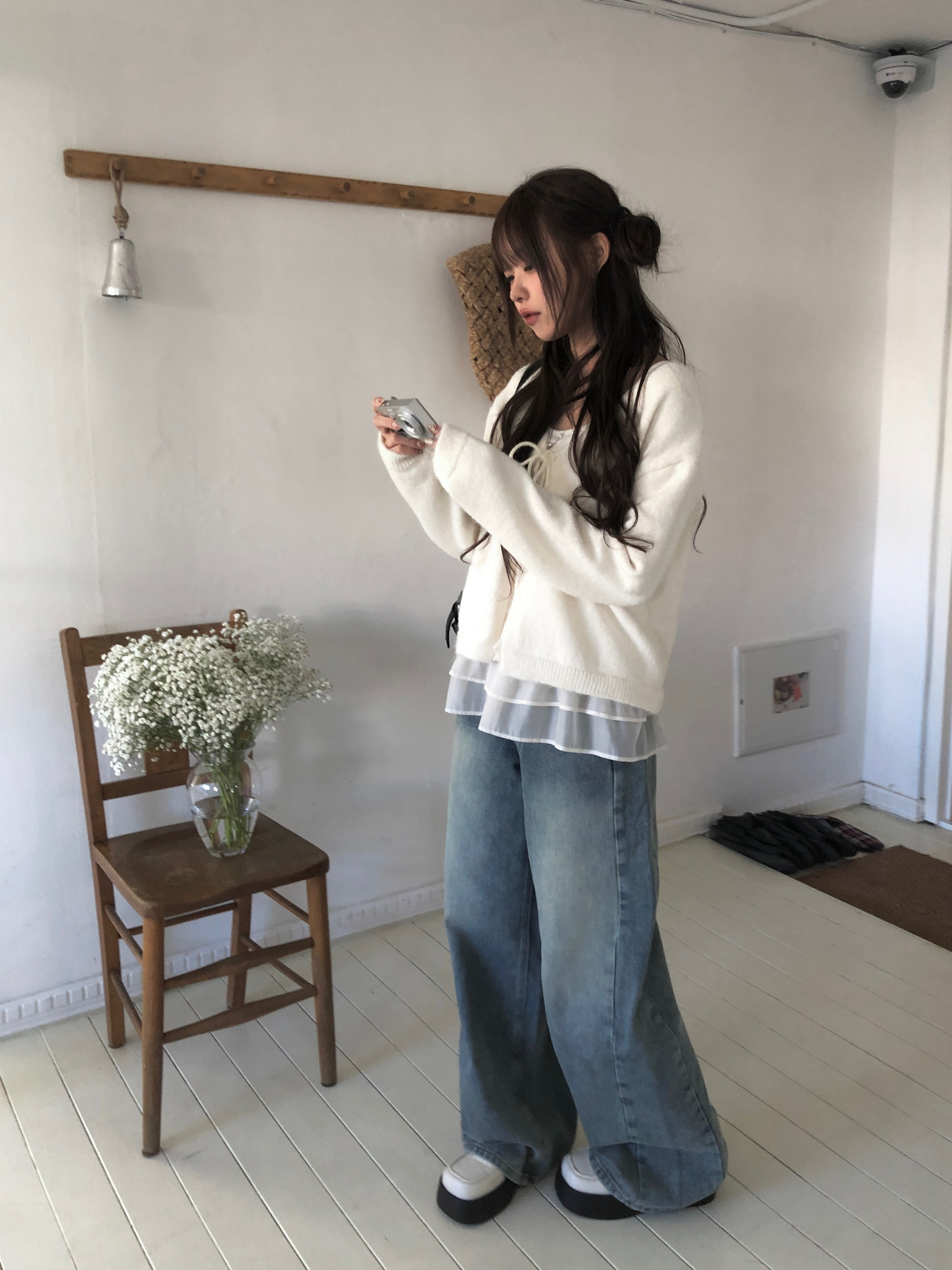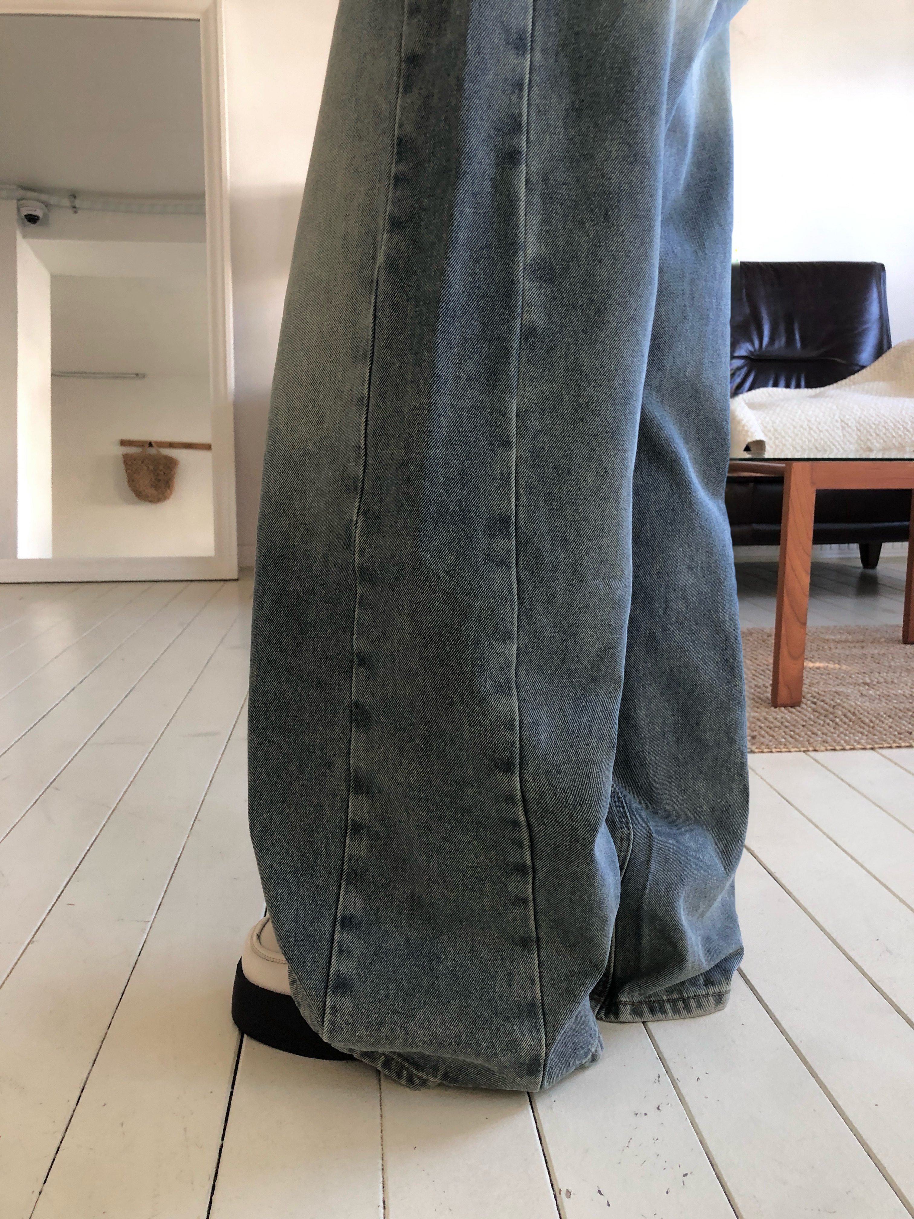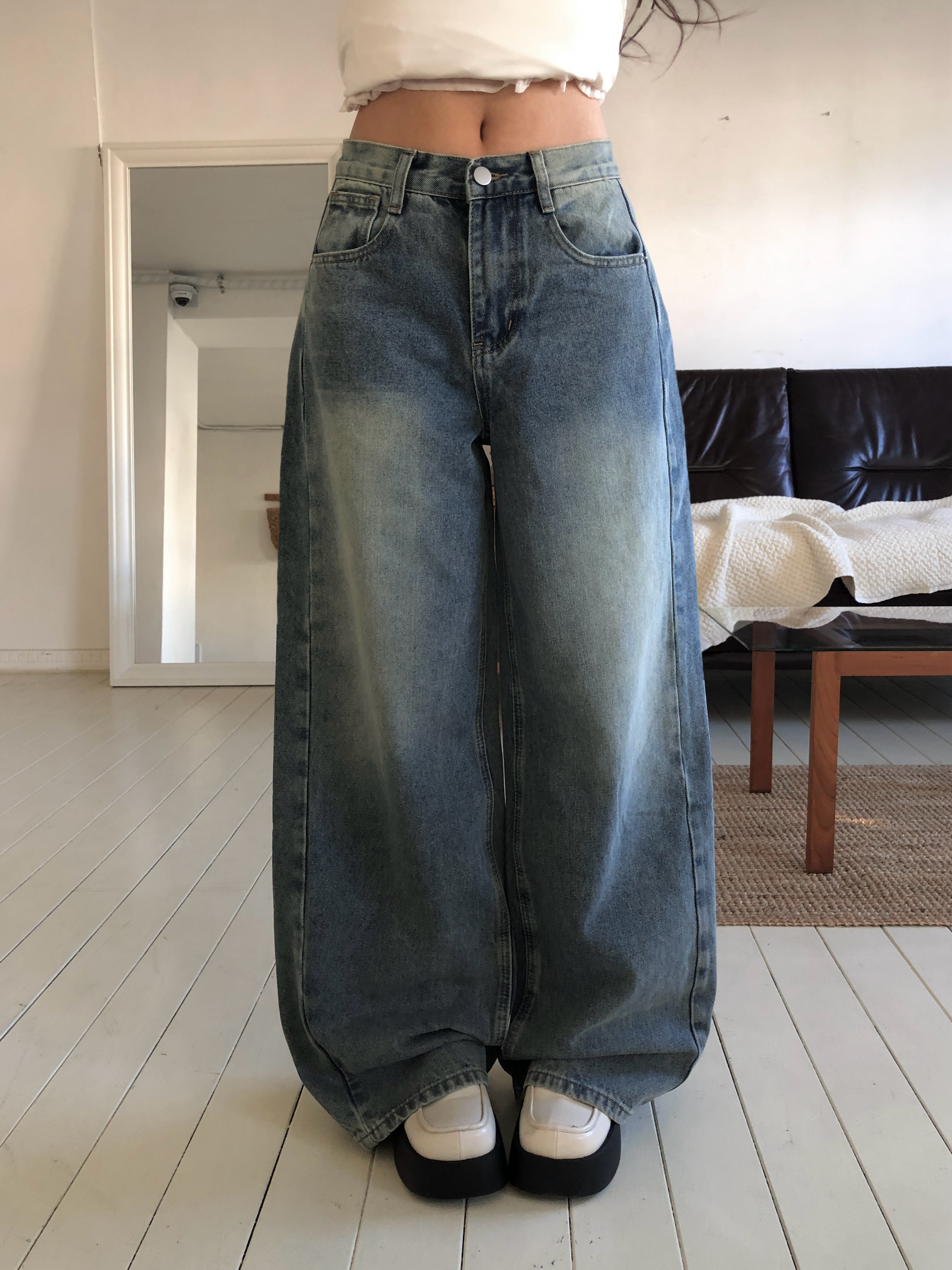 ウォッシングデニムワイドパンツです。