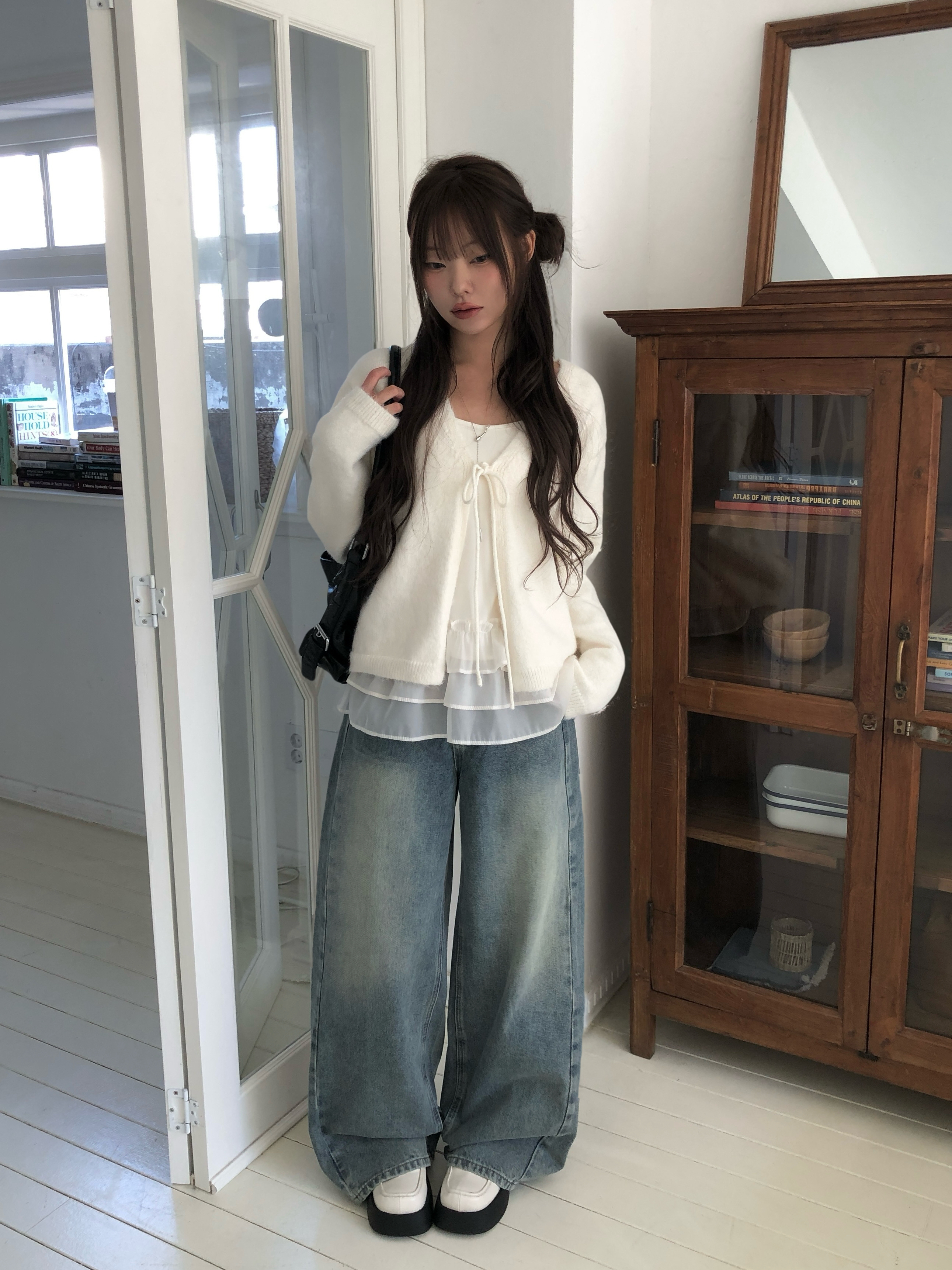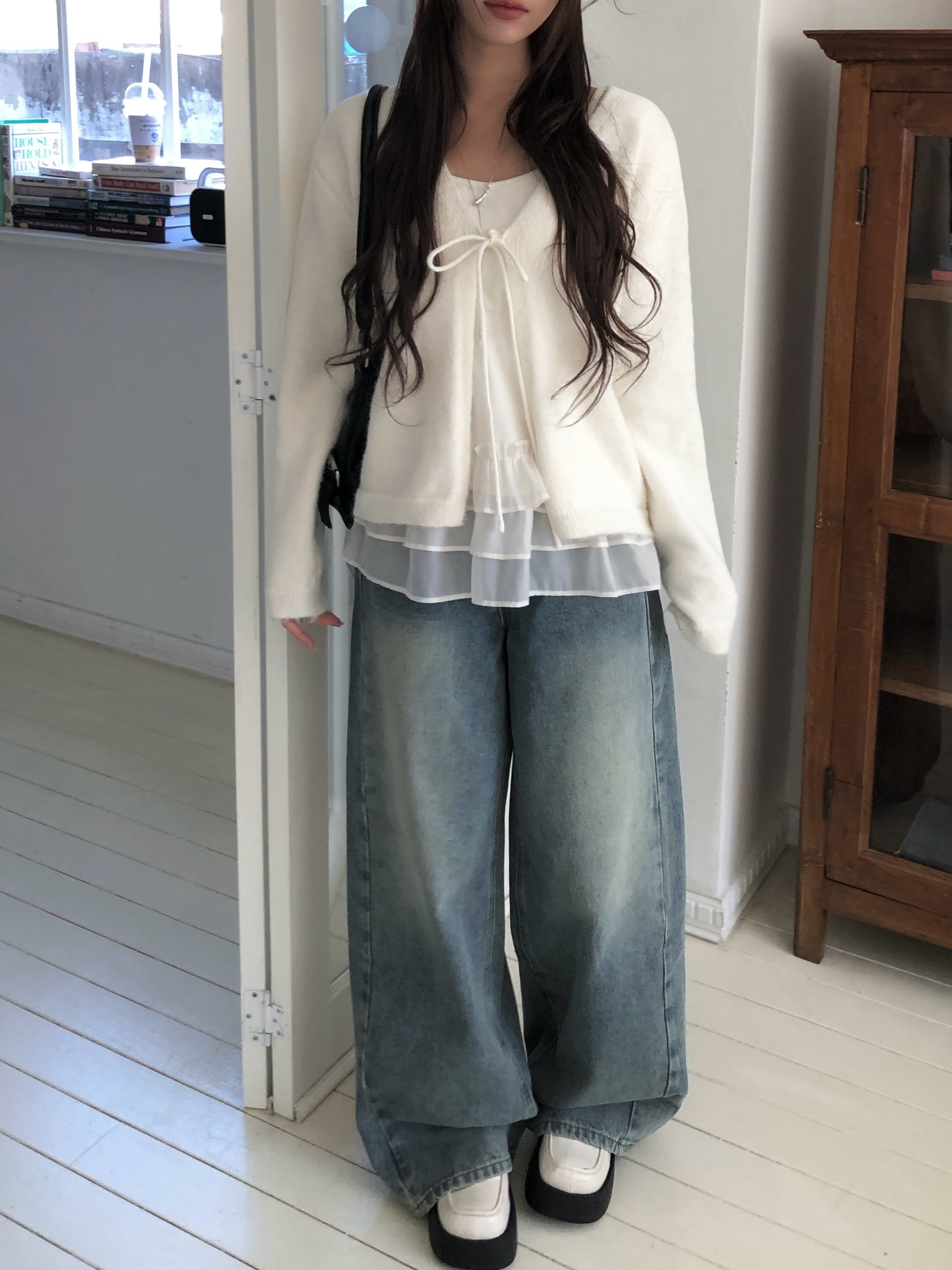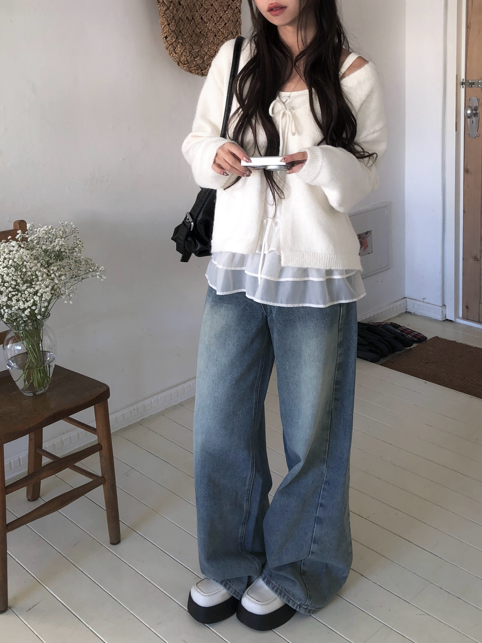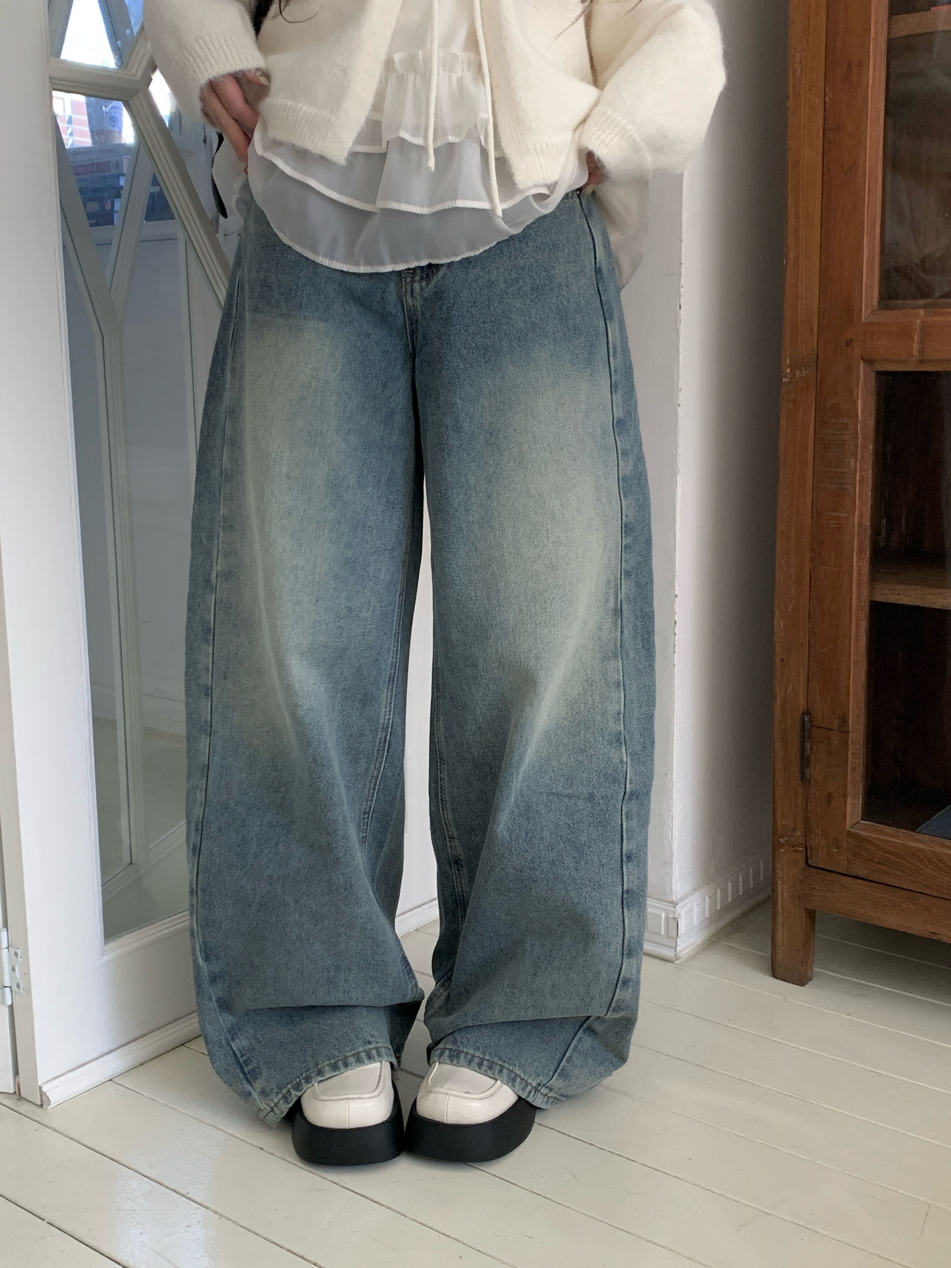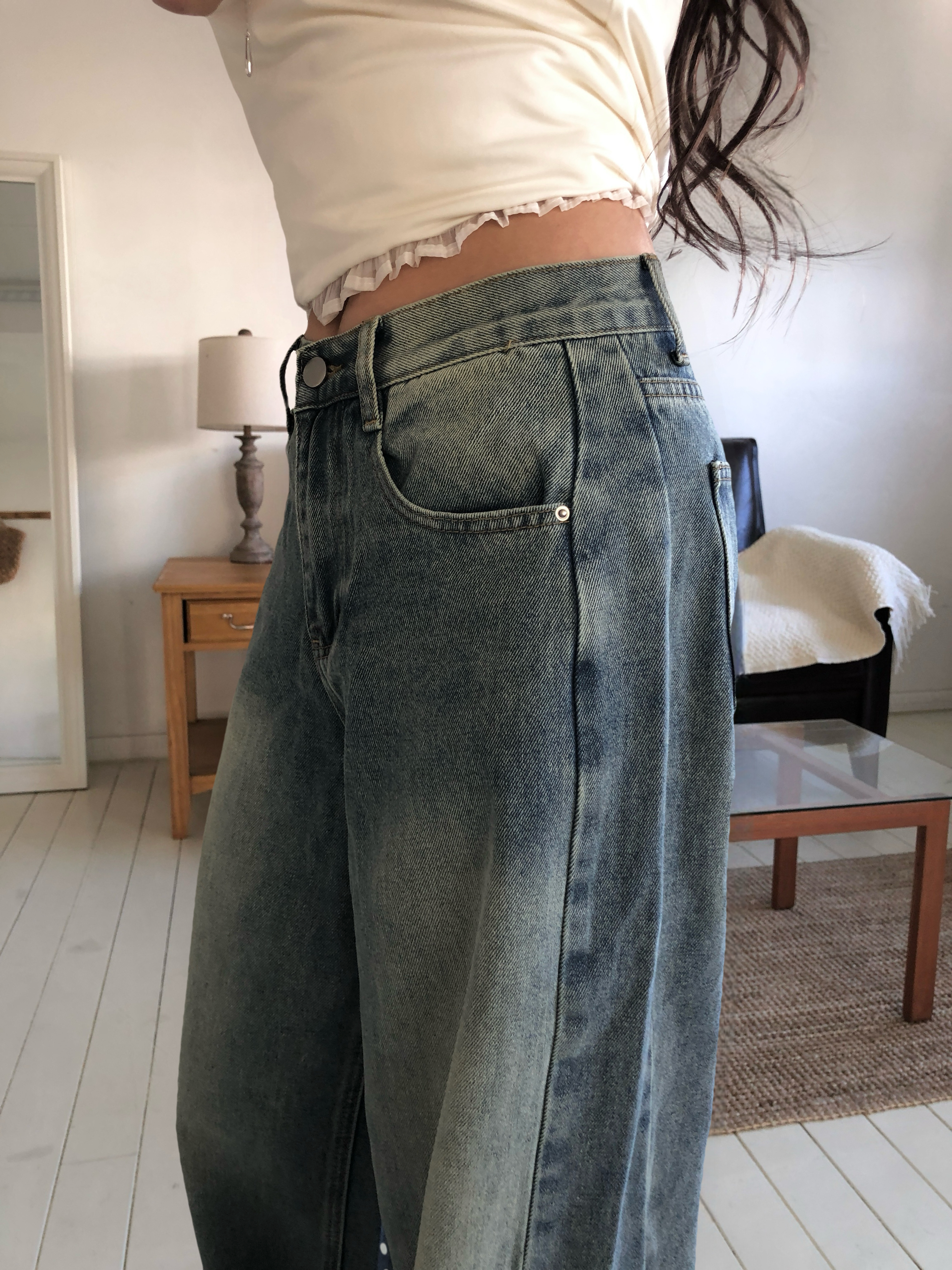 サイド切替ディープウォッシングワイドデニムパンツ