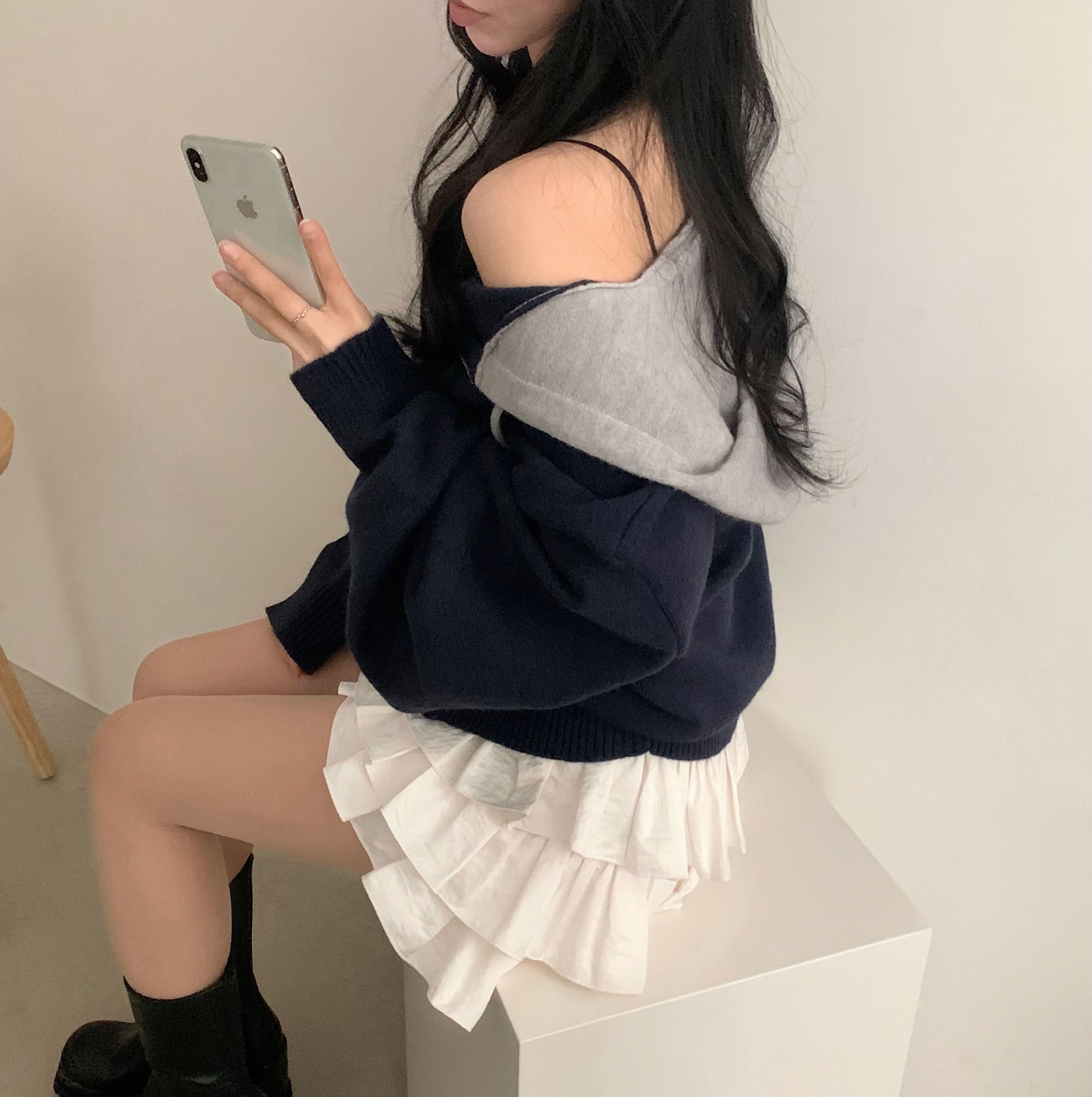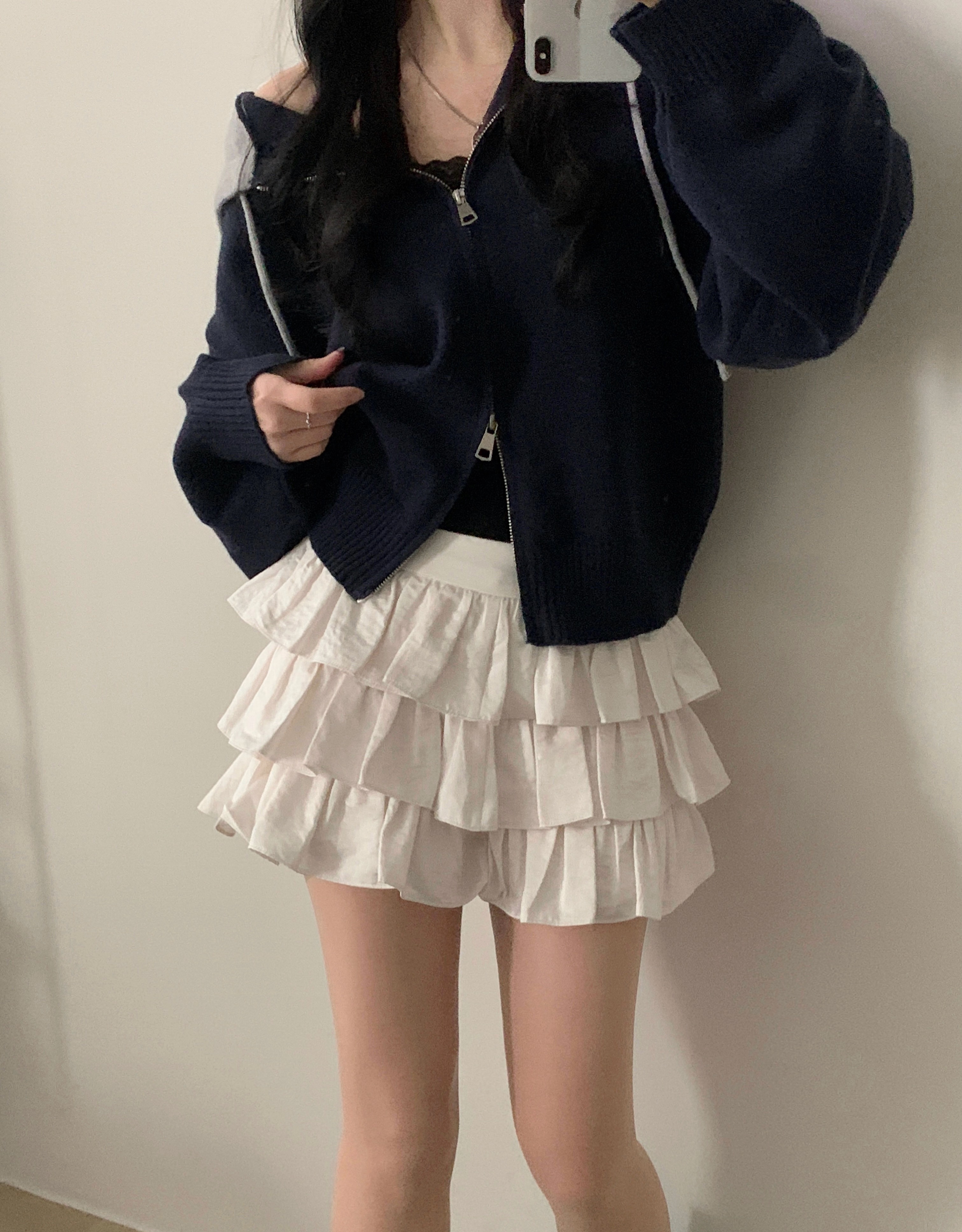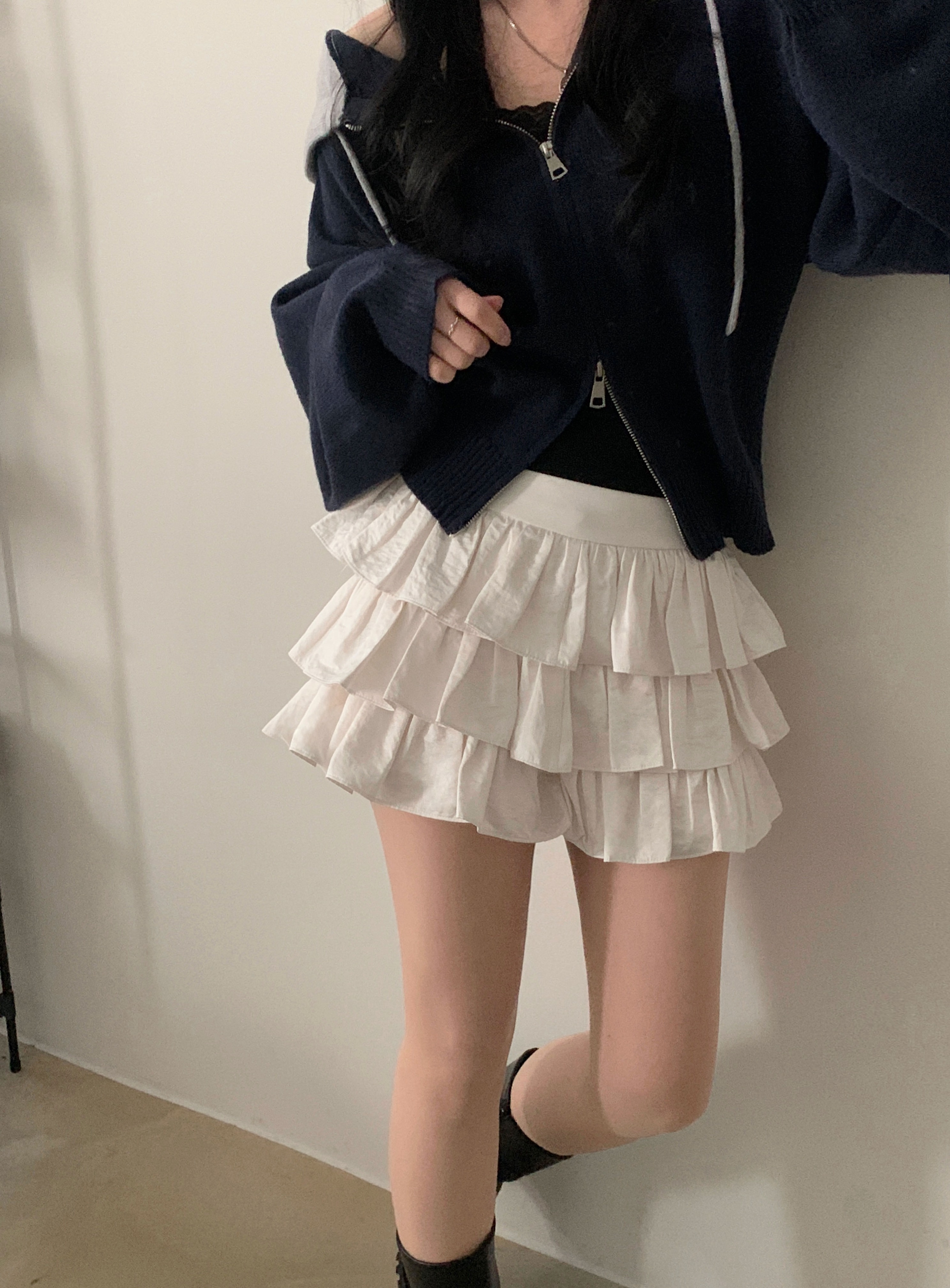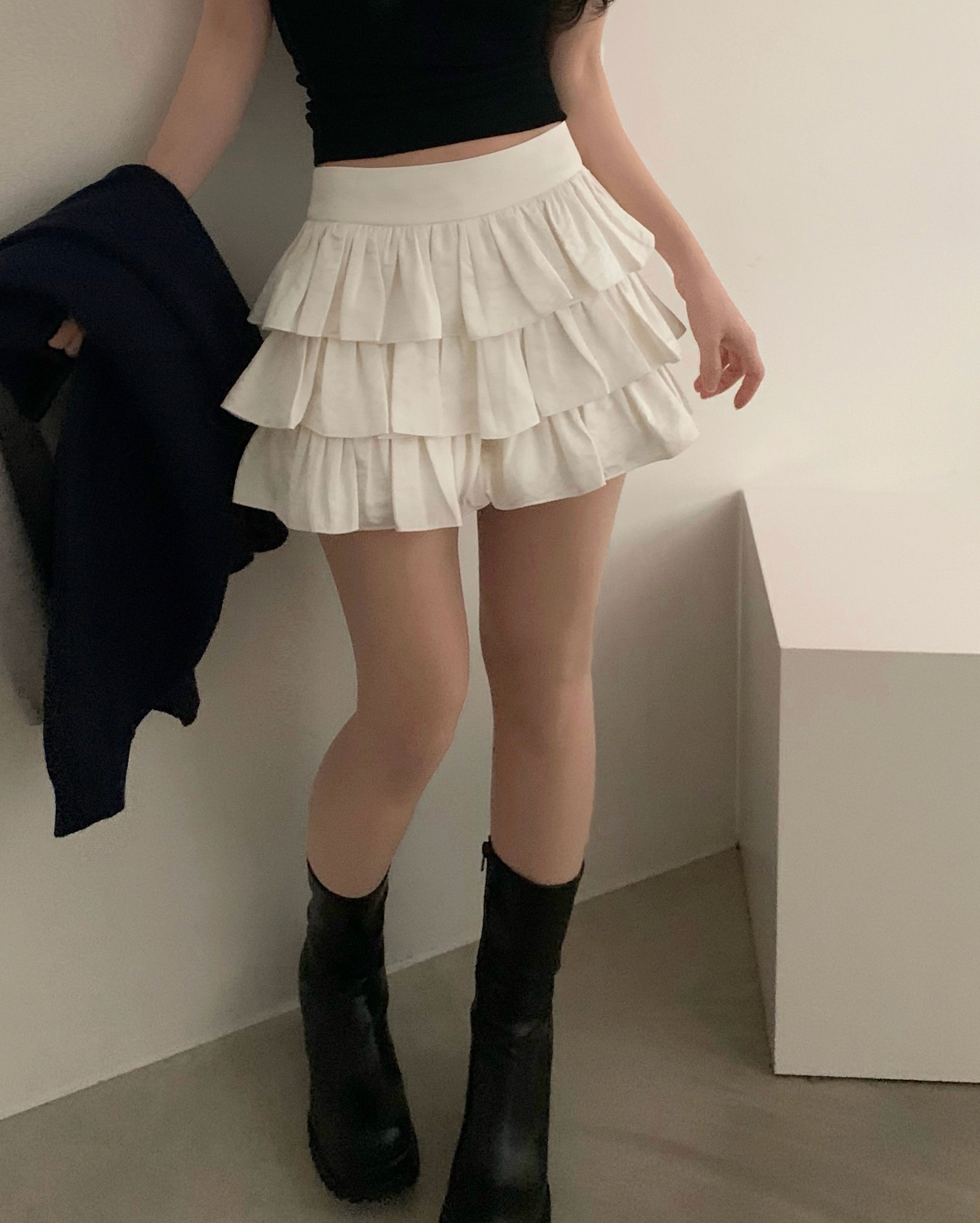 (2size)アイレットサテンティアードスカパン