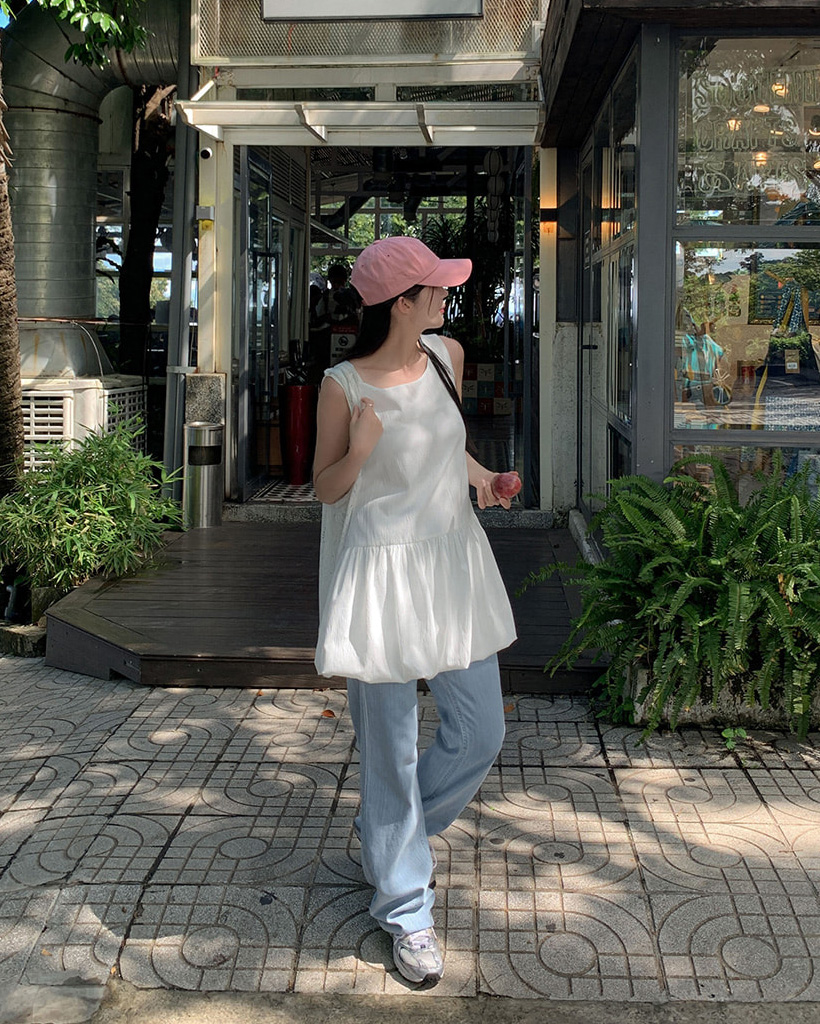 [original]ボリュームシルエット クリーンノースリーブワンピース