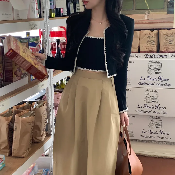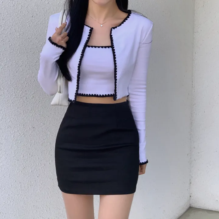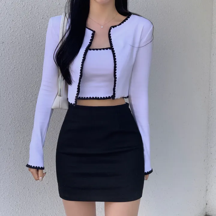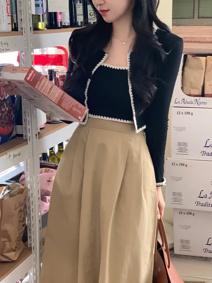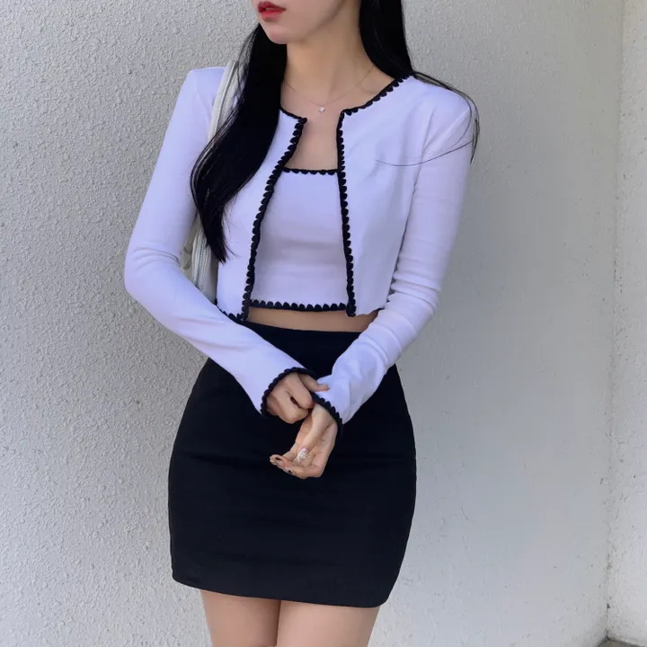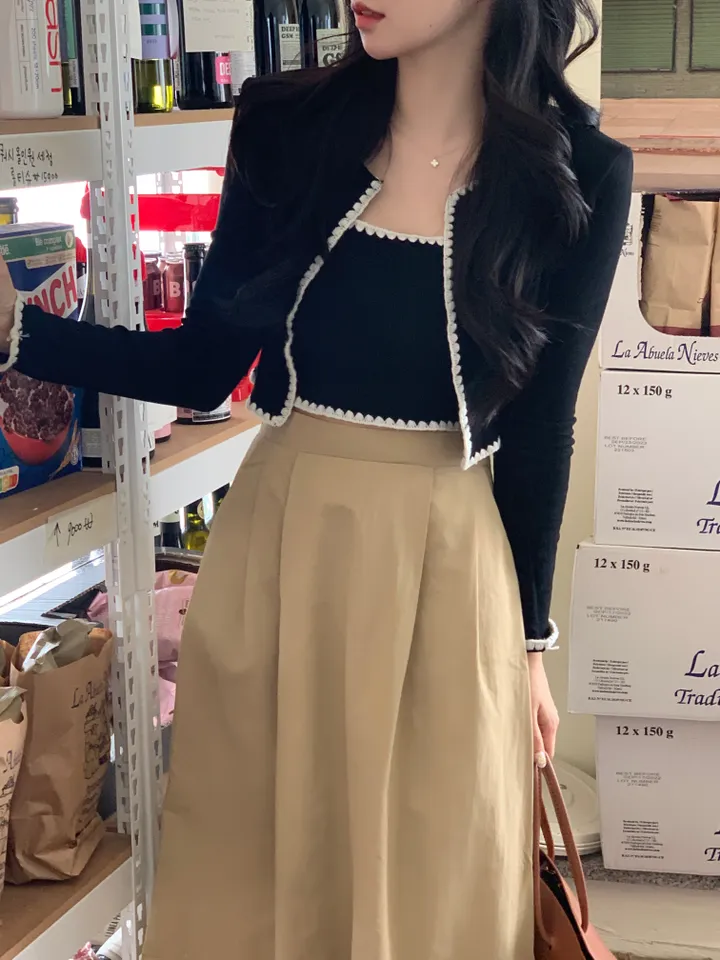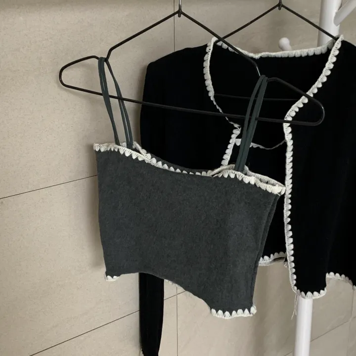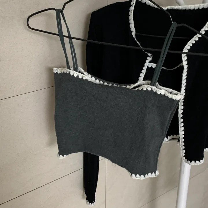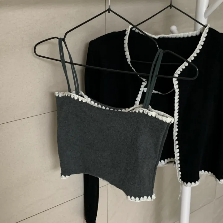 バイカラーレースノースリーブ、カーディガンセット
