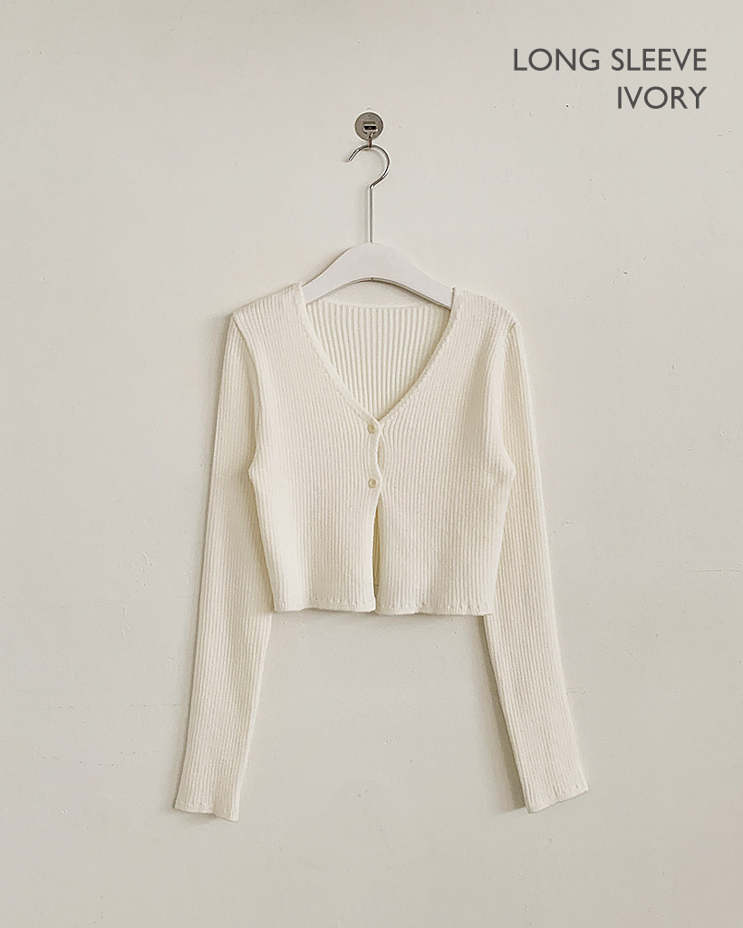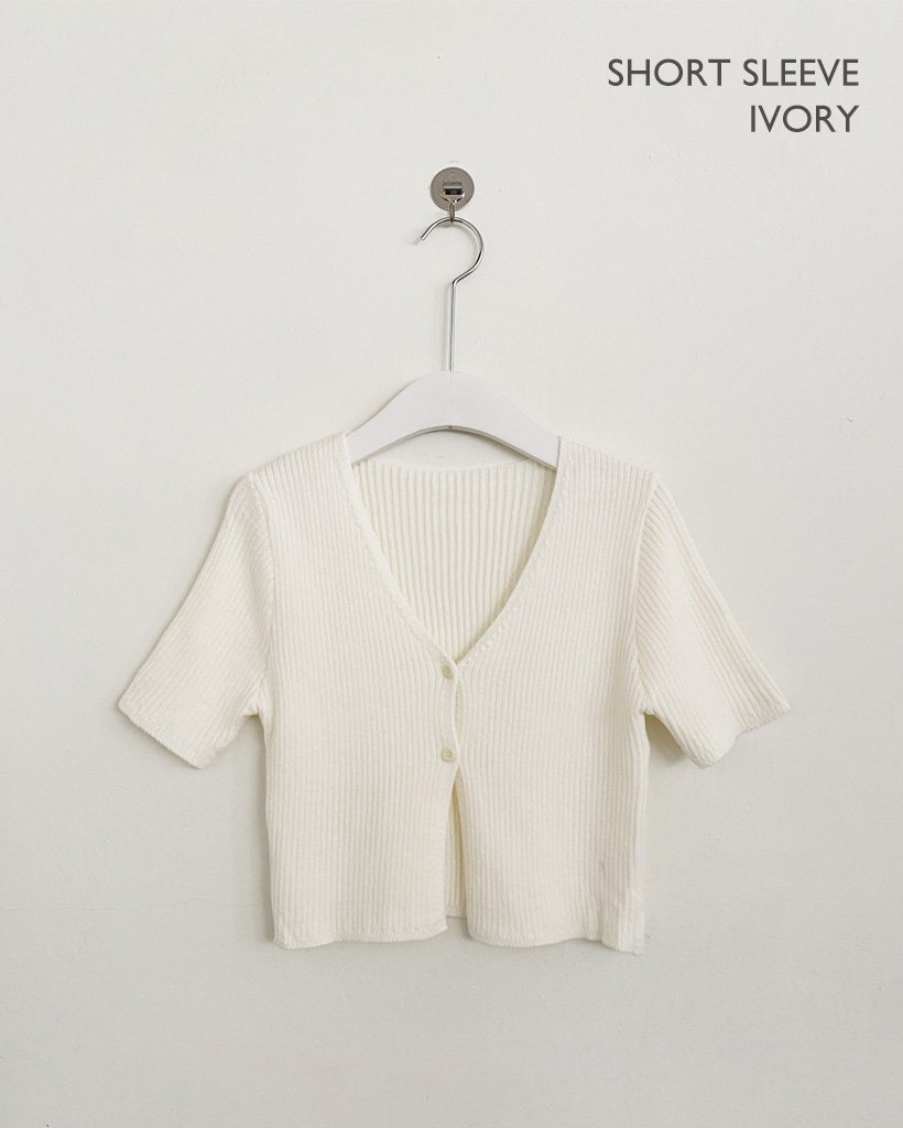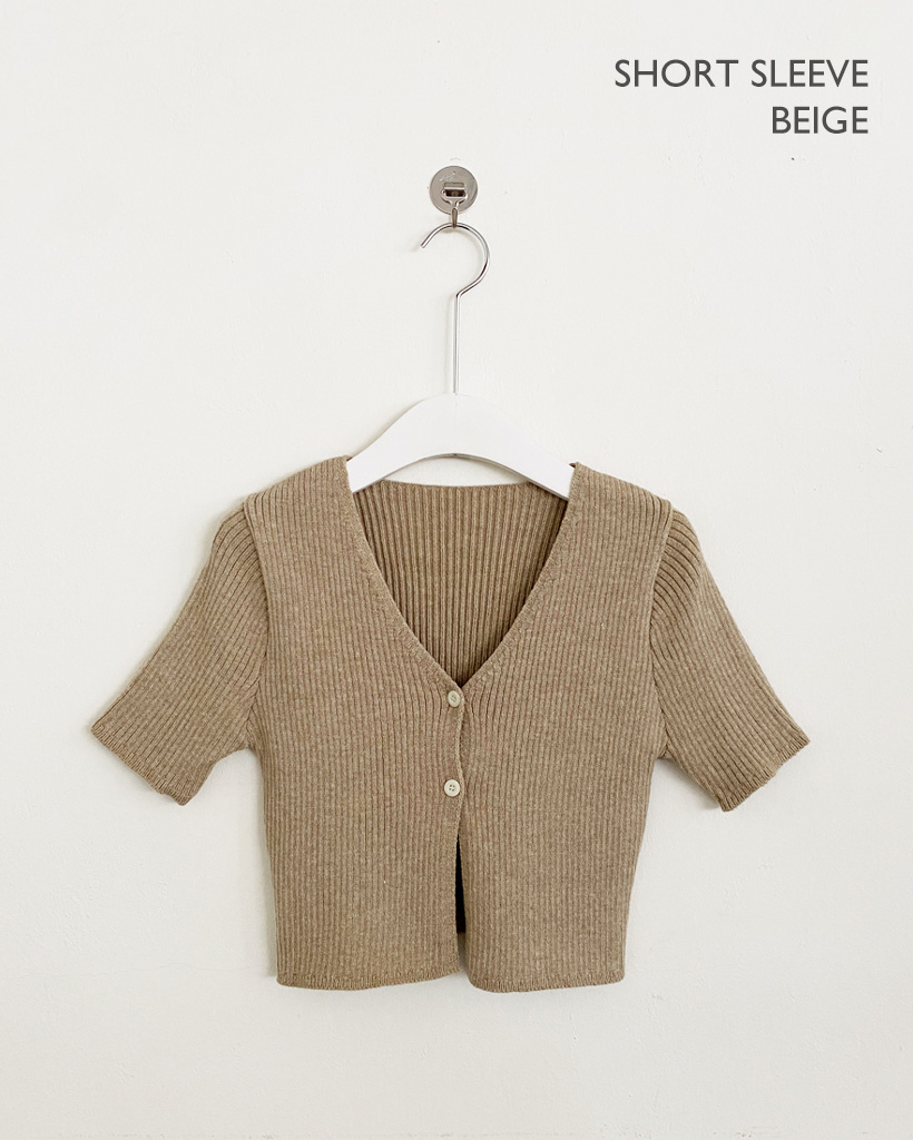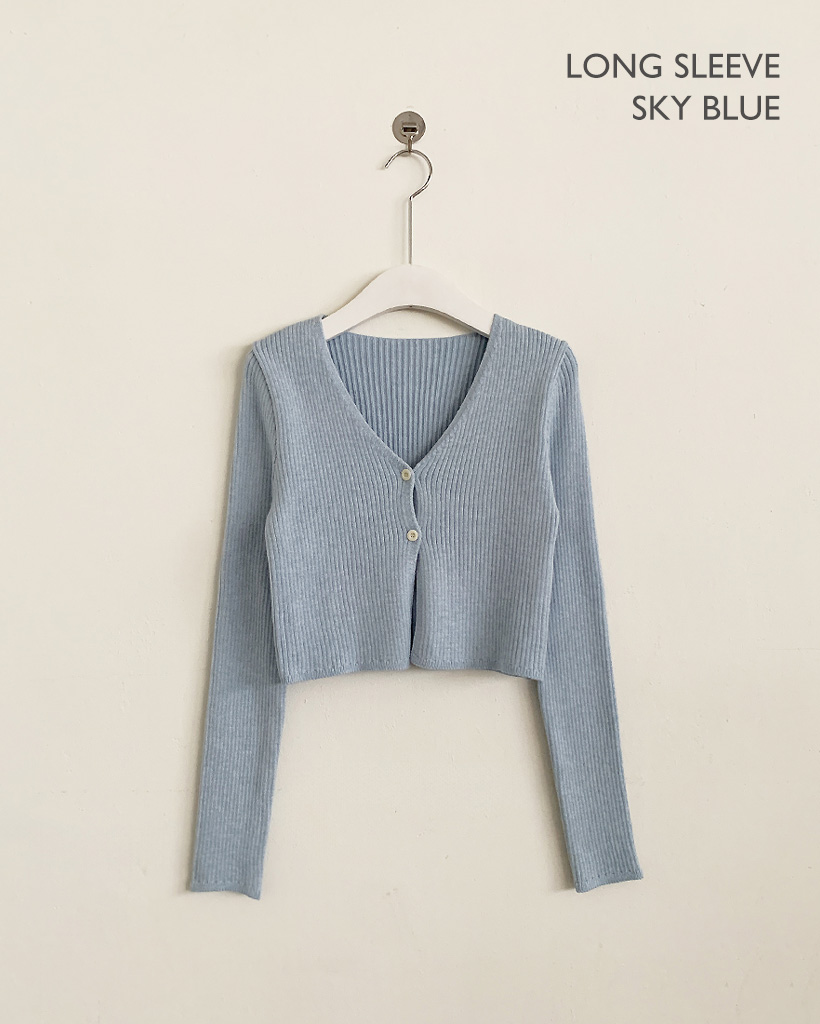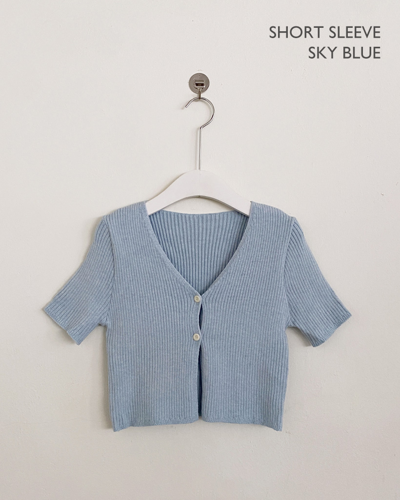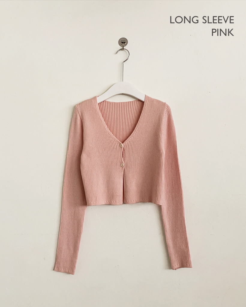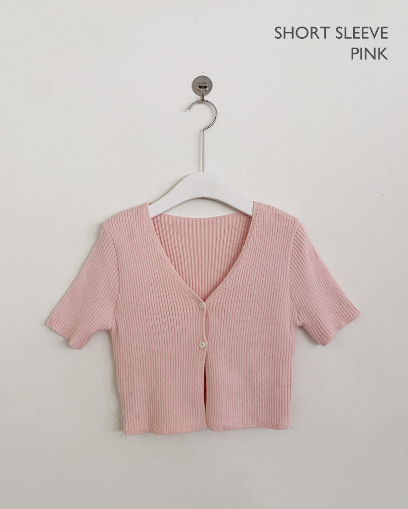 (半袖/長袖) パステルクロップドVネック スリムボタン リブカーディガン