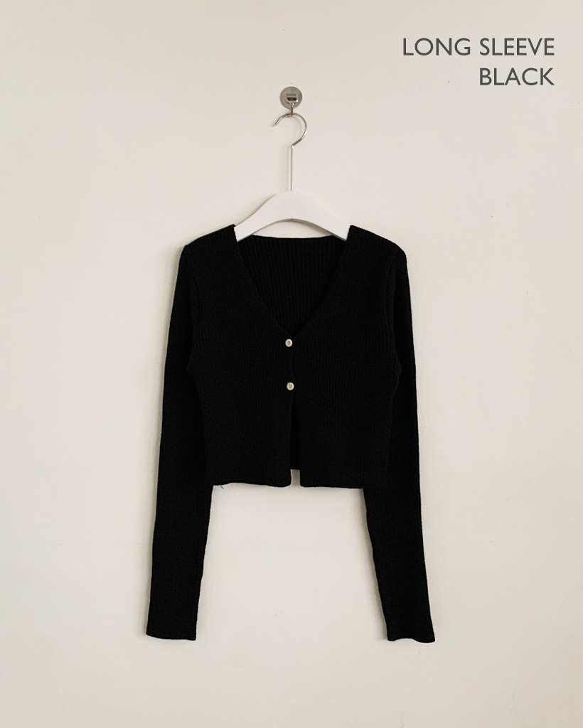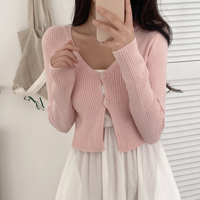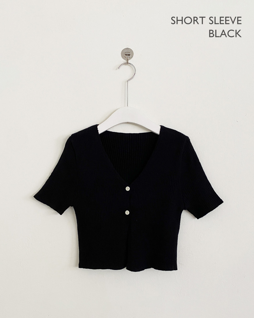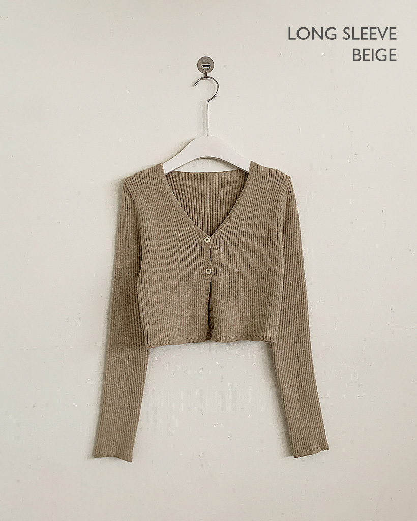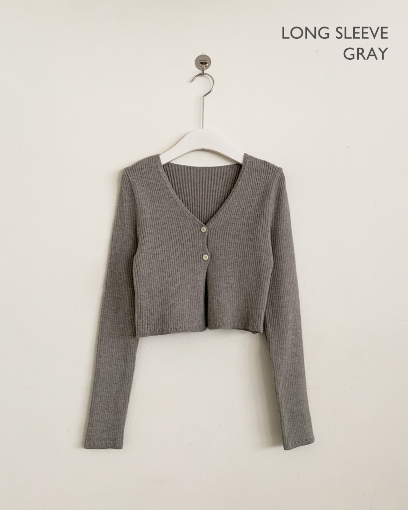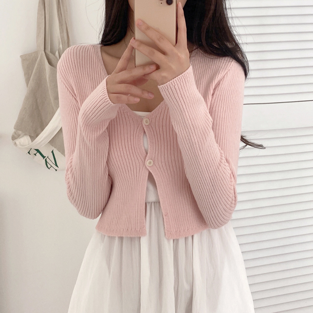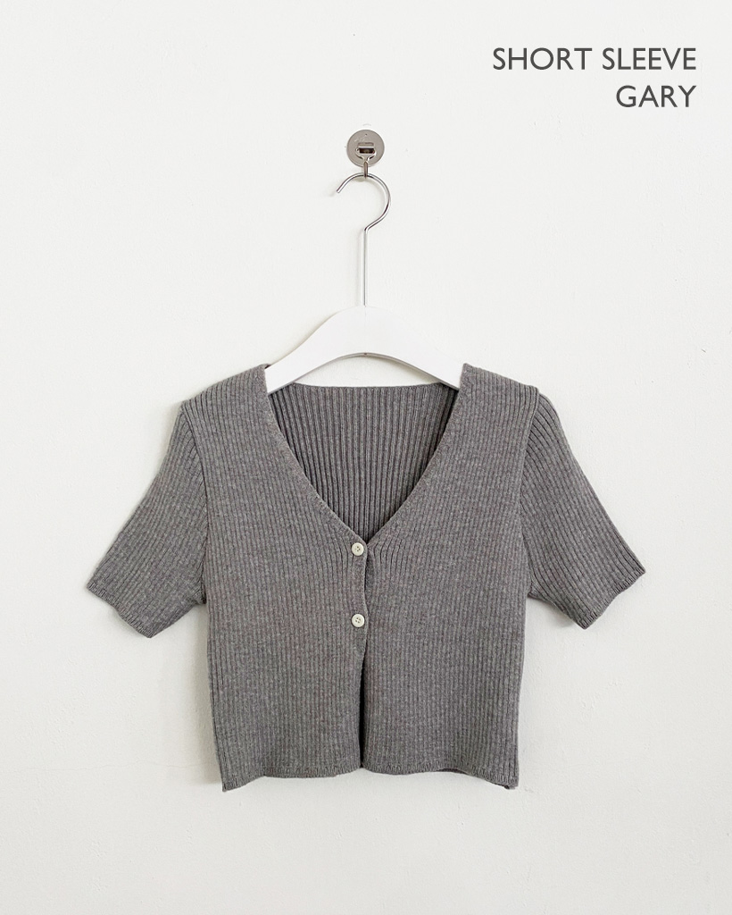 (半袖/長袖) パステルクロップドVネック スリムボタン リブカーディガン