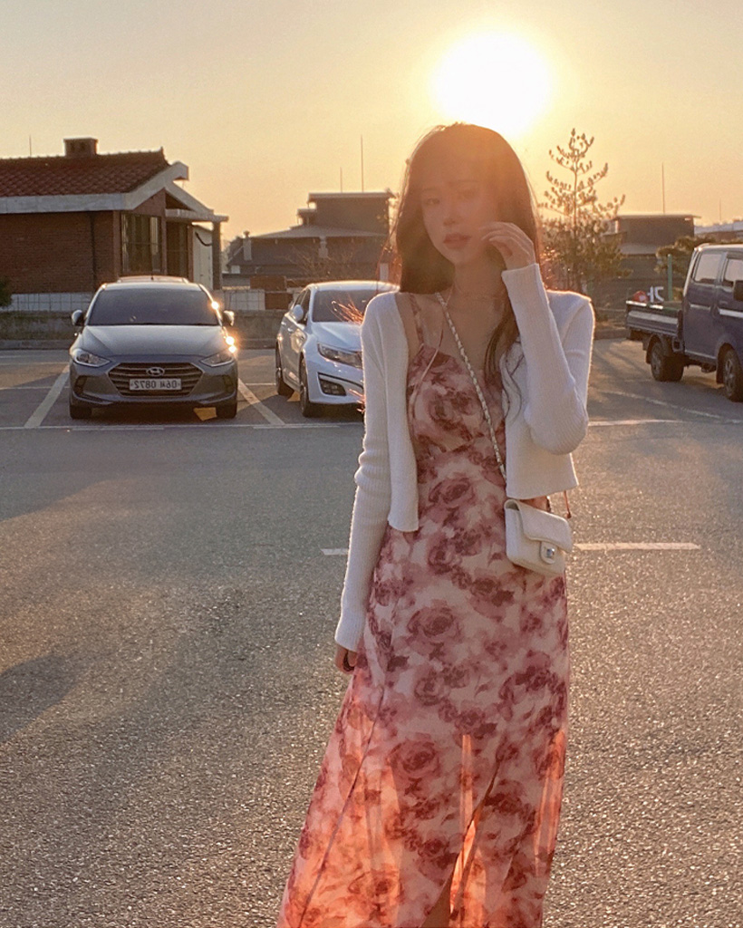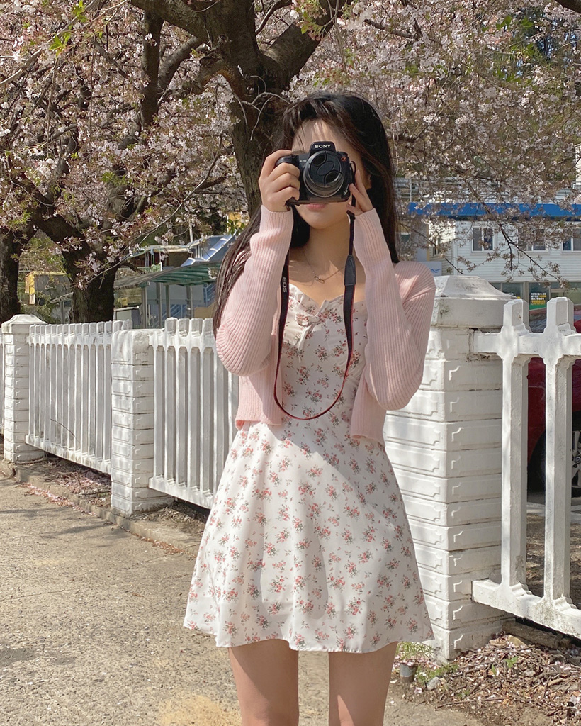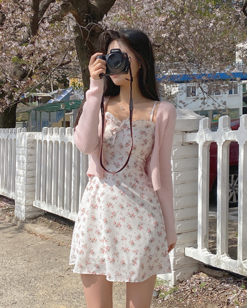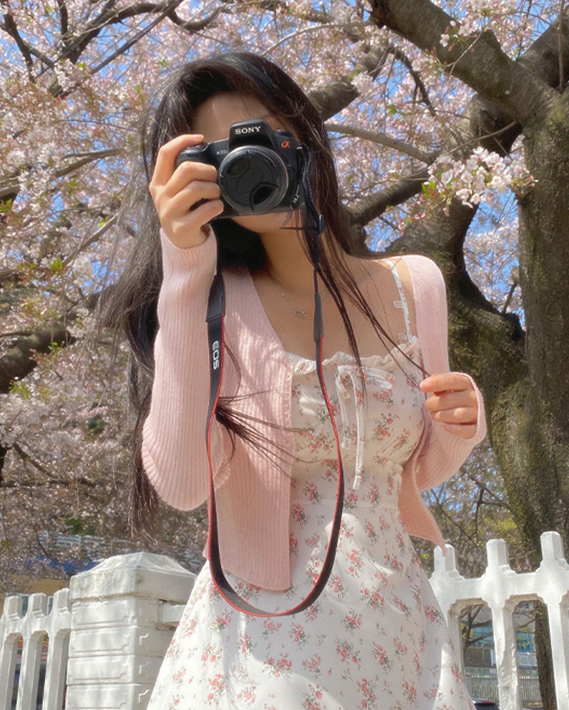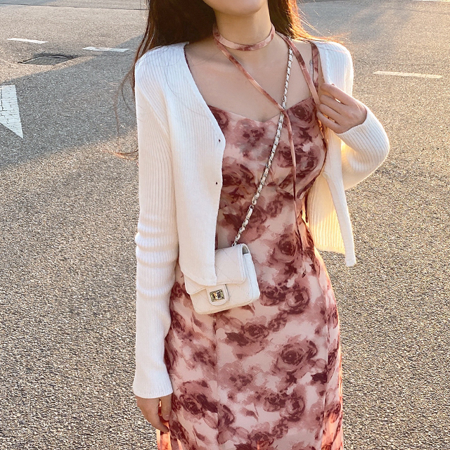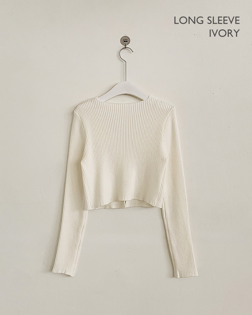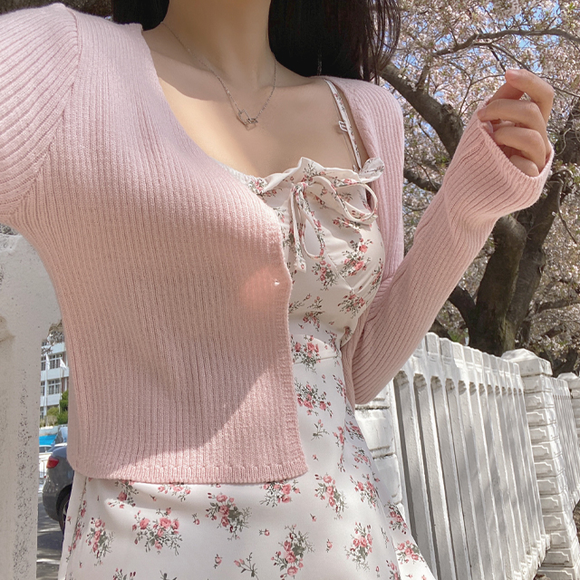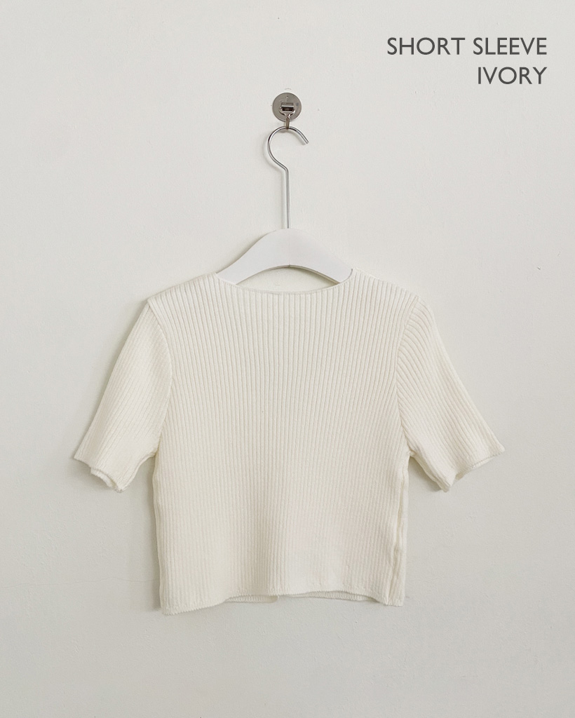 (半袖/長袖) パステルクロップドVネック スリムボタン リブカーディガン
