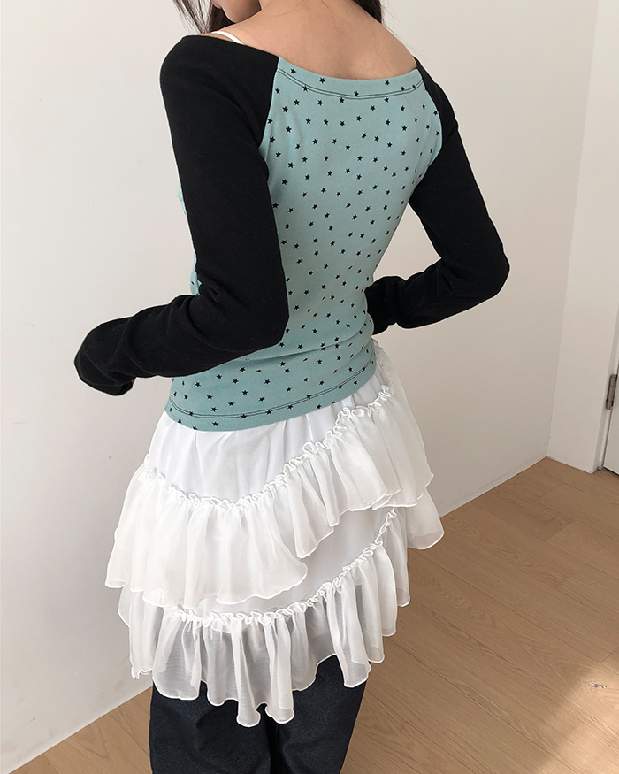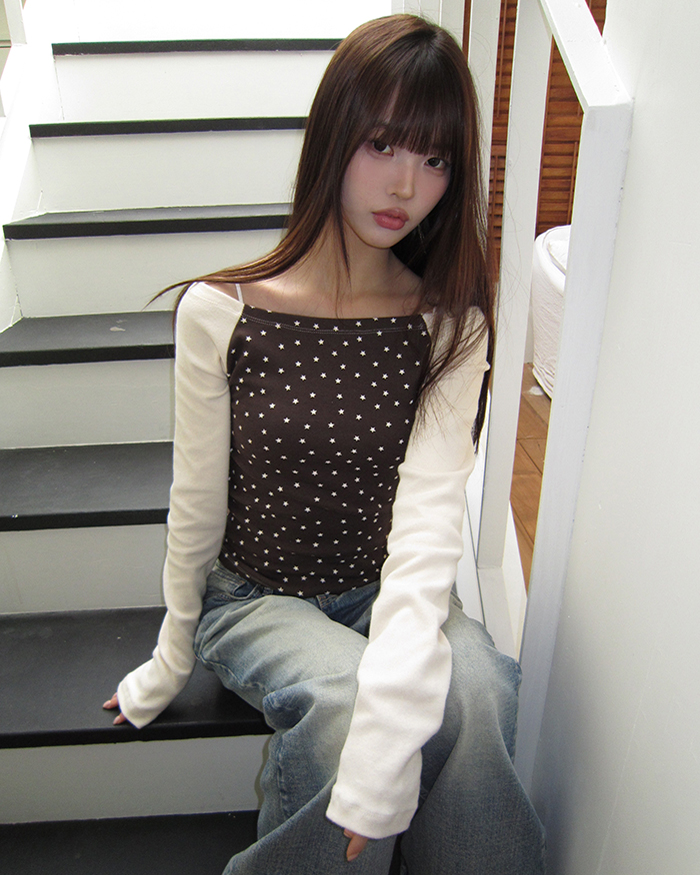 オフショル裏起毛スタープリントTシャツ