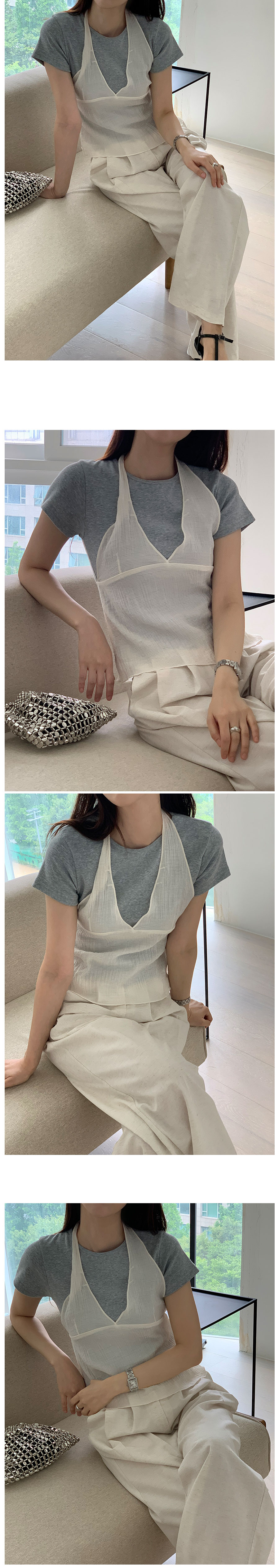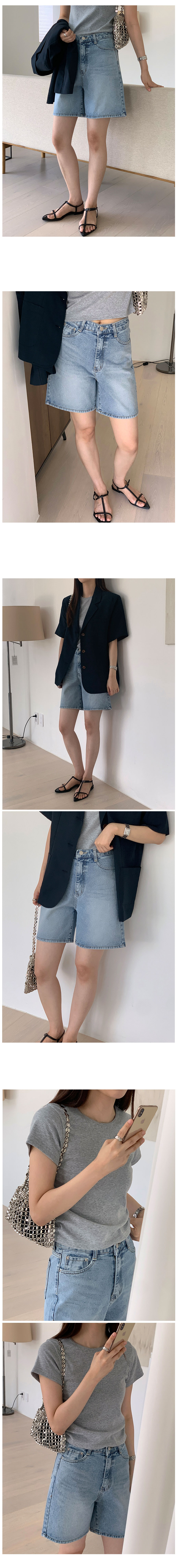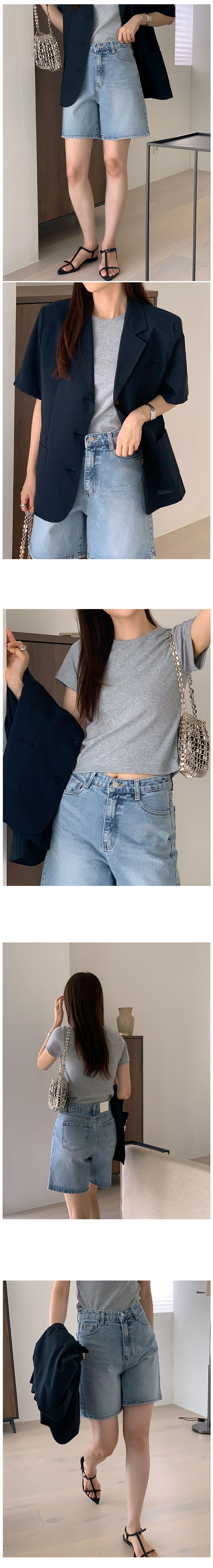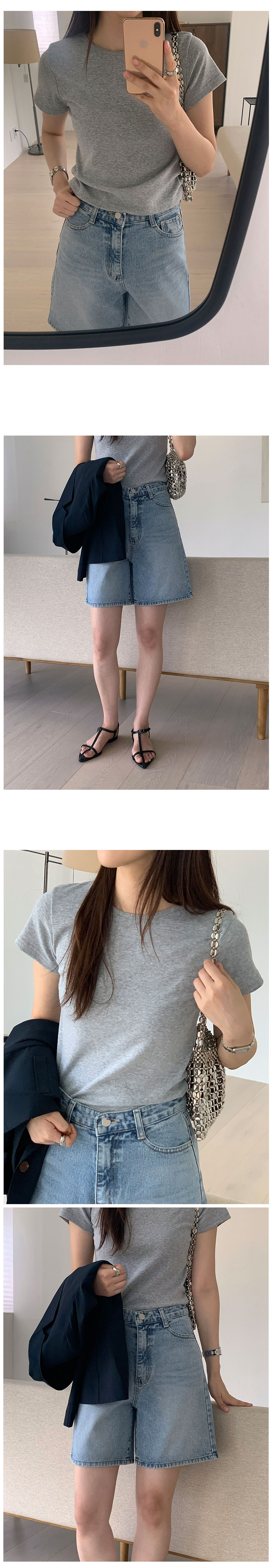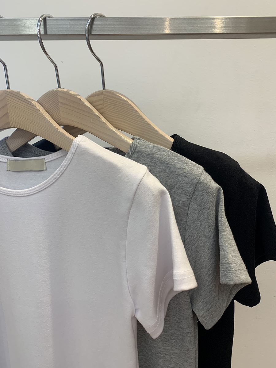 ラウンドネックベーシック無地セミクロップド半袖スパンTシャツ3color