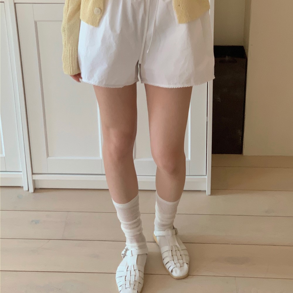 [シルク裏地 / 透け感なし]レースゴムコットンショートパンツ(2color)