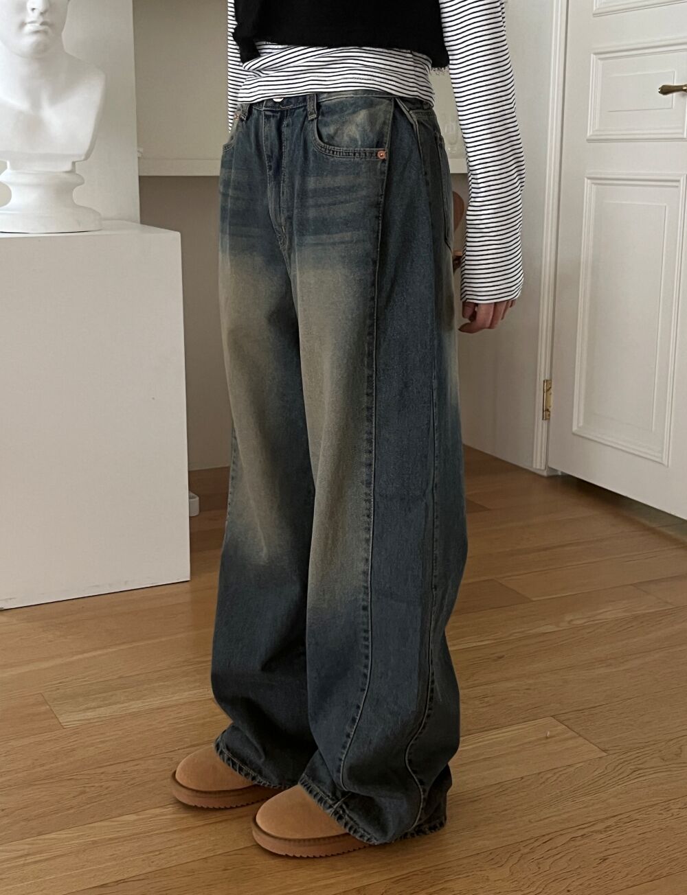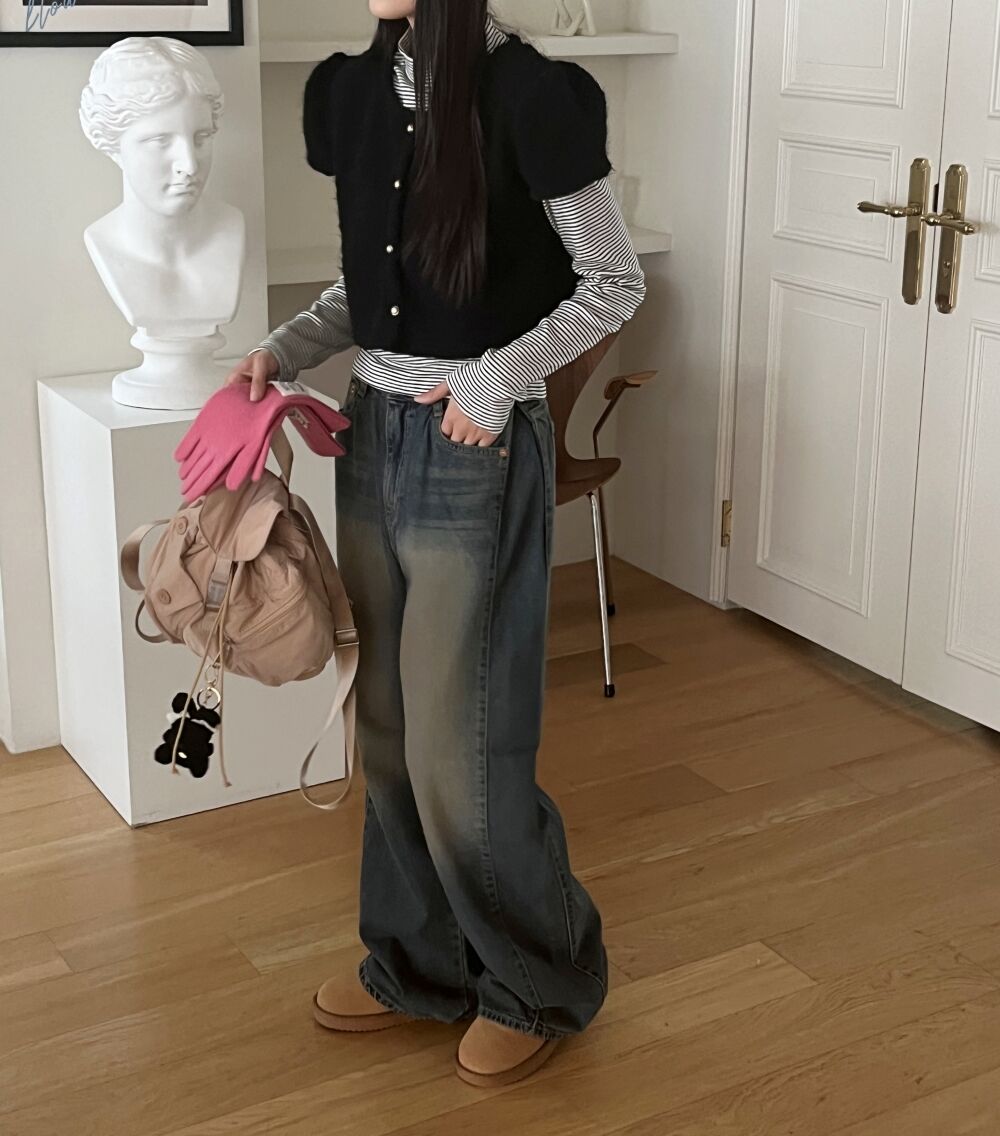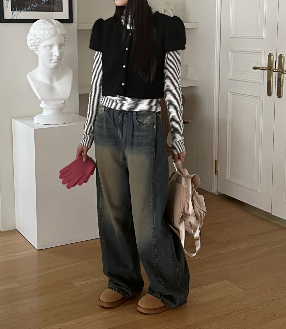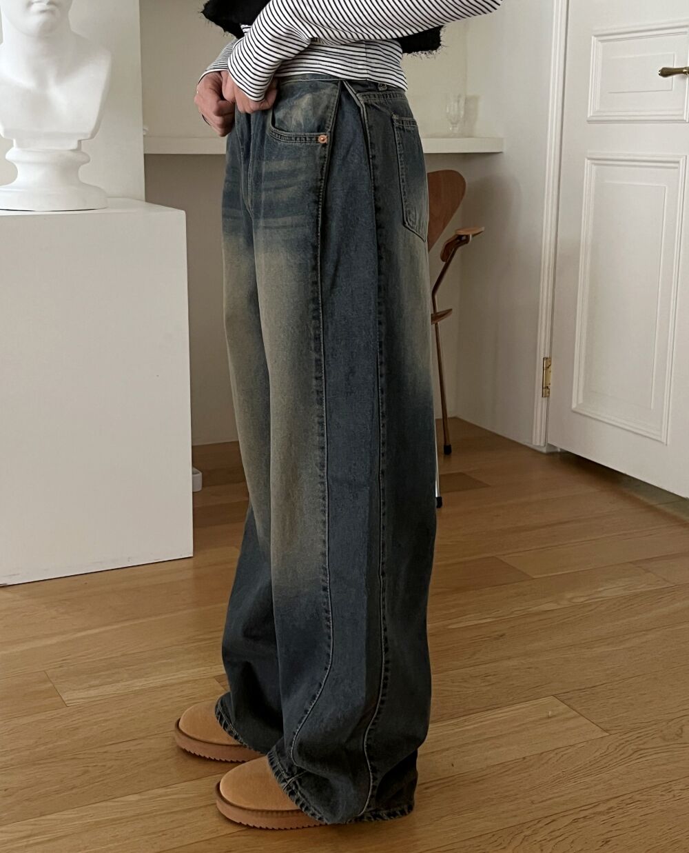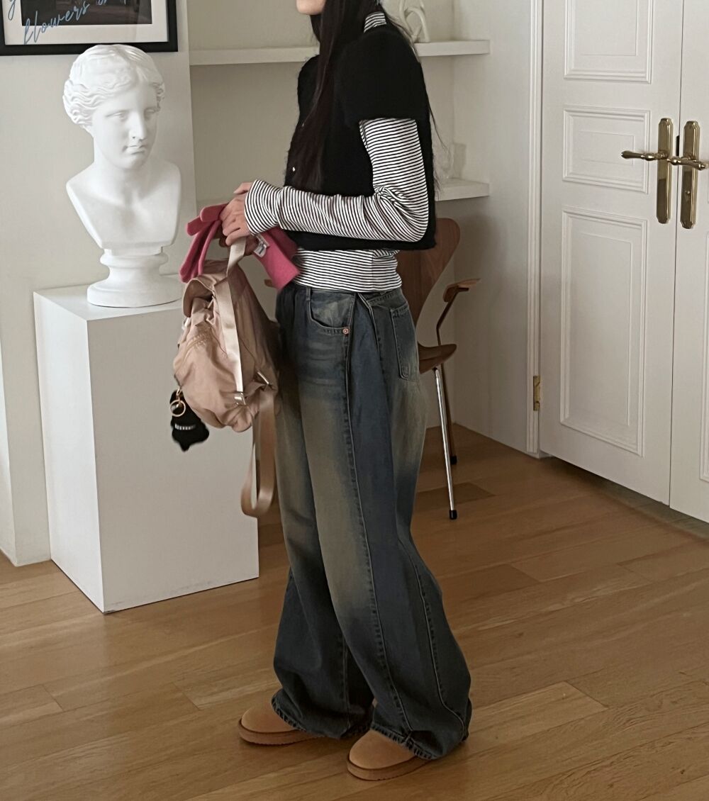 ウォッシュサイドタック入りワイドデニムパンツ1color