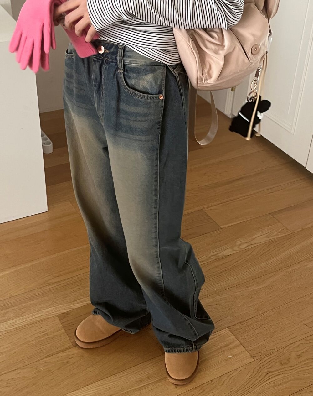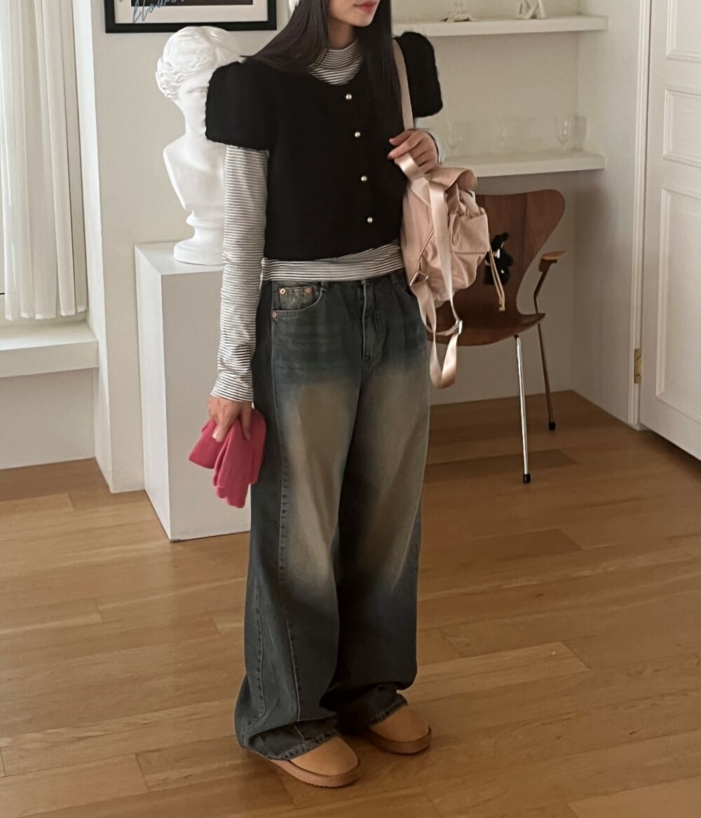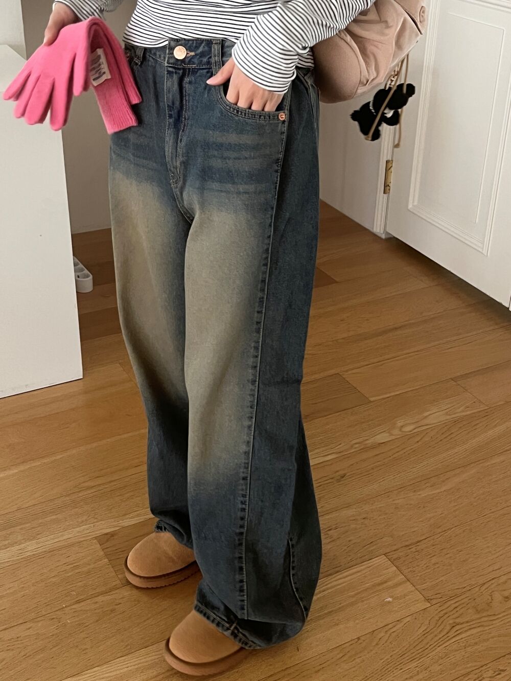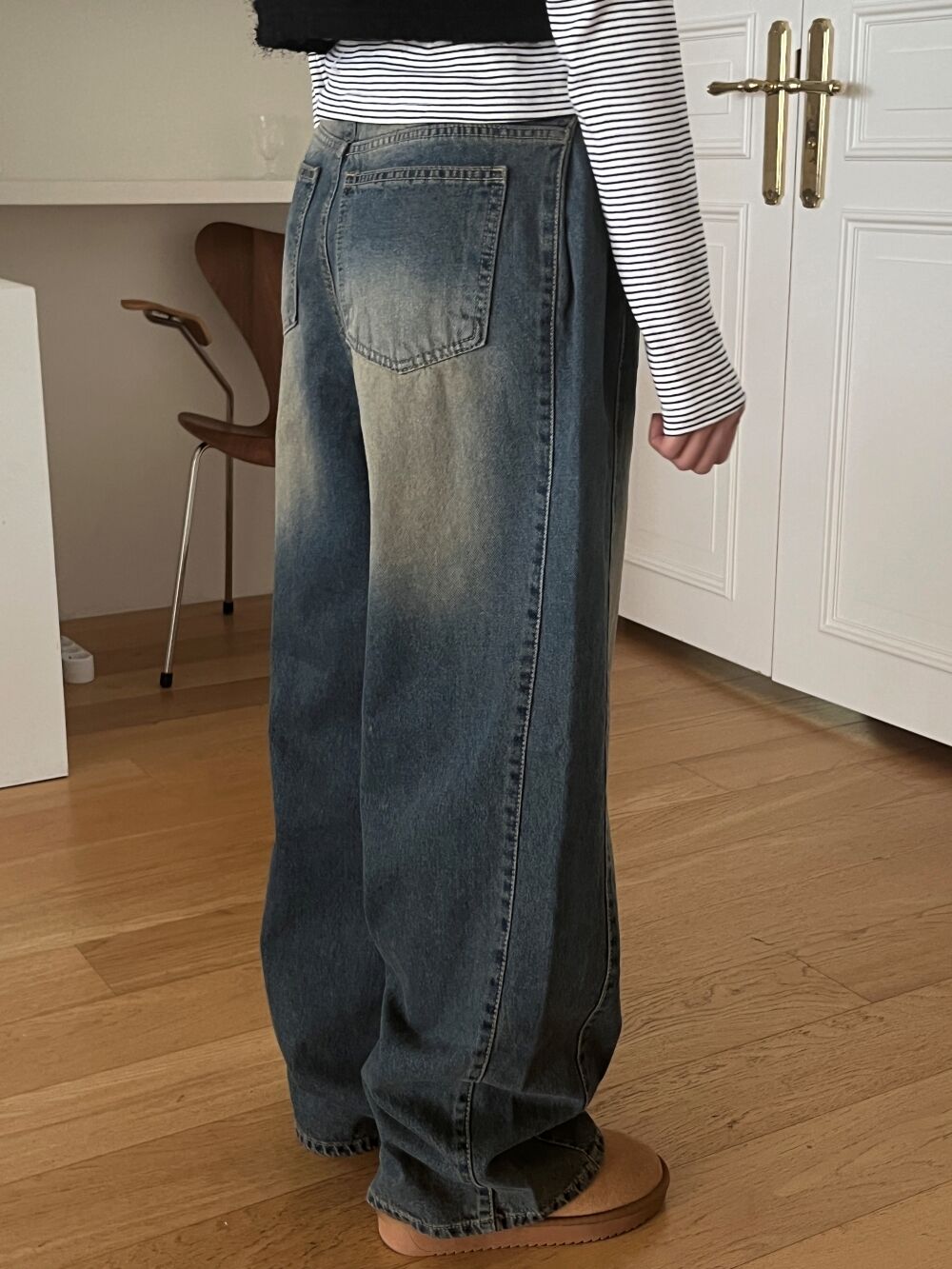ウォッシュサイドタック入りワイドデニムパンツ1color
