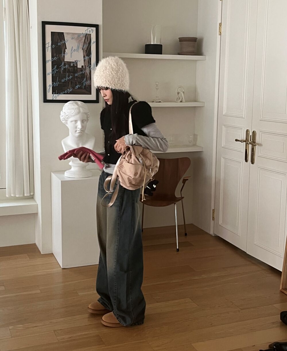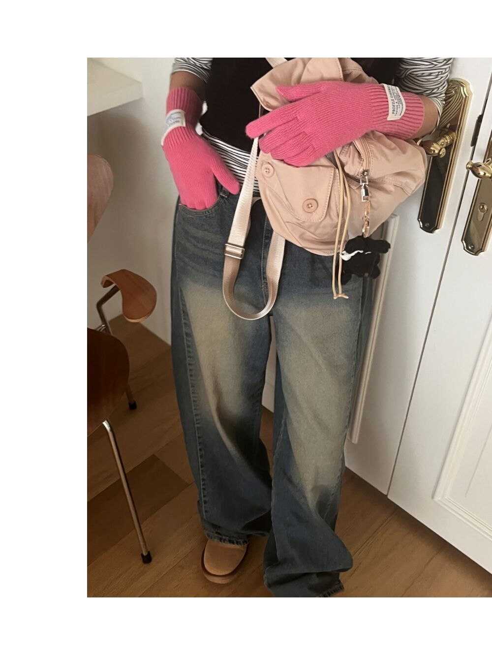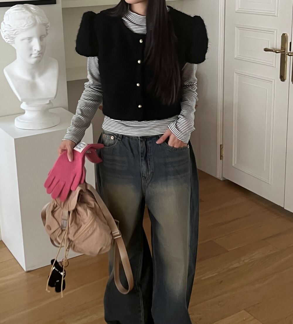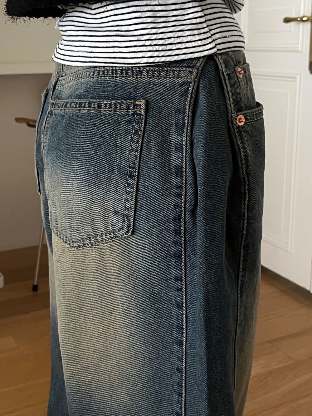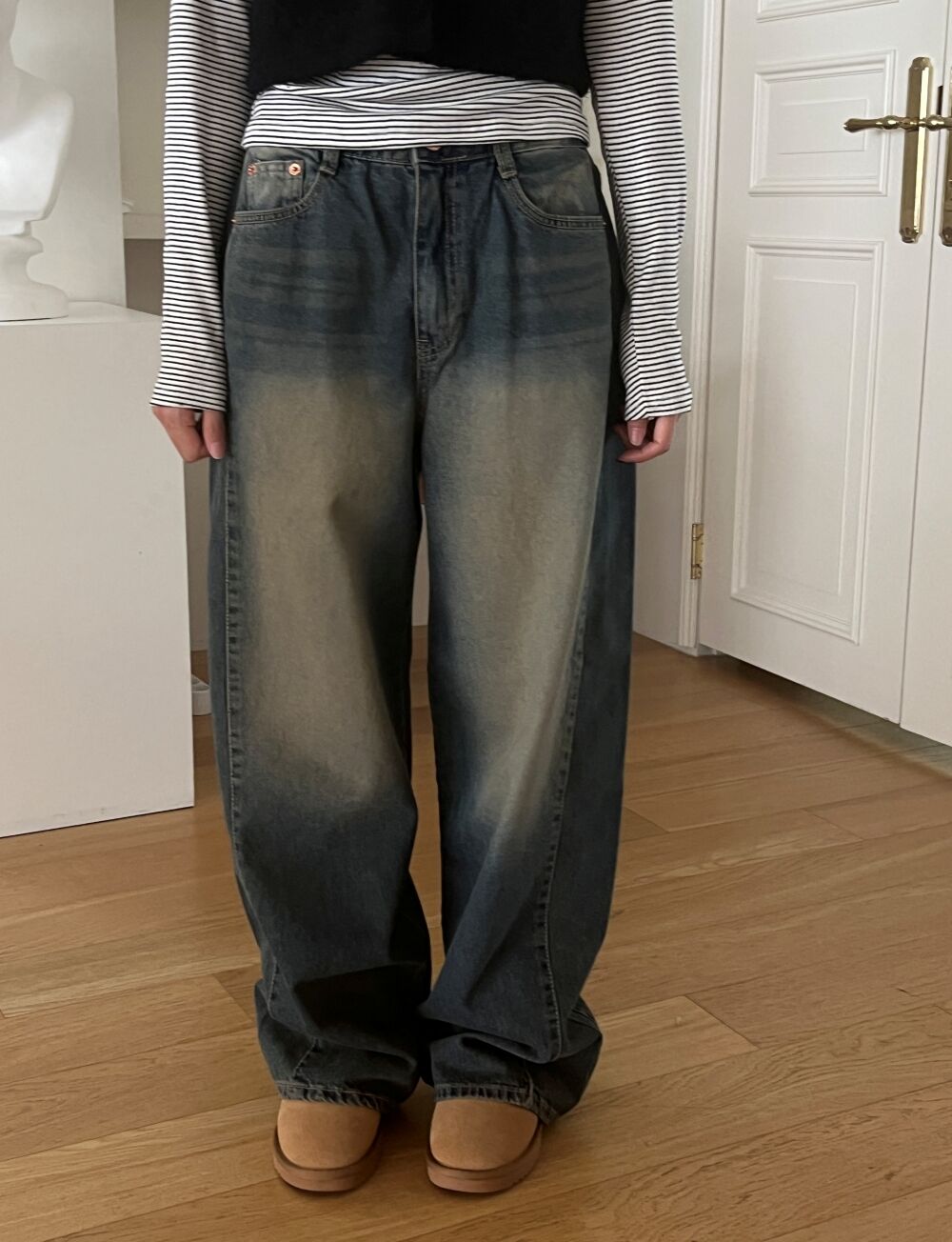 ウォッシュサイドタック入りワイドデニムパンツ1color