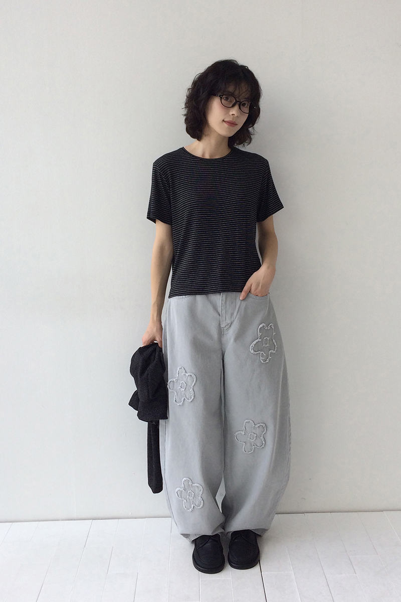 S | ウエスト 34.5 ヒップ 52 わたり 31 股上 36 裾幅 24 総丈 103
