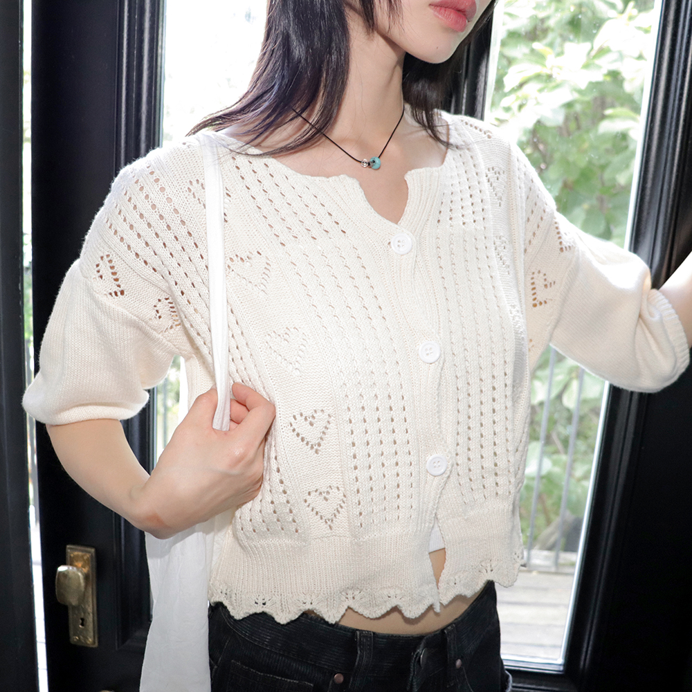 ハートパンチング5分丈ニットカーディガン