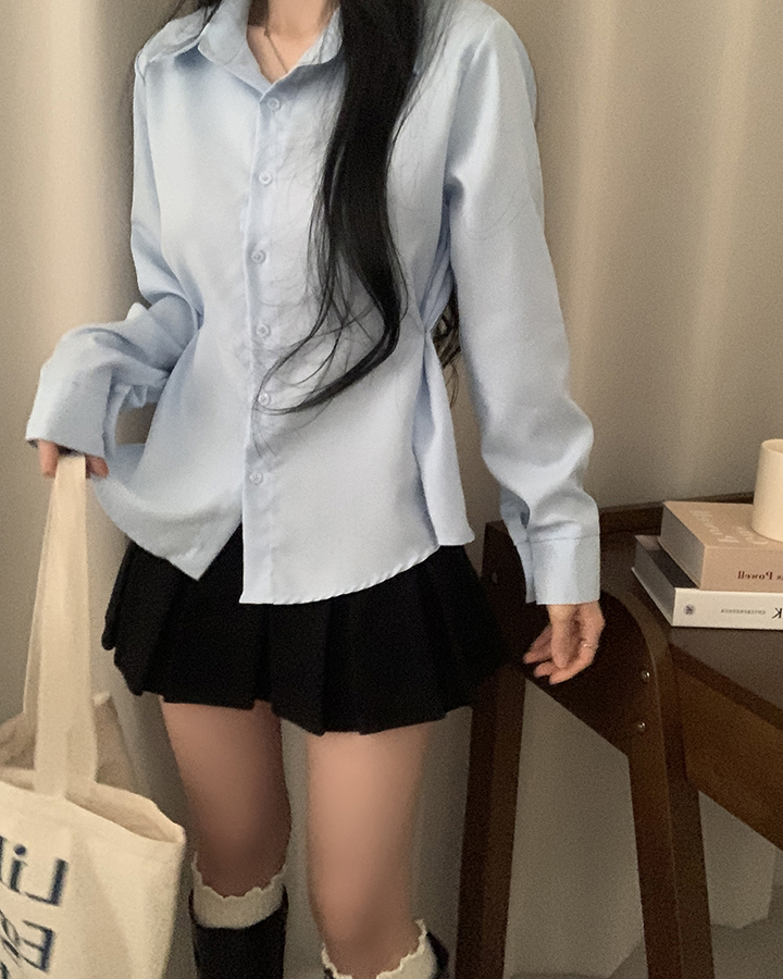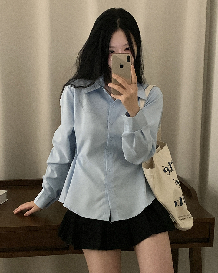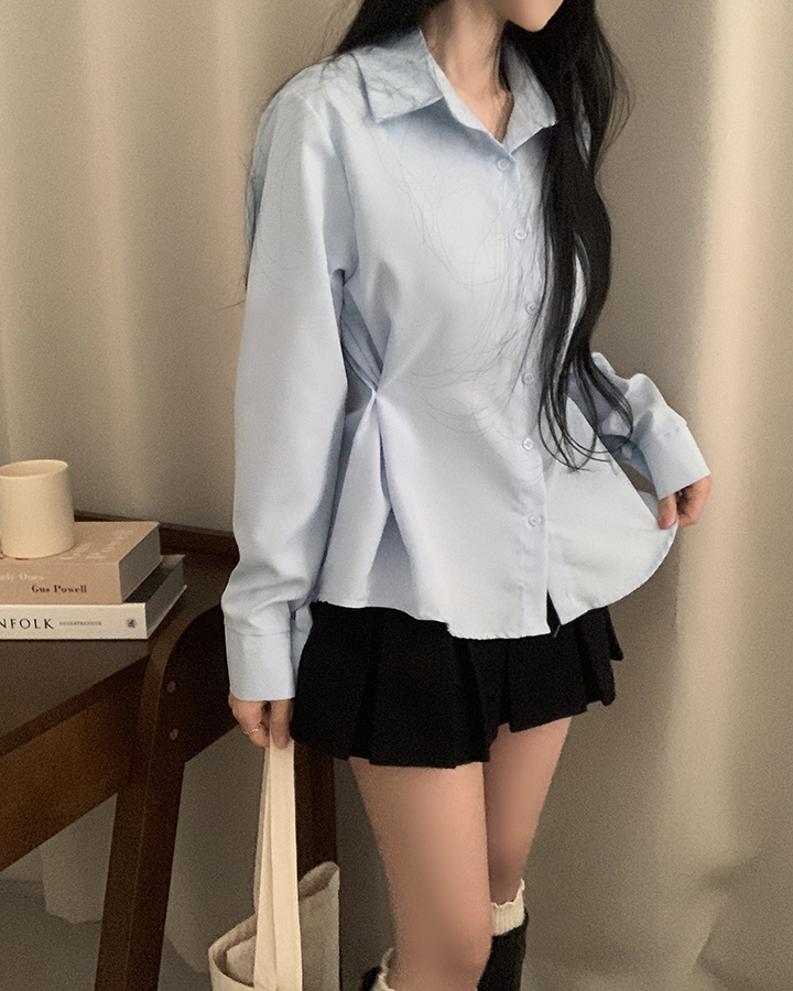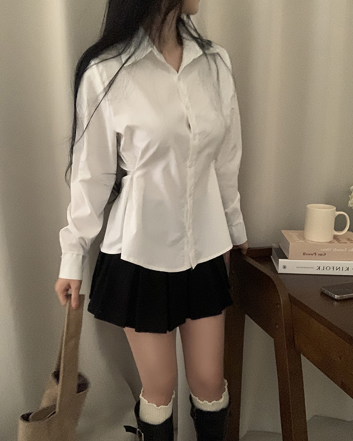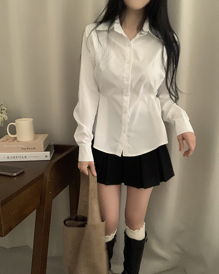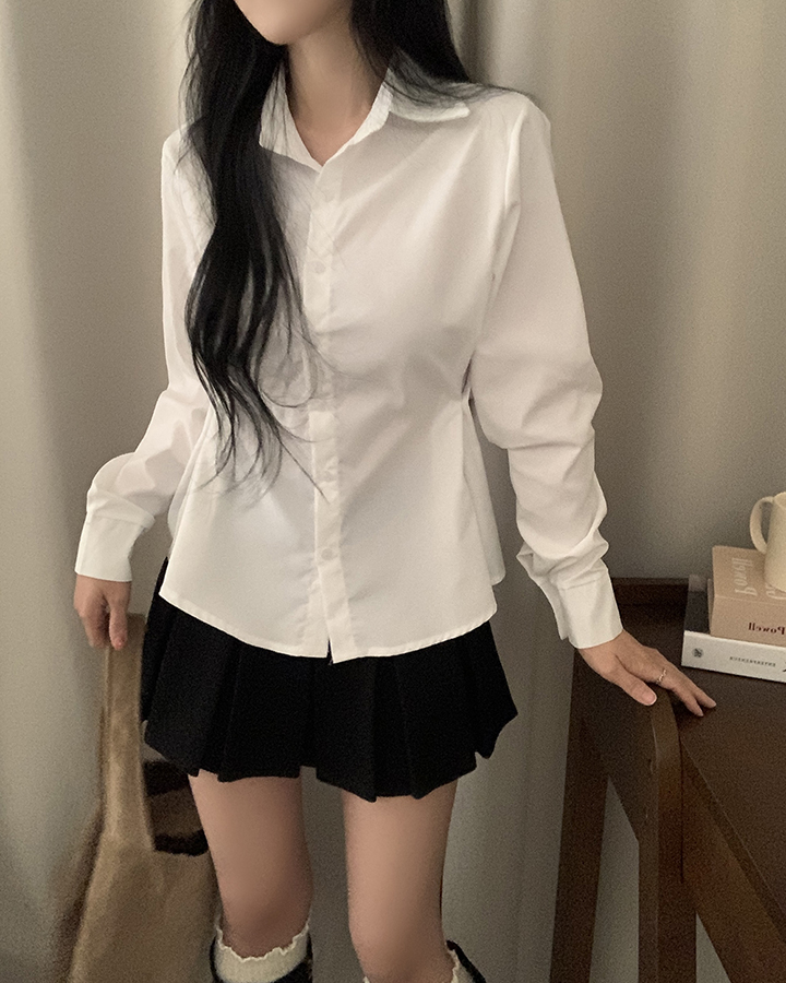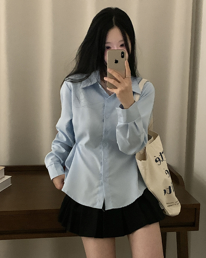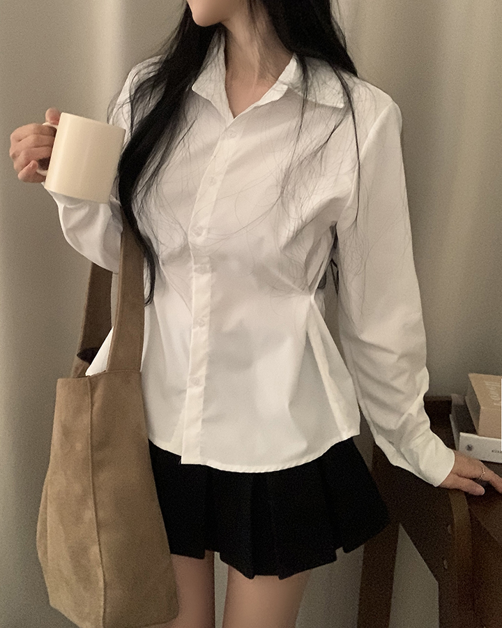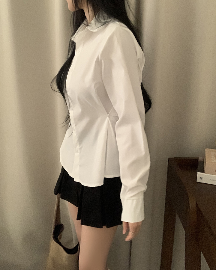 (3color)バックリボンスリムフィット襟付きシャツ