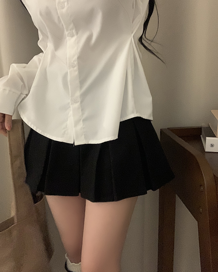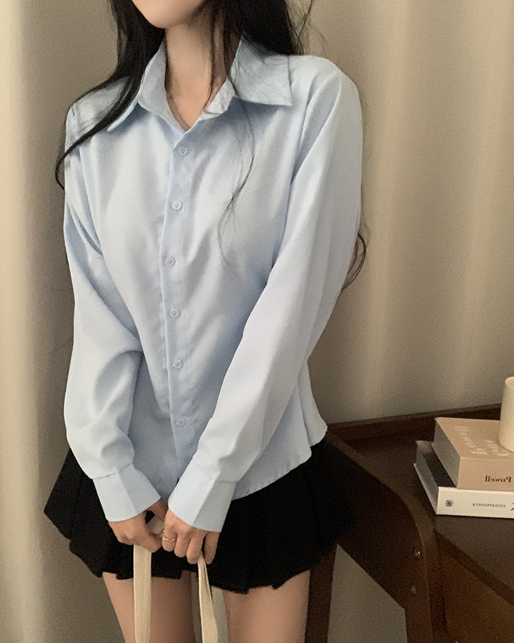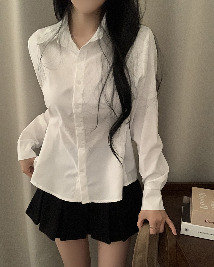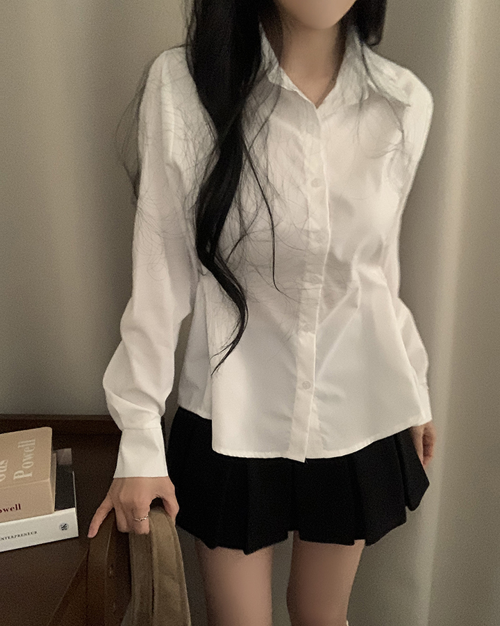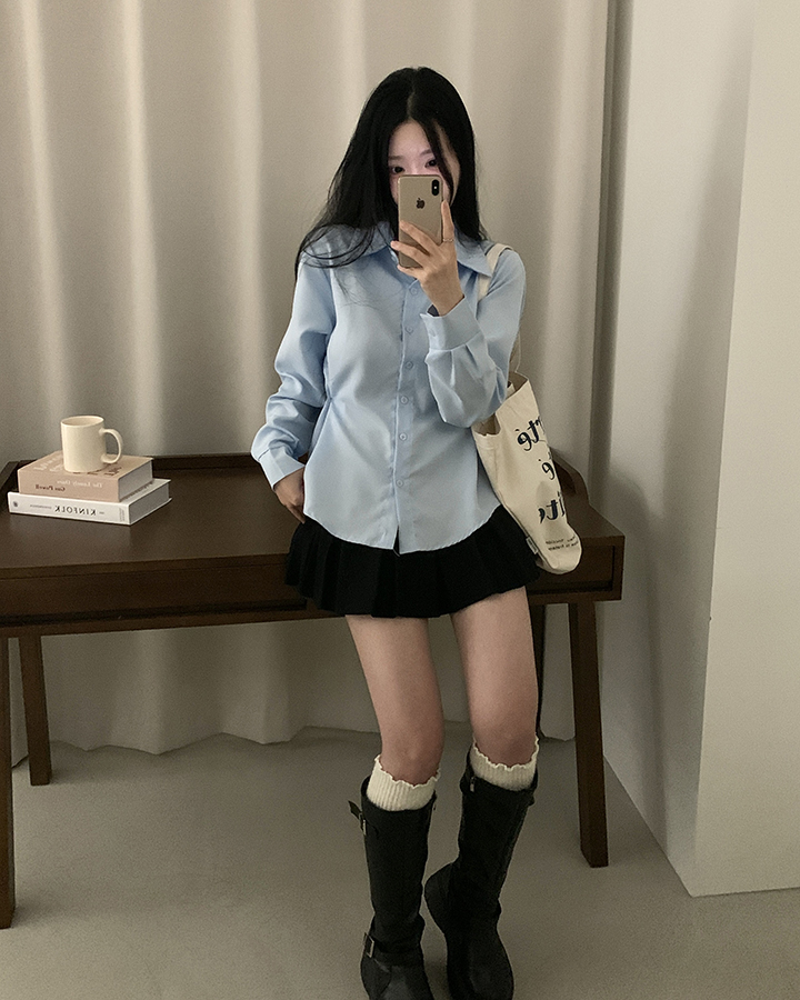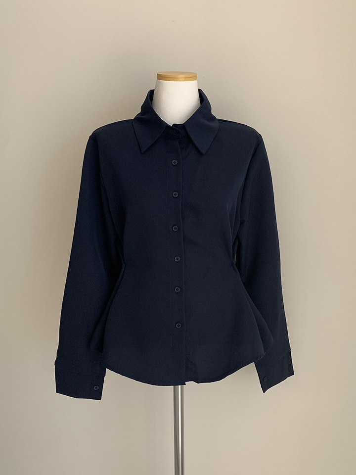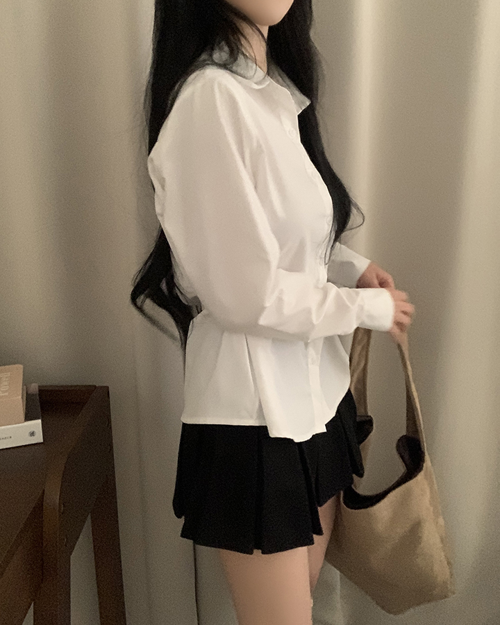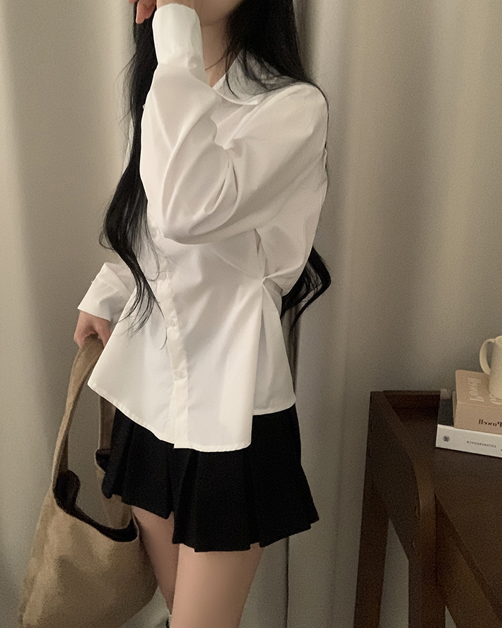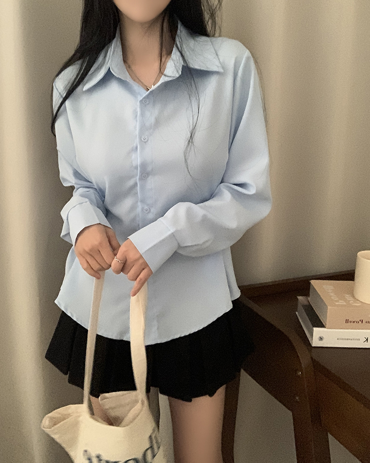(3color)バックリボンスリムフィット襟付きシャツ