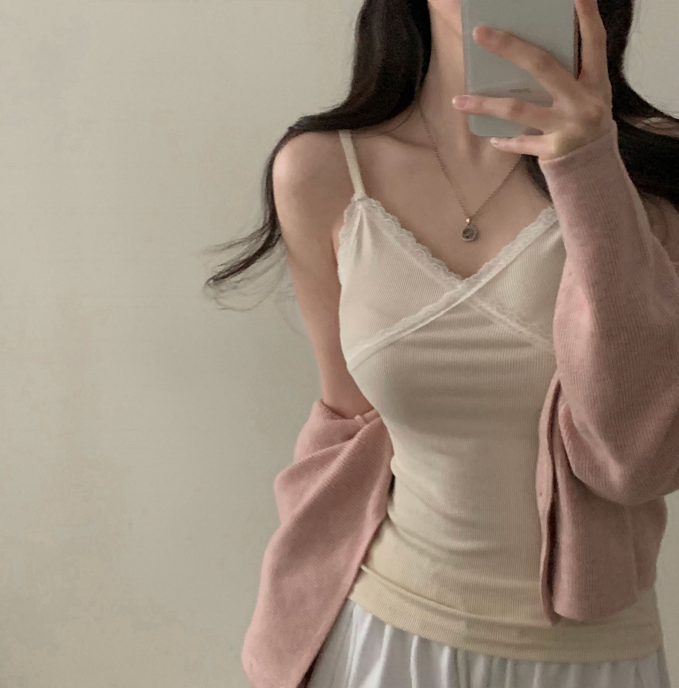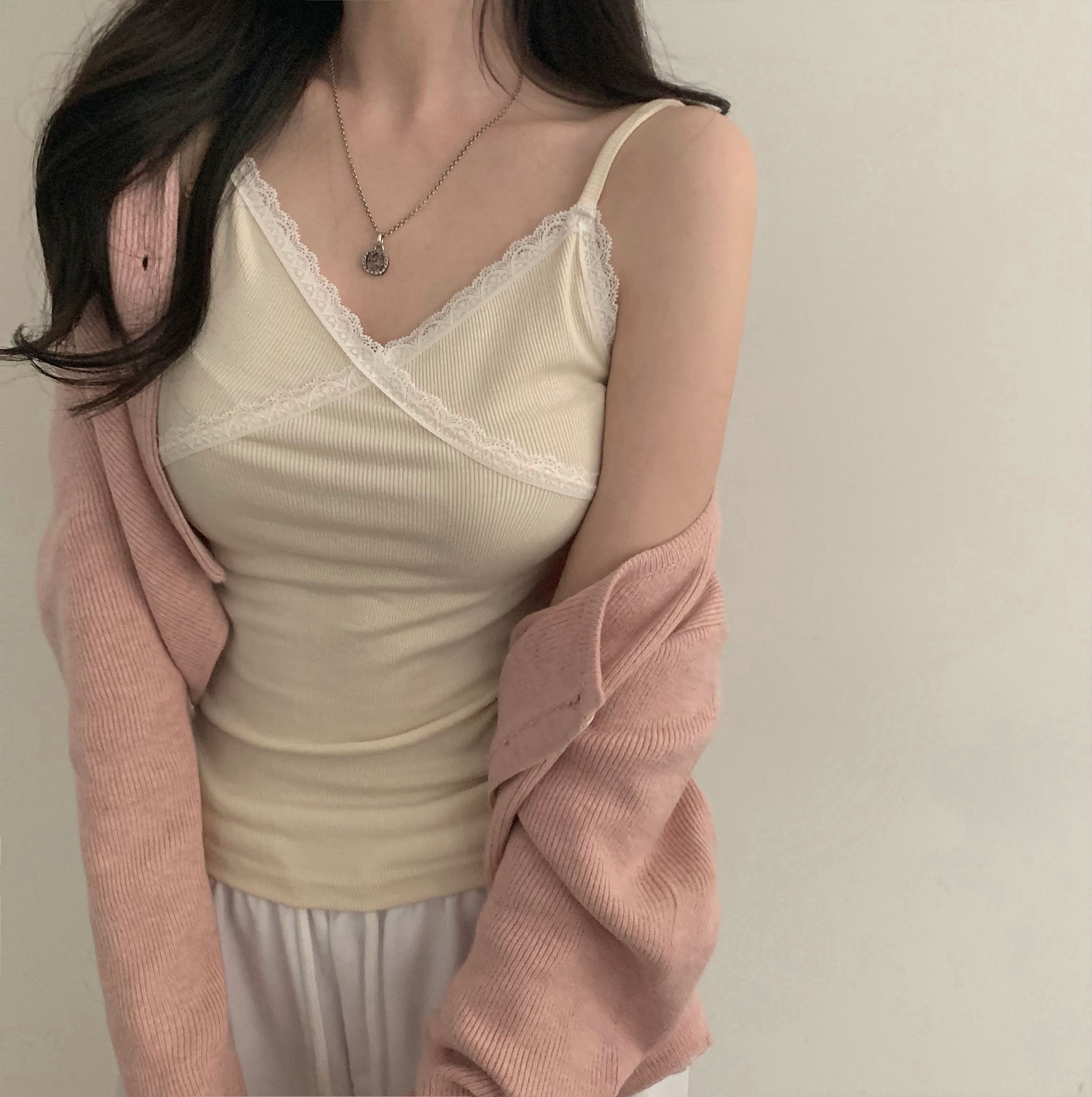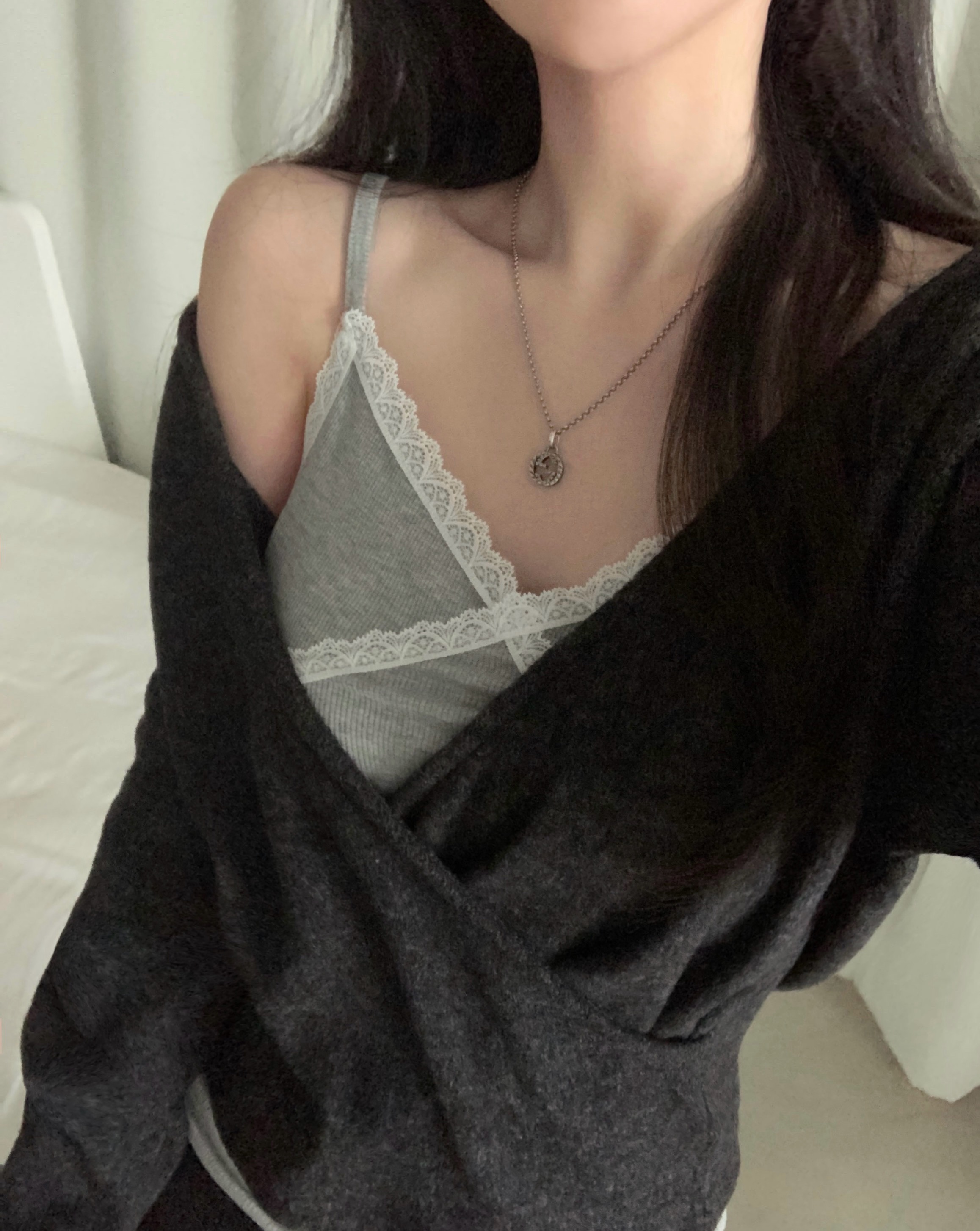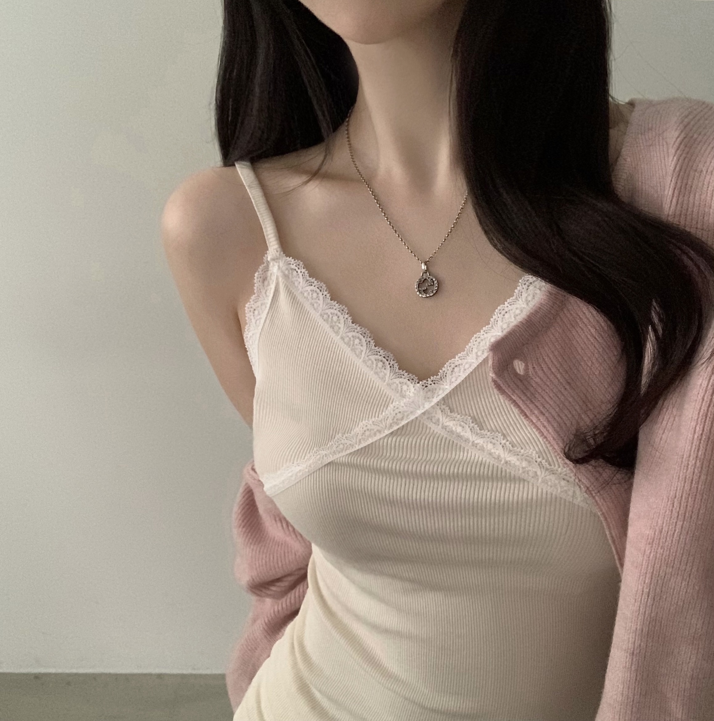 가디건이나 셔츠 안에 레이어드하거나 포인트 이너로 입어주기 좋아요!