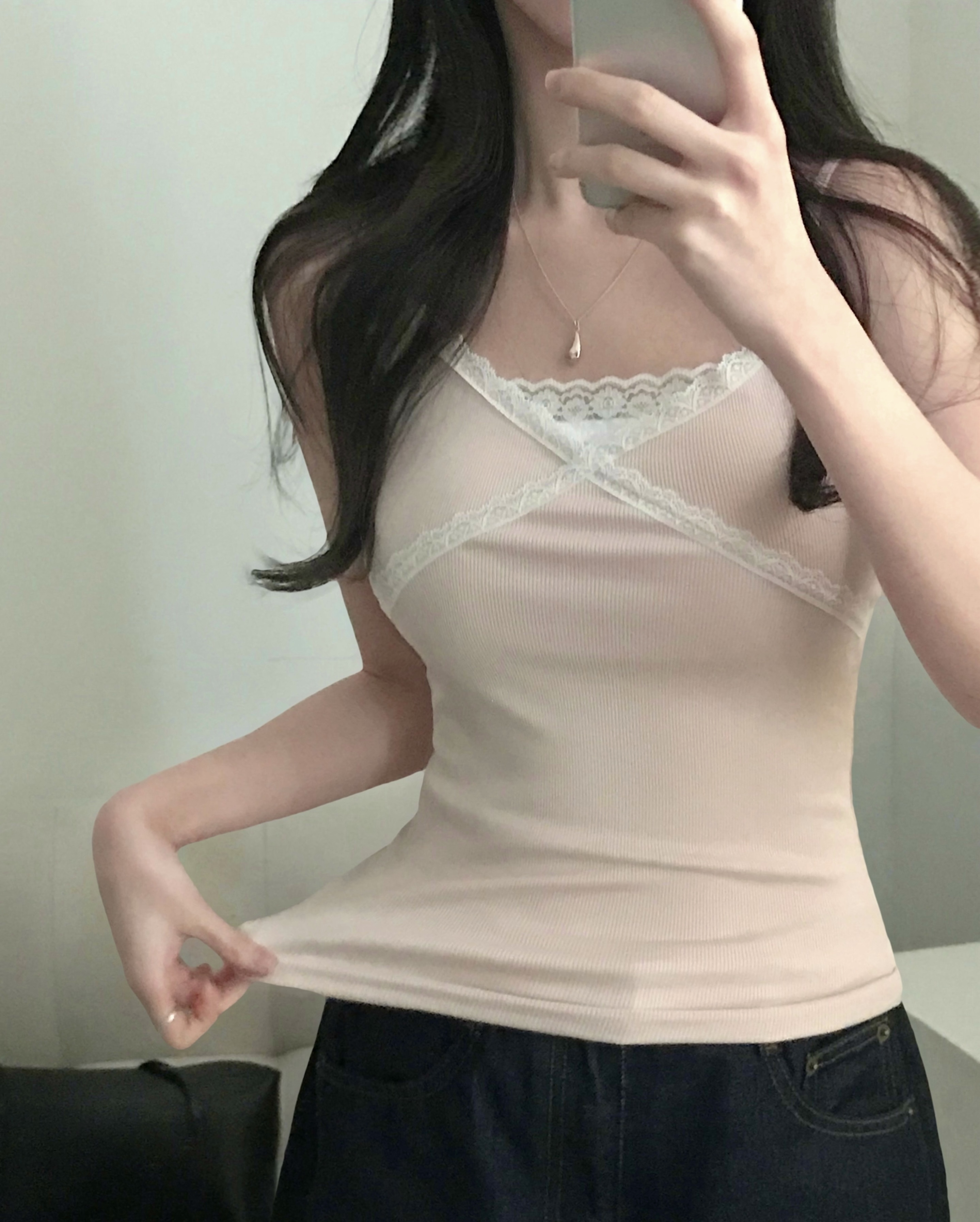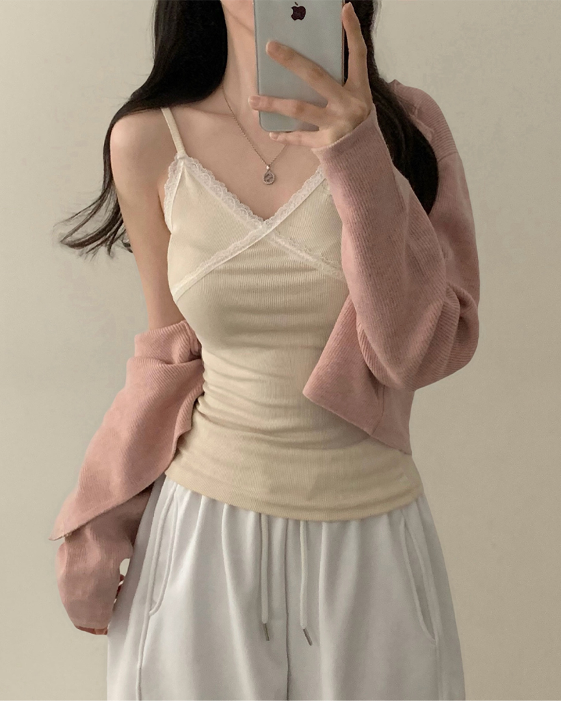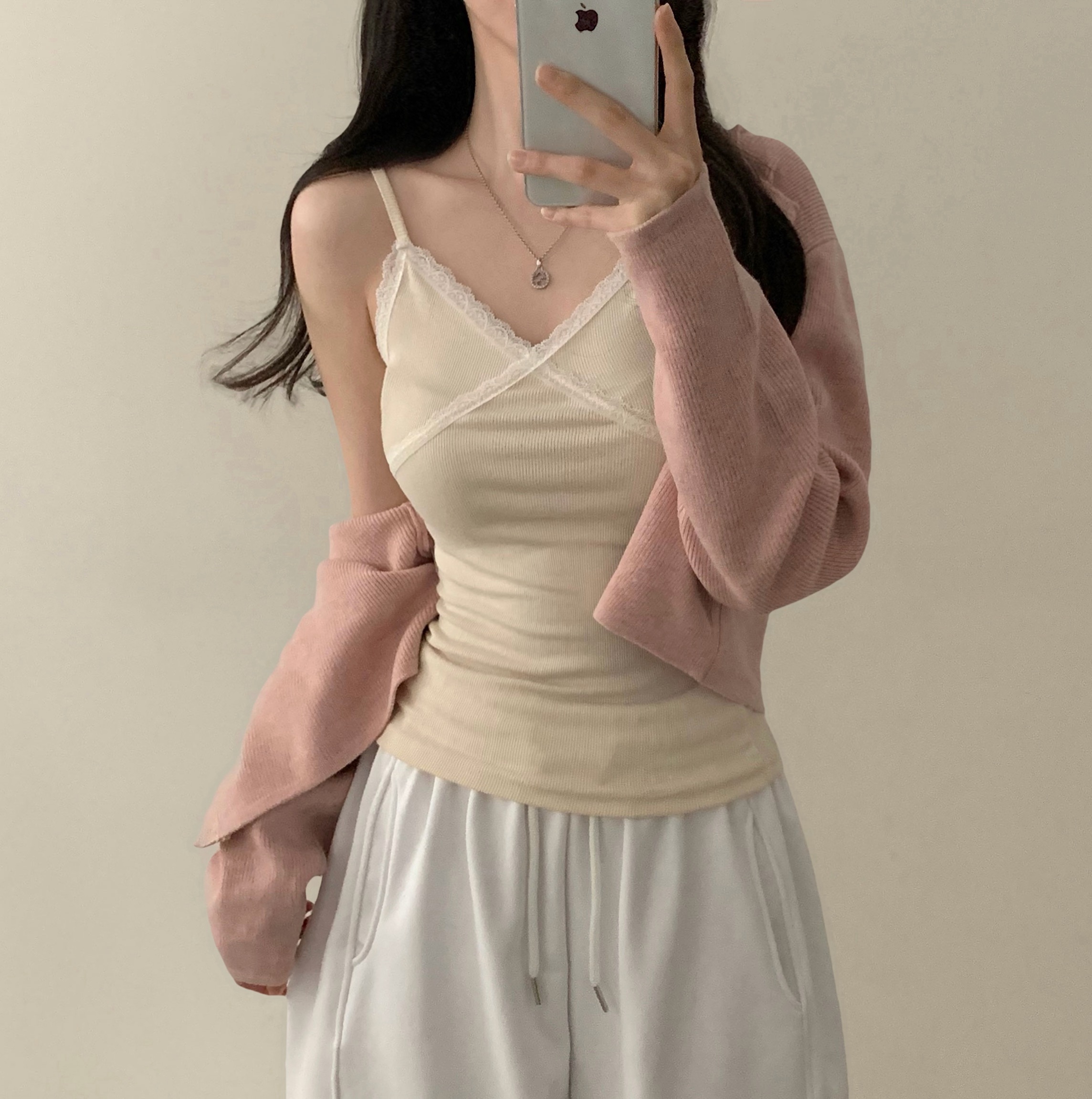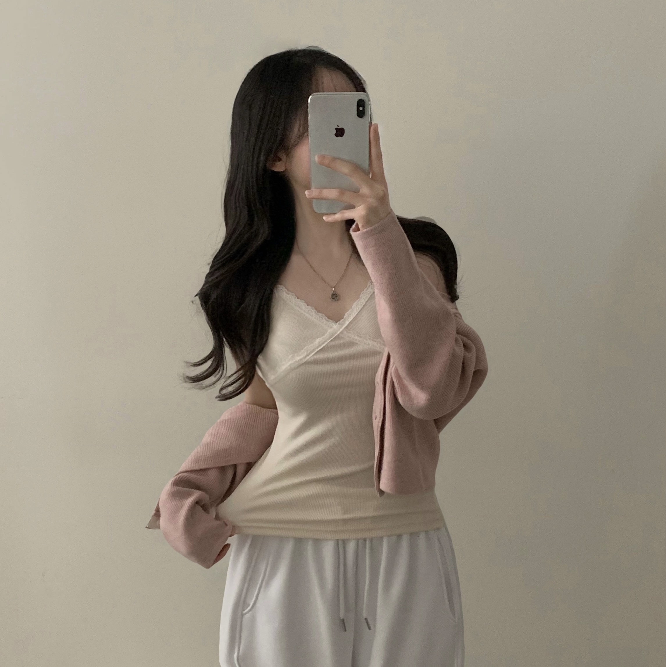 가디건이나 셔츠 안에 레이어드하거나 포인트 이너로 입어주기 좋아요!