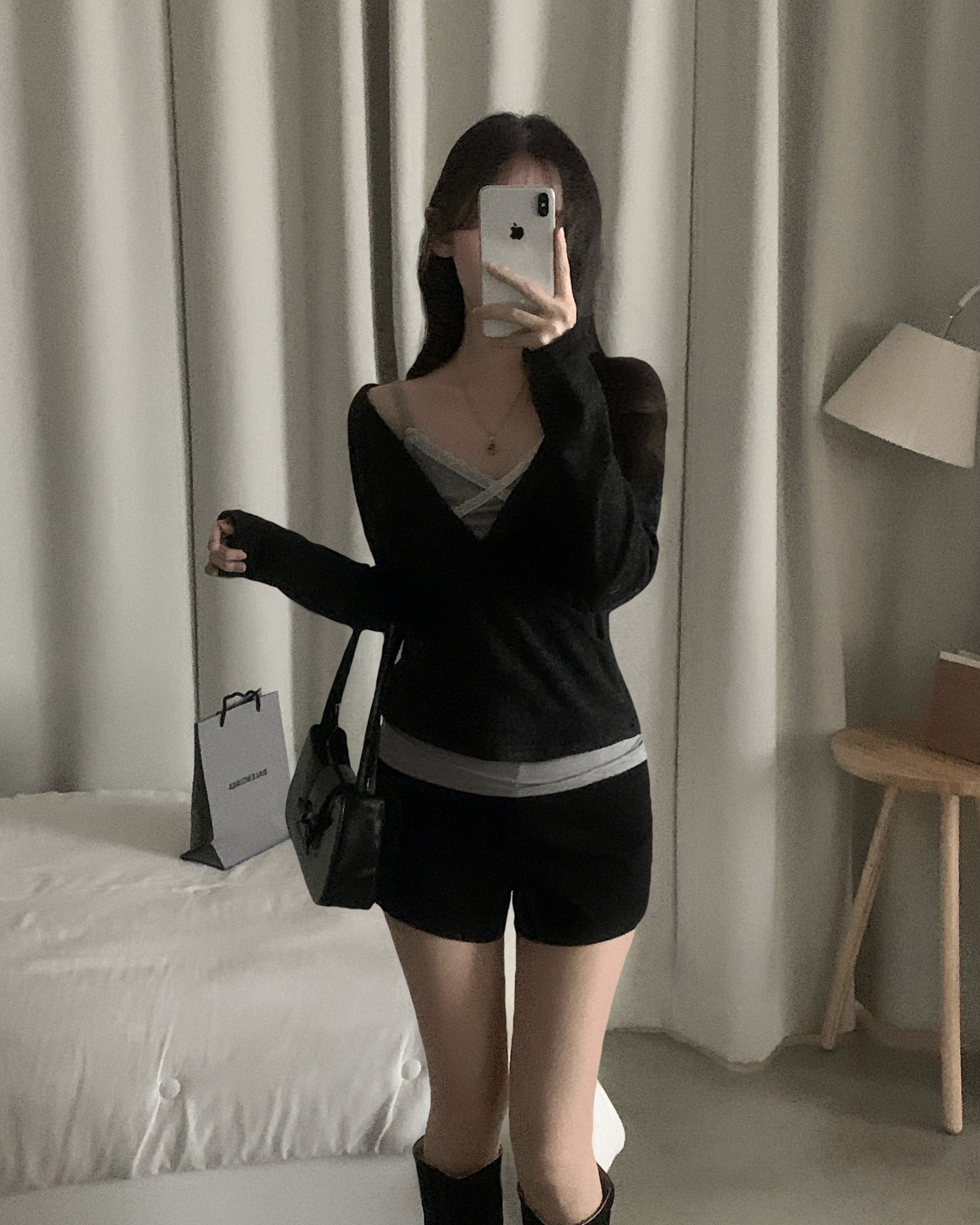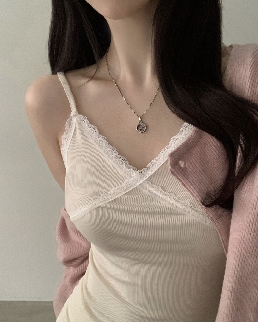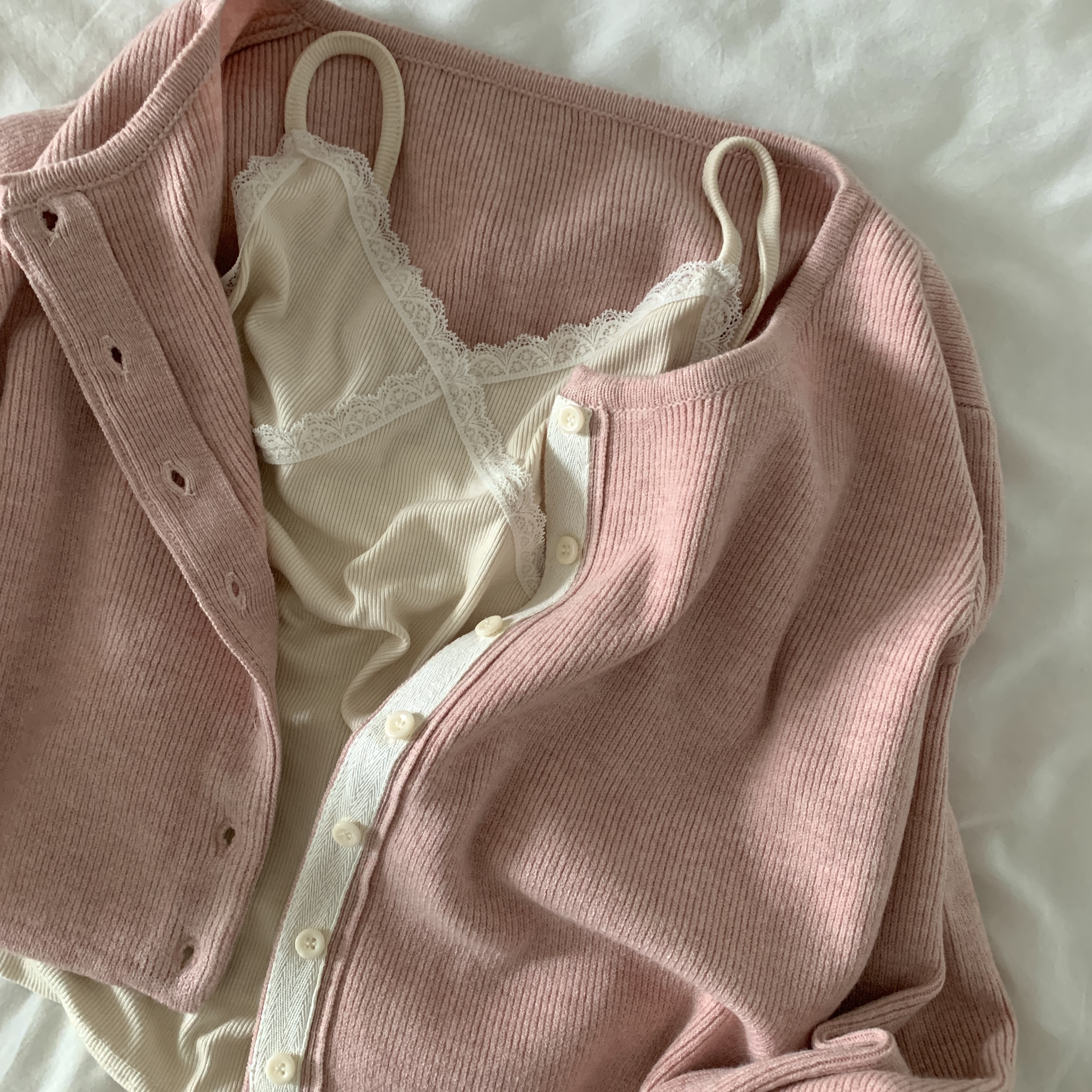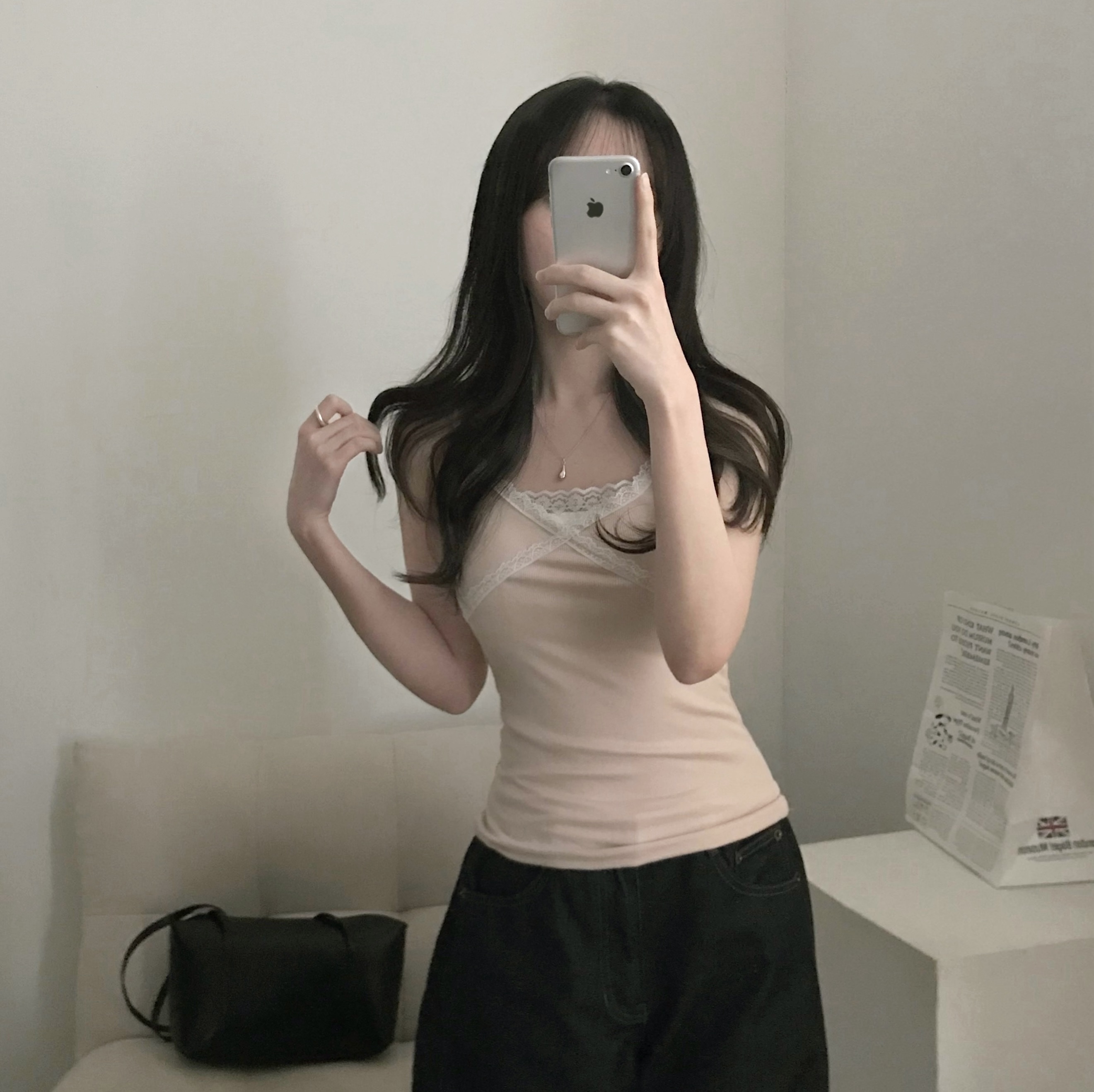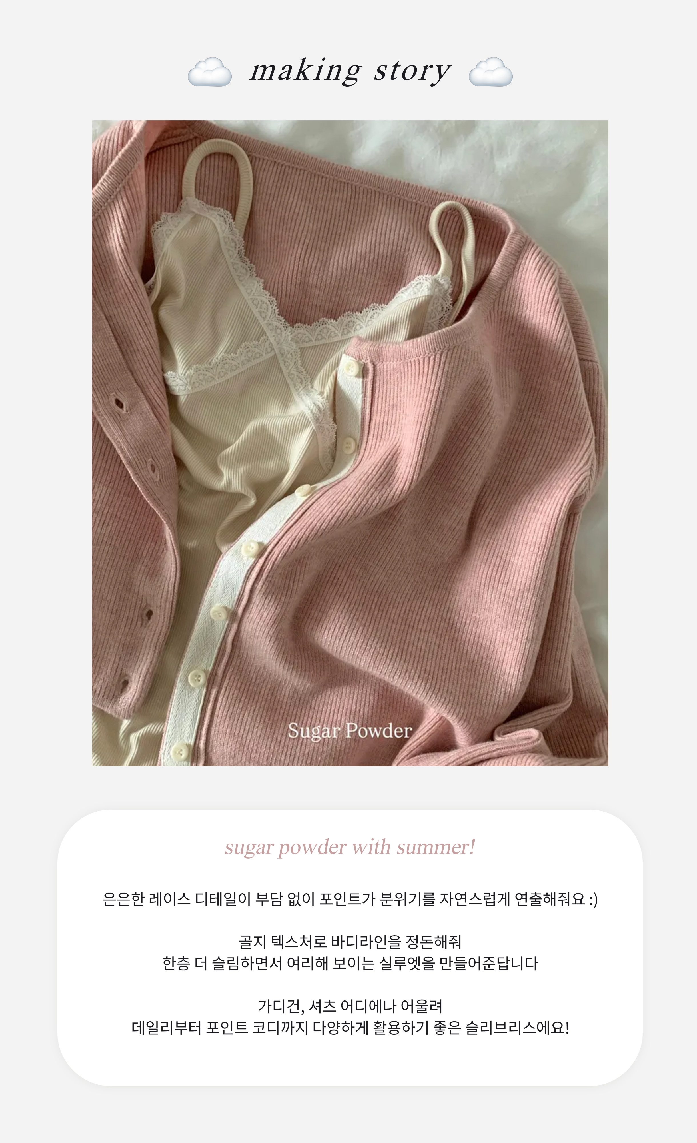 가디건이나 셔츠 안에 레이어드하거나 포인트 이너로 입어주기 좋아요!