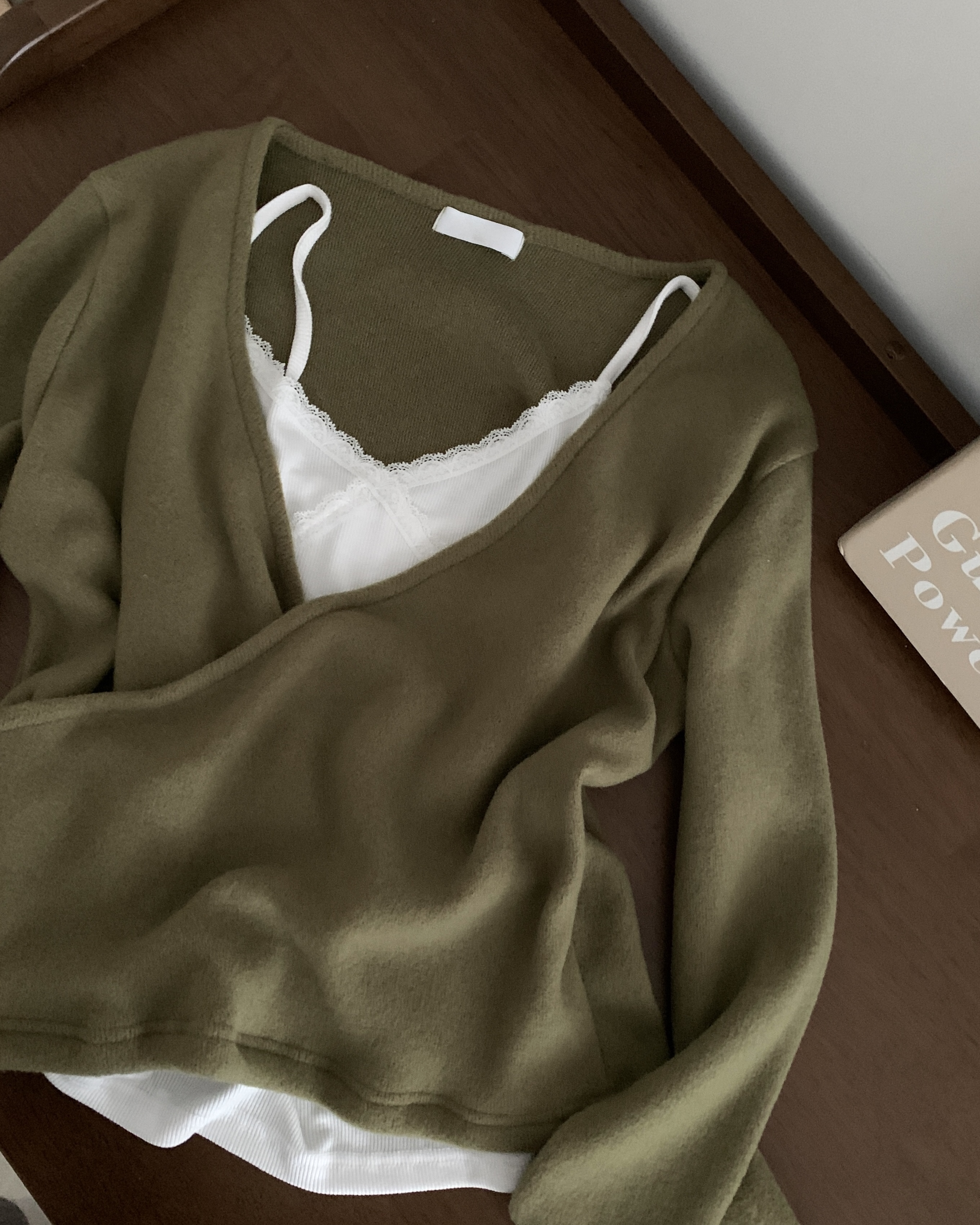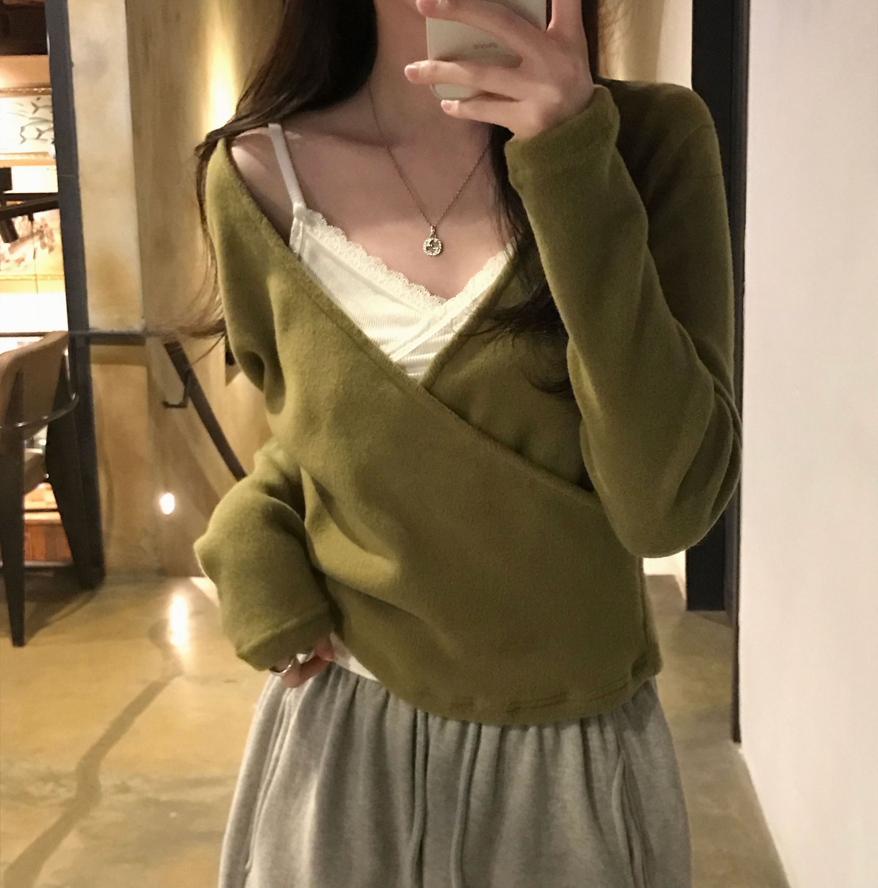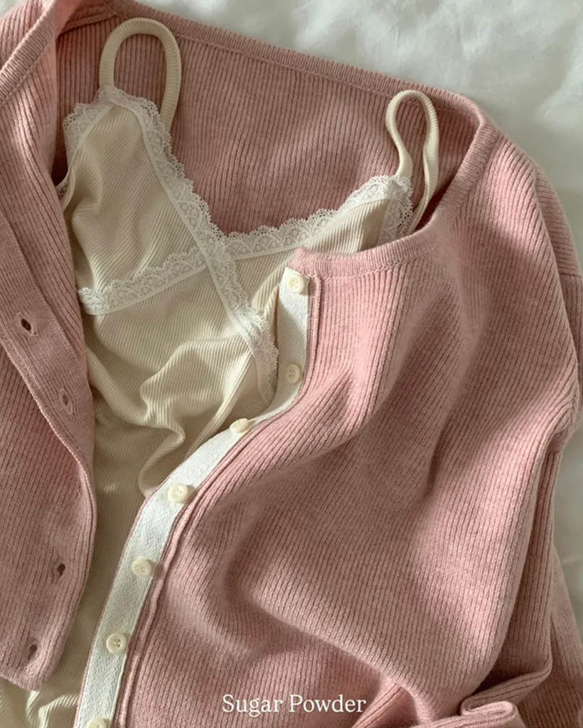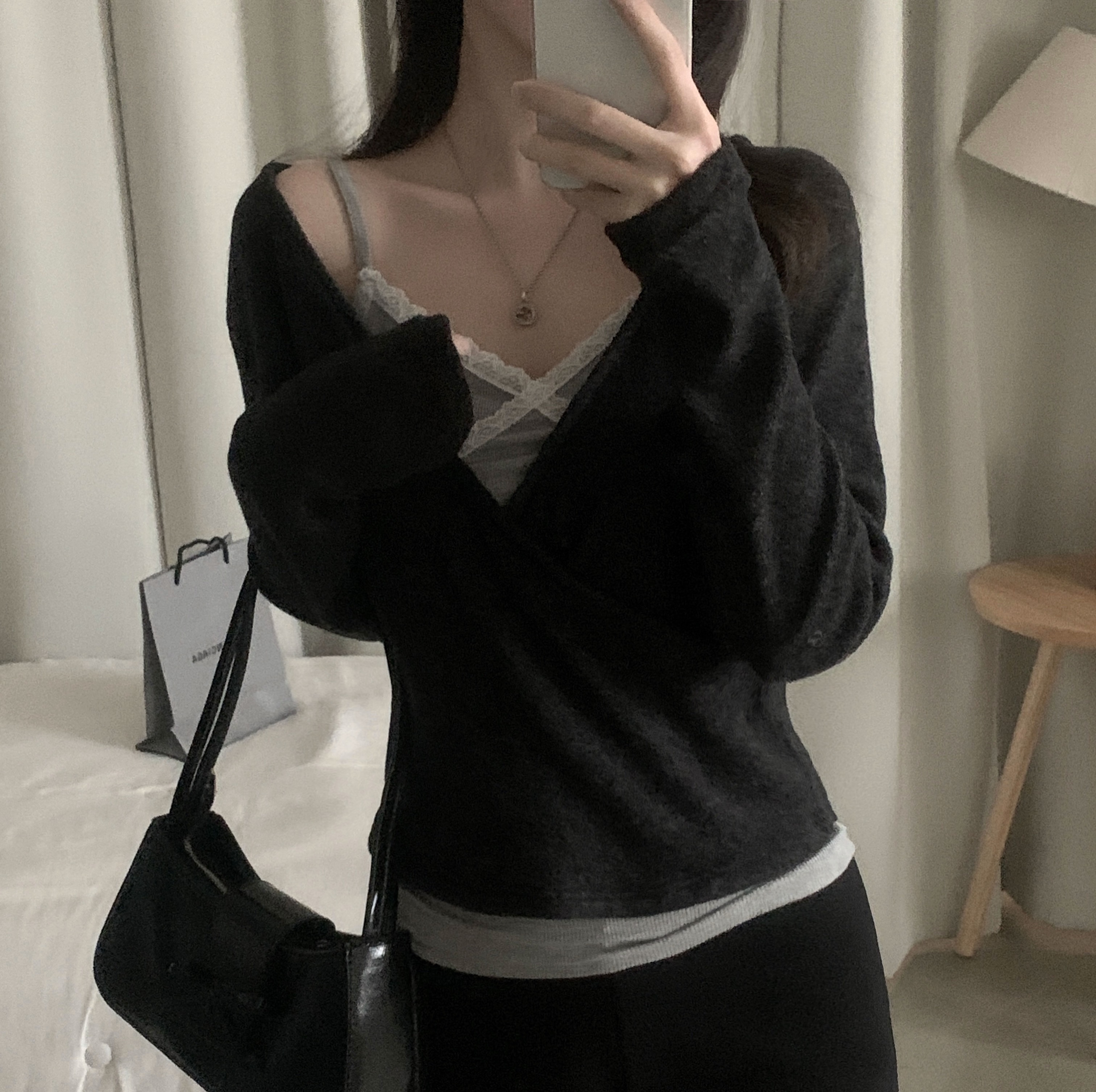 가디건이나 셔츠 안에 레이어드하거나 포인트 이너로 입어주기 좋아요!