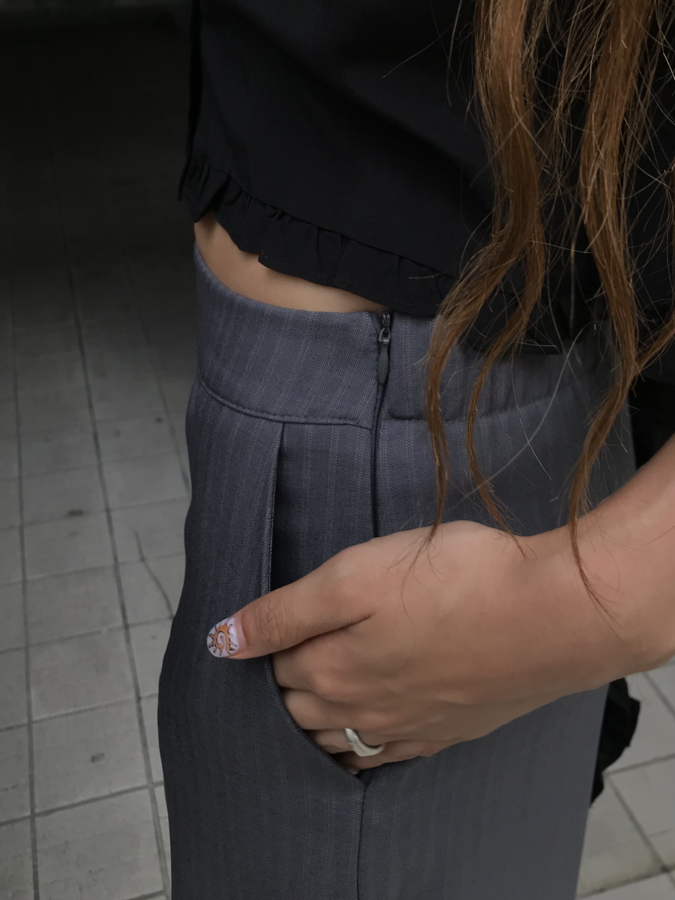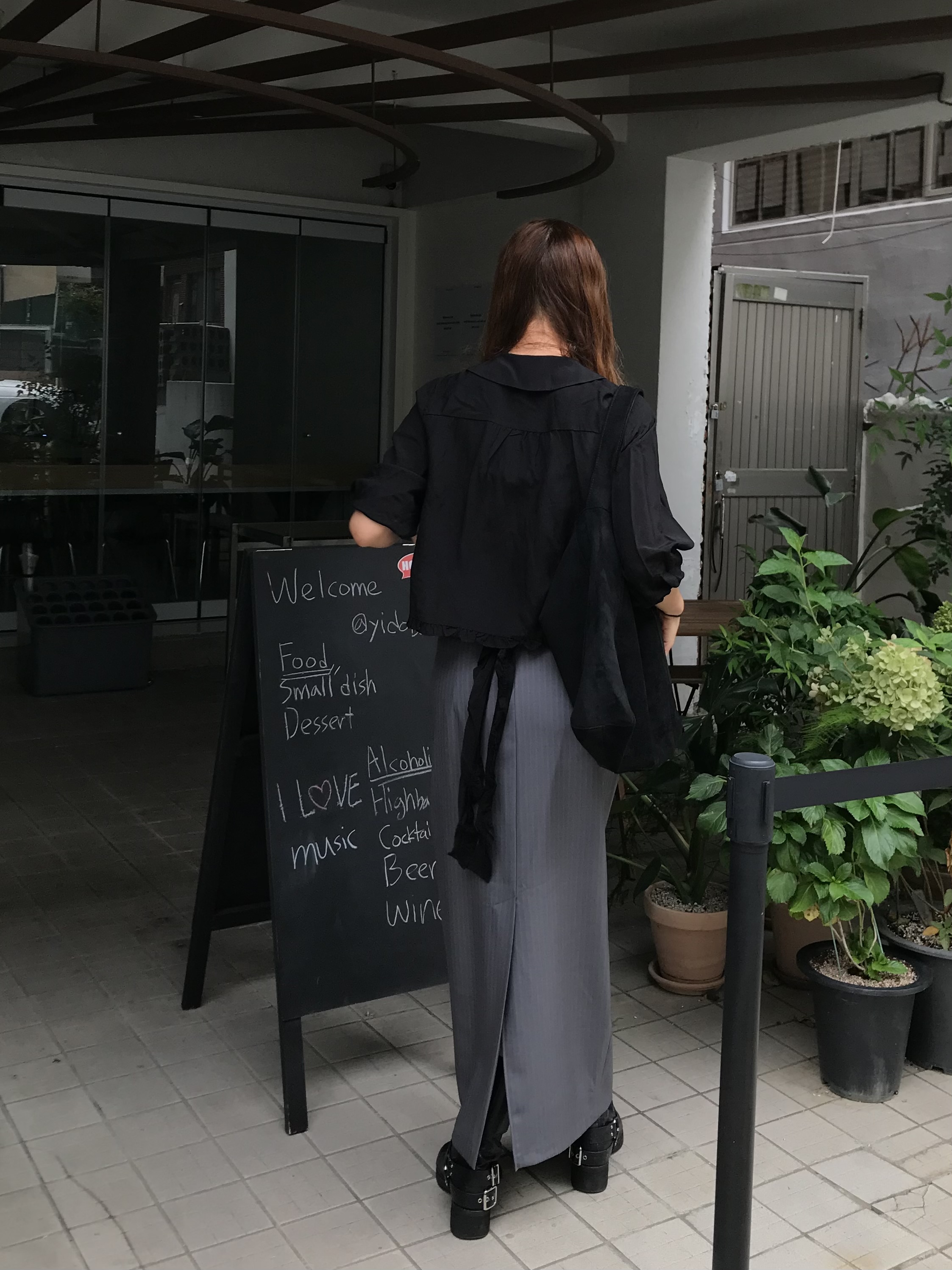 ウエスト 32~42 (뒷調節可能) ヒップ 45 裾幅 46 総丈 90 트임 42