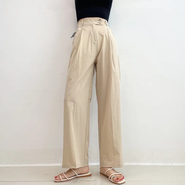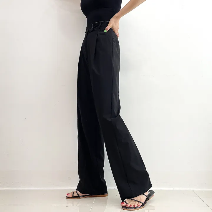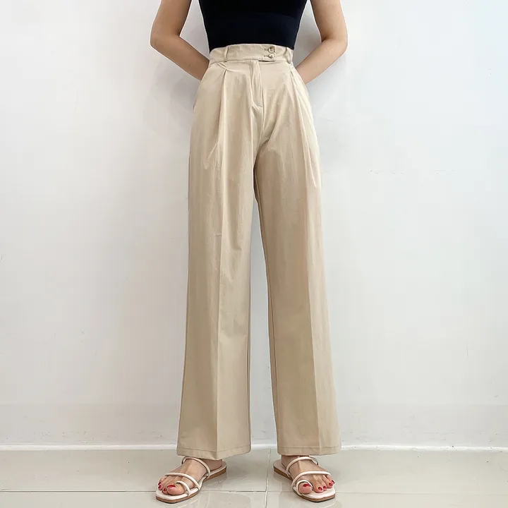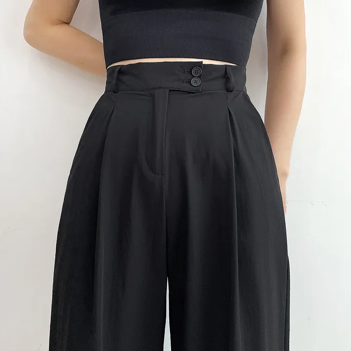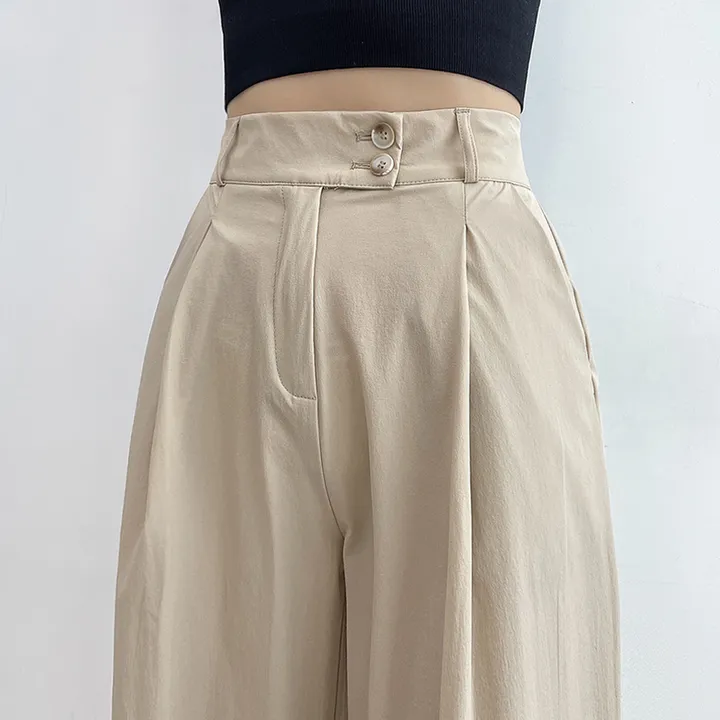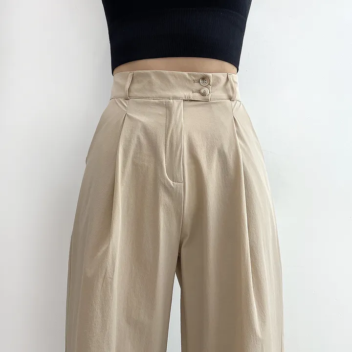[選べる着丈] 冷感ナイロンツーボタンタック入りワイドスラックス