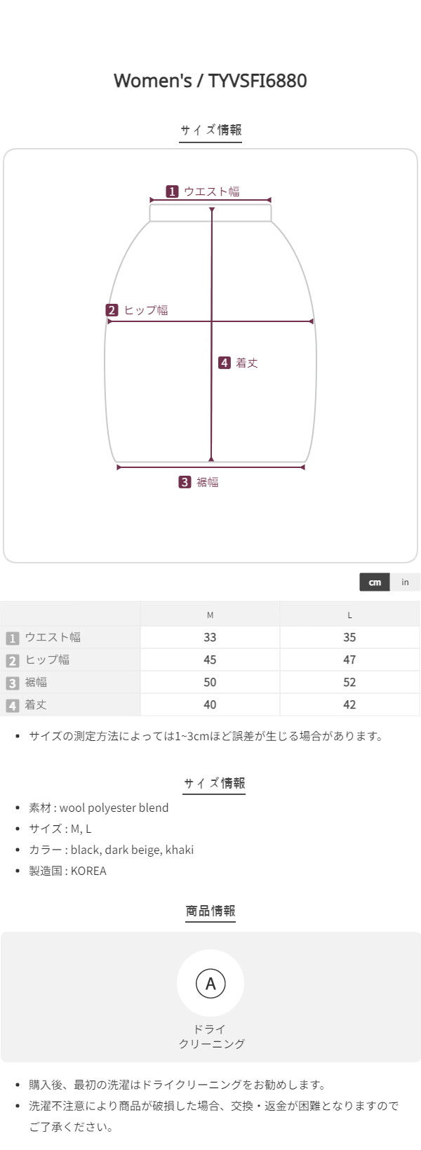[裏地起毛] 冬ポケットスリットウールミニスカート