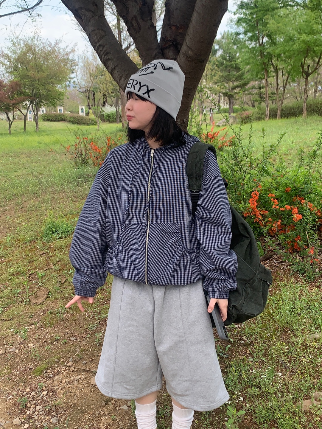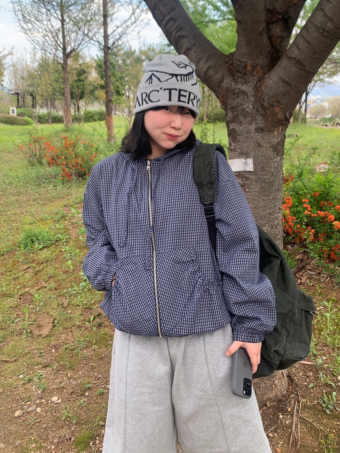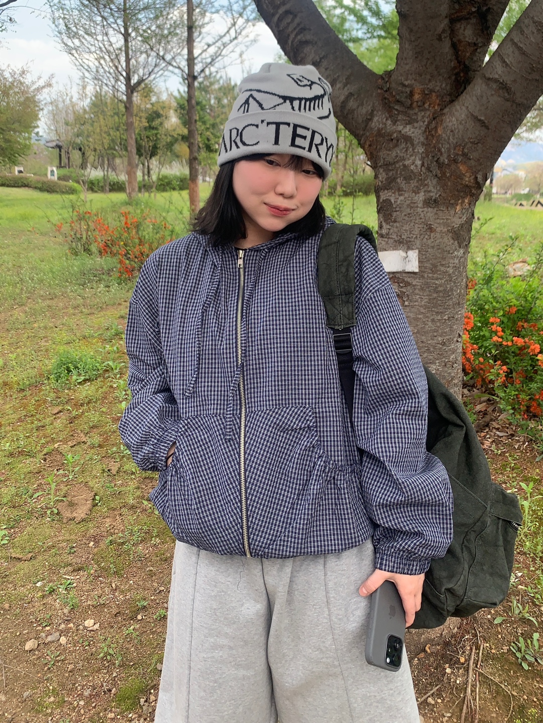 チェックパーカー