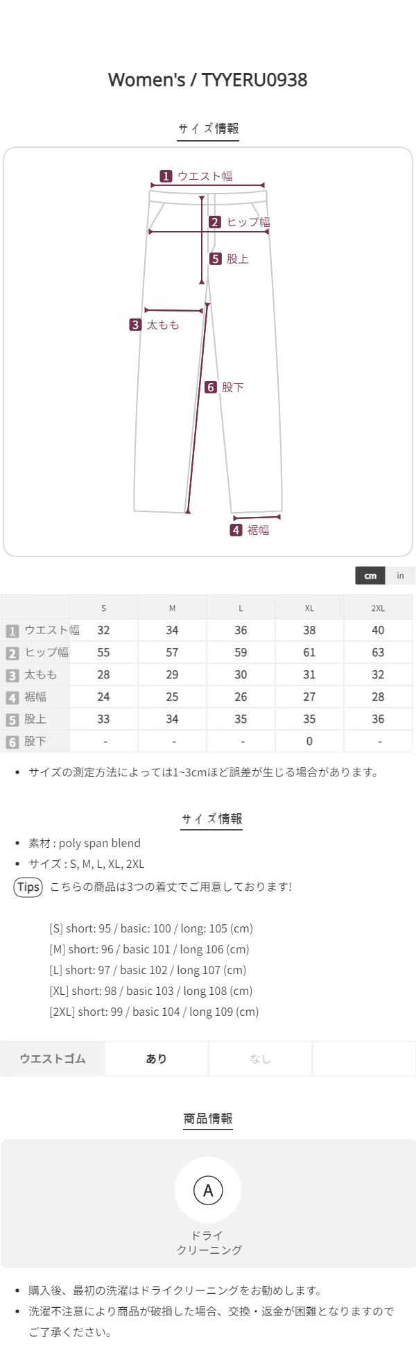 [選べる着丈] ロングタック入りバックゴムワイドスラックス