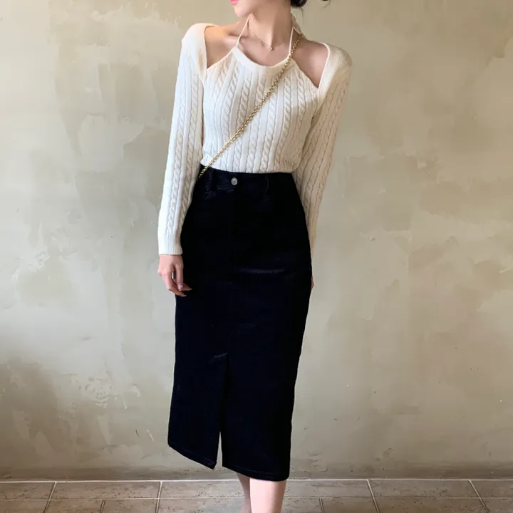 ホルタースリットクロップドニット