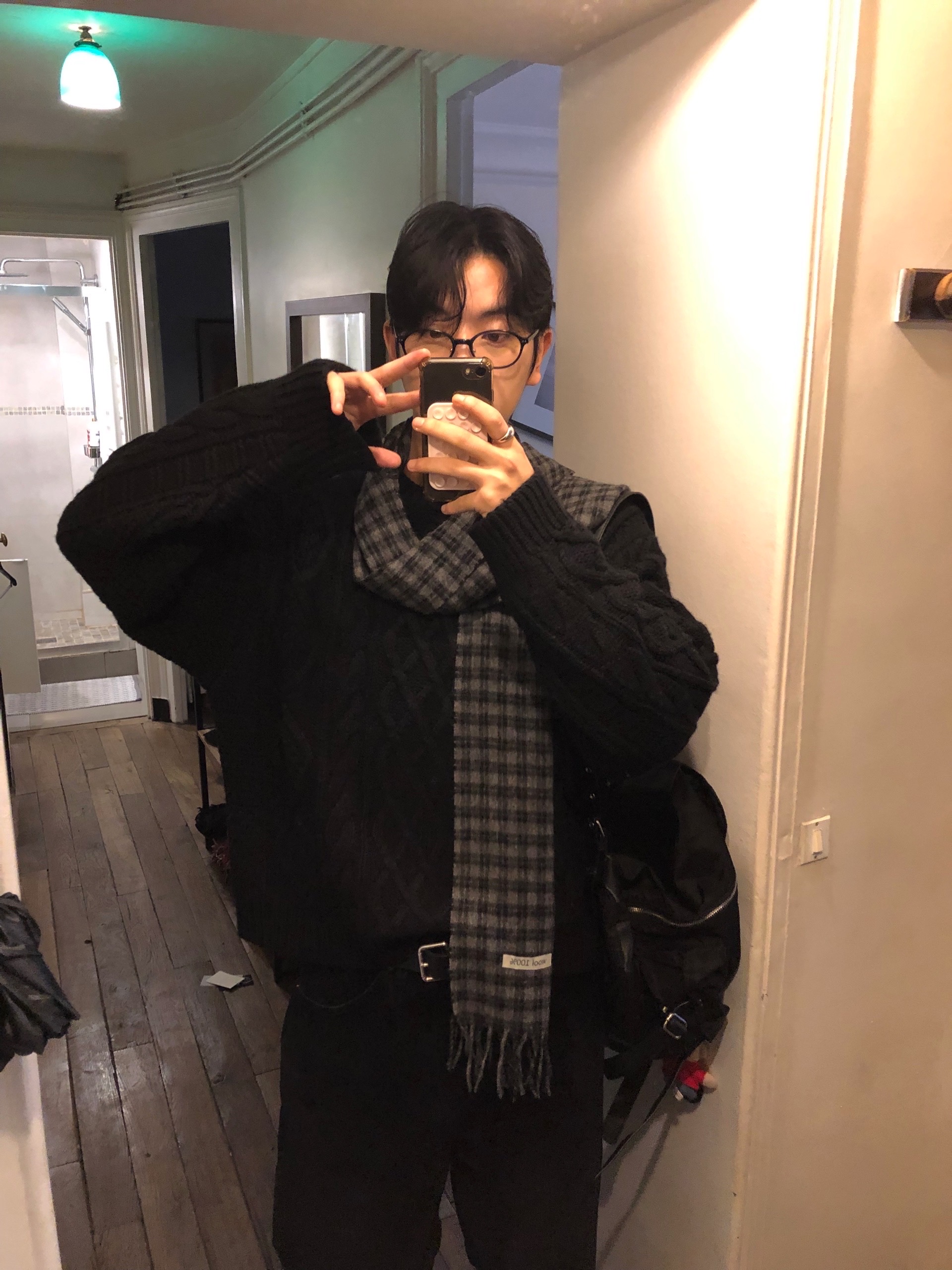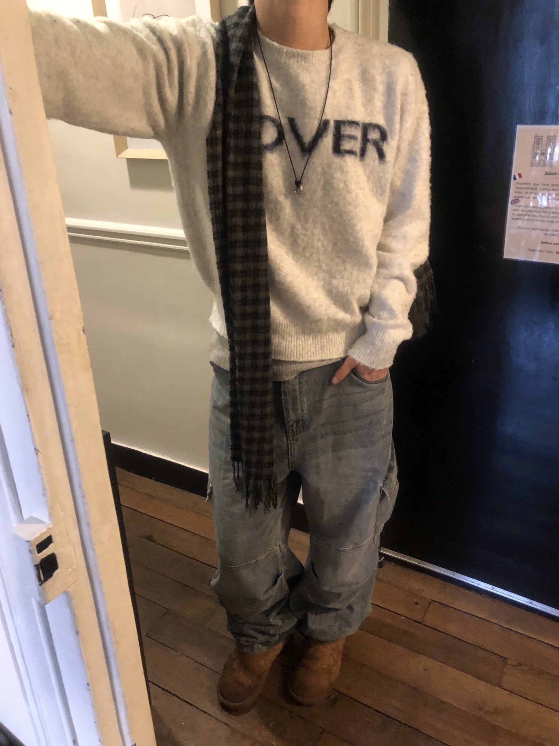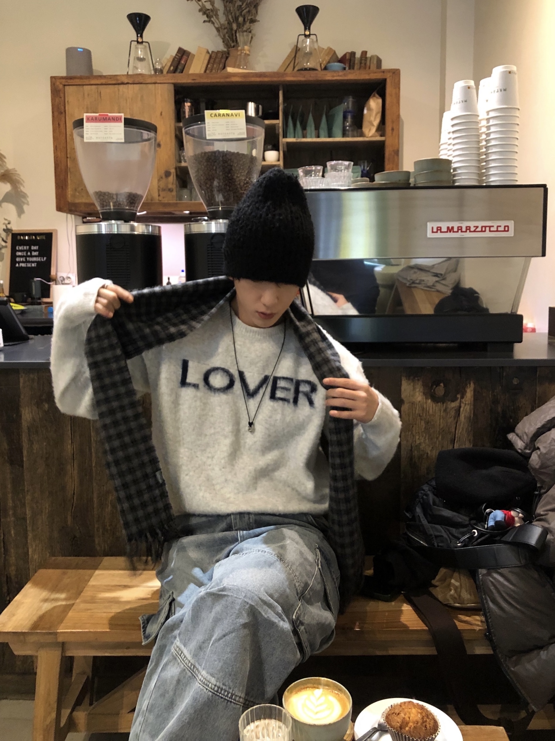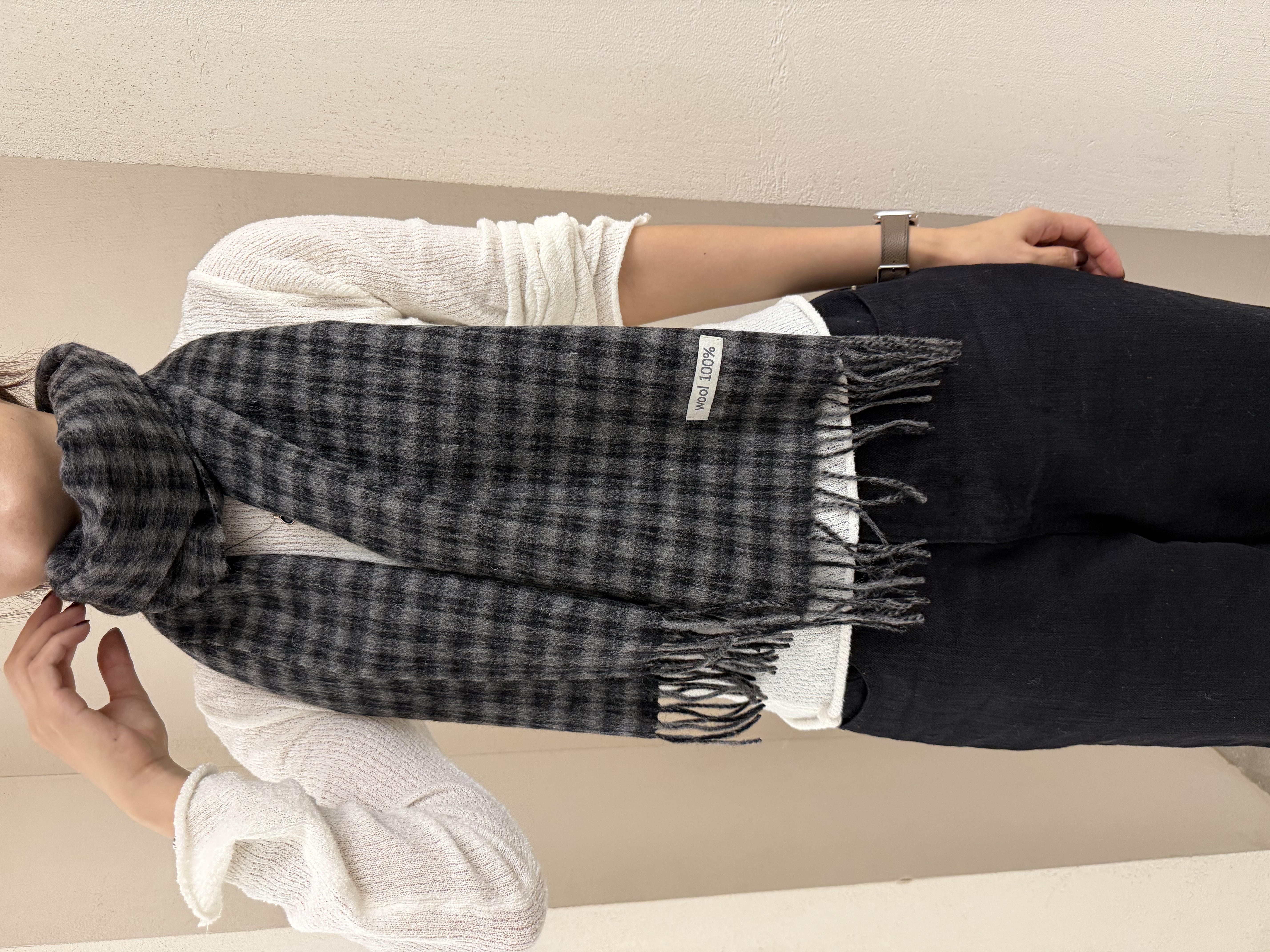 ウールシャギーチェック柄マフラー