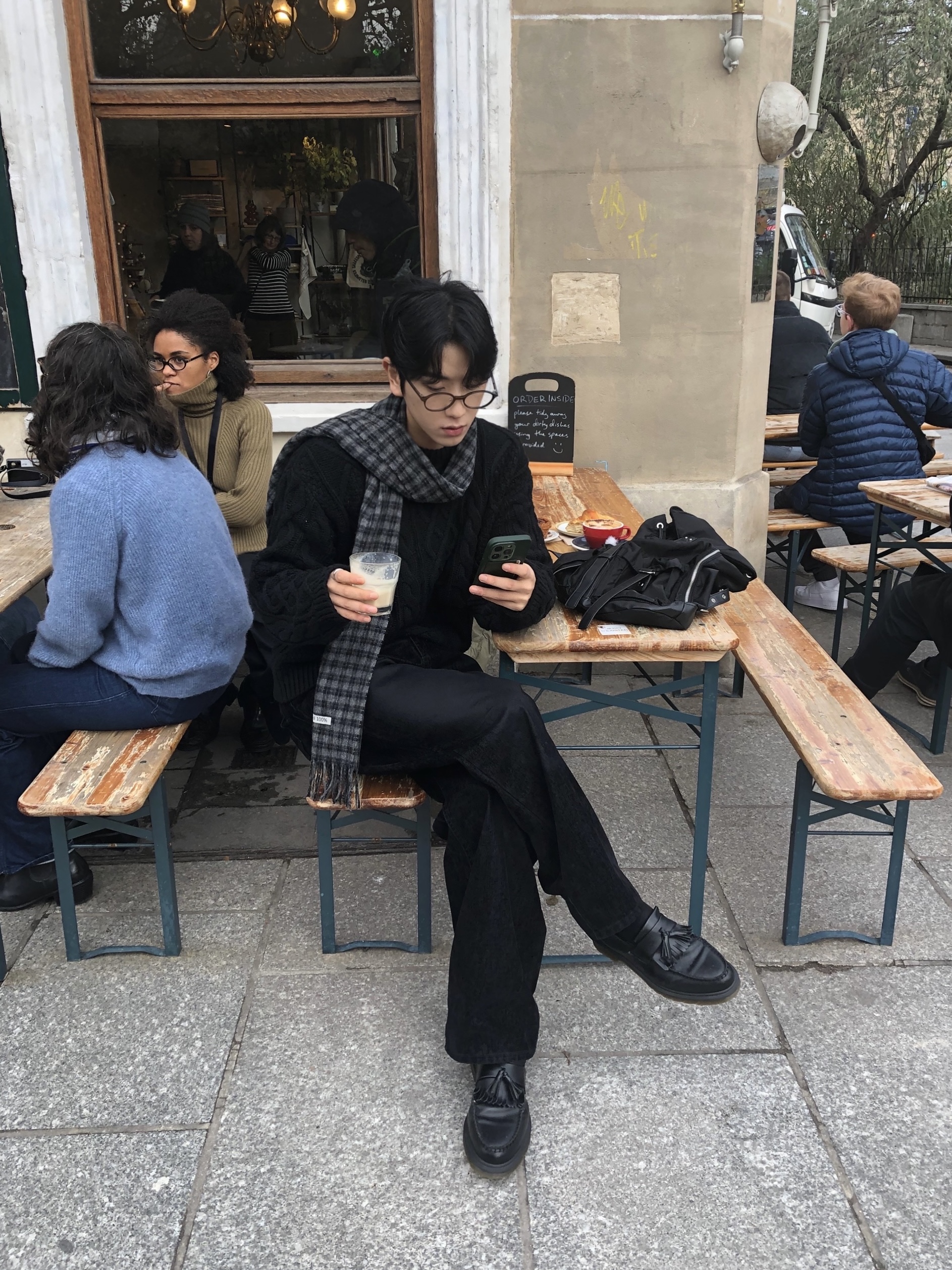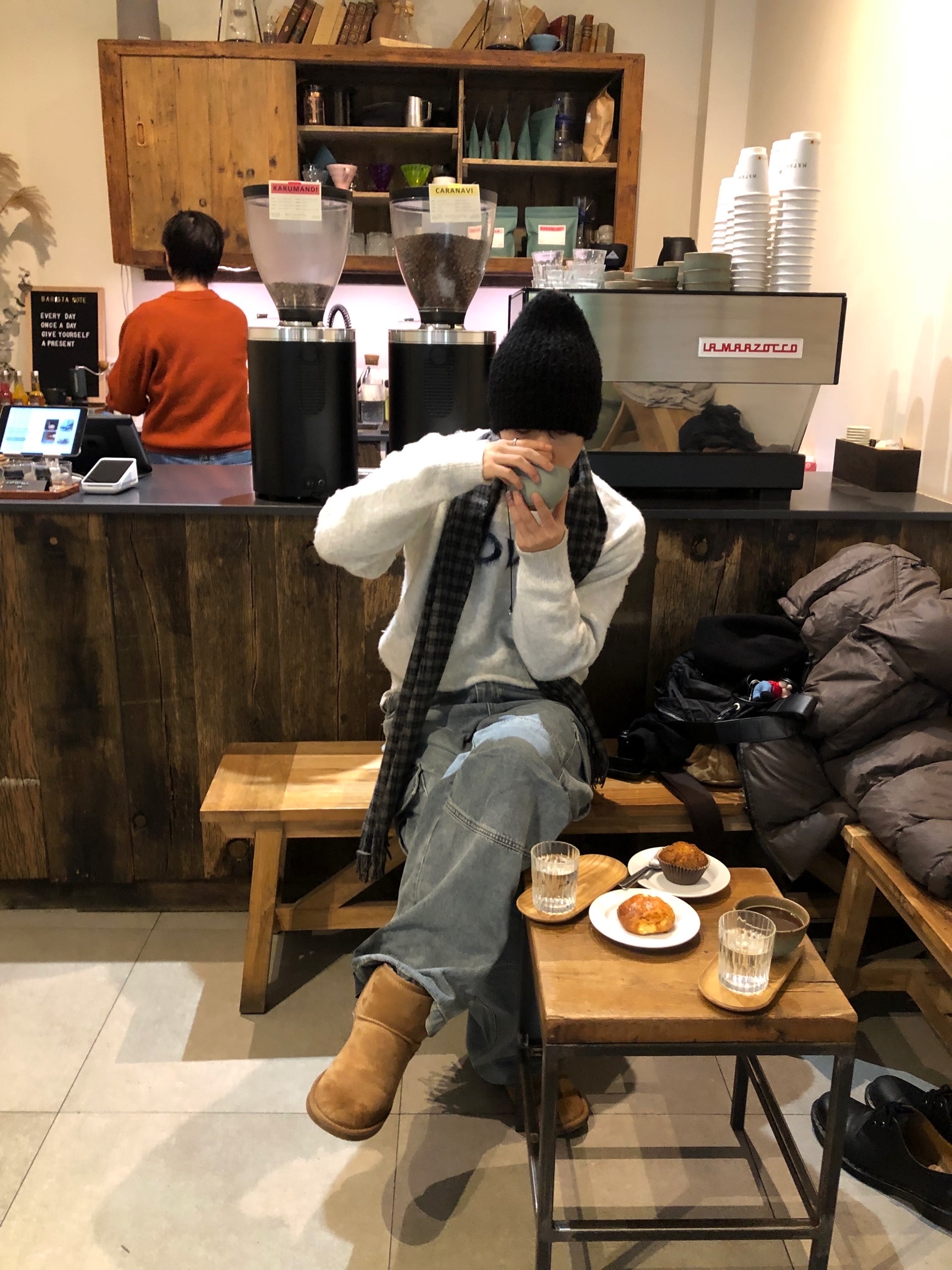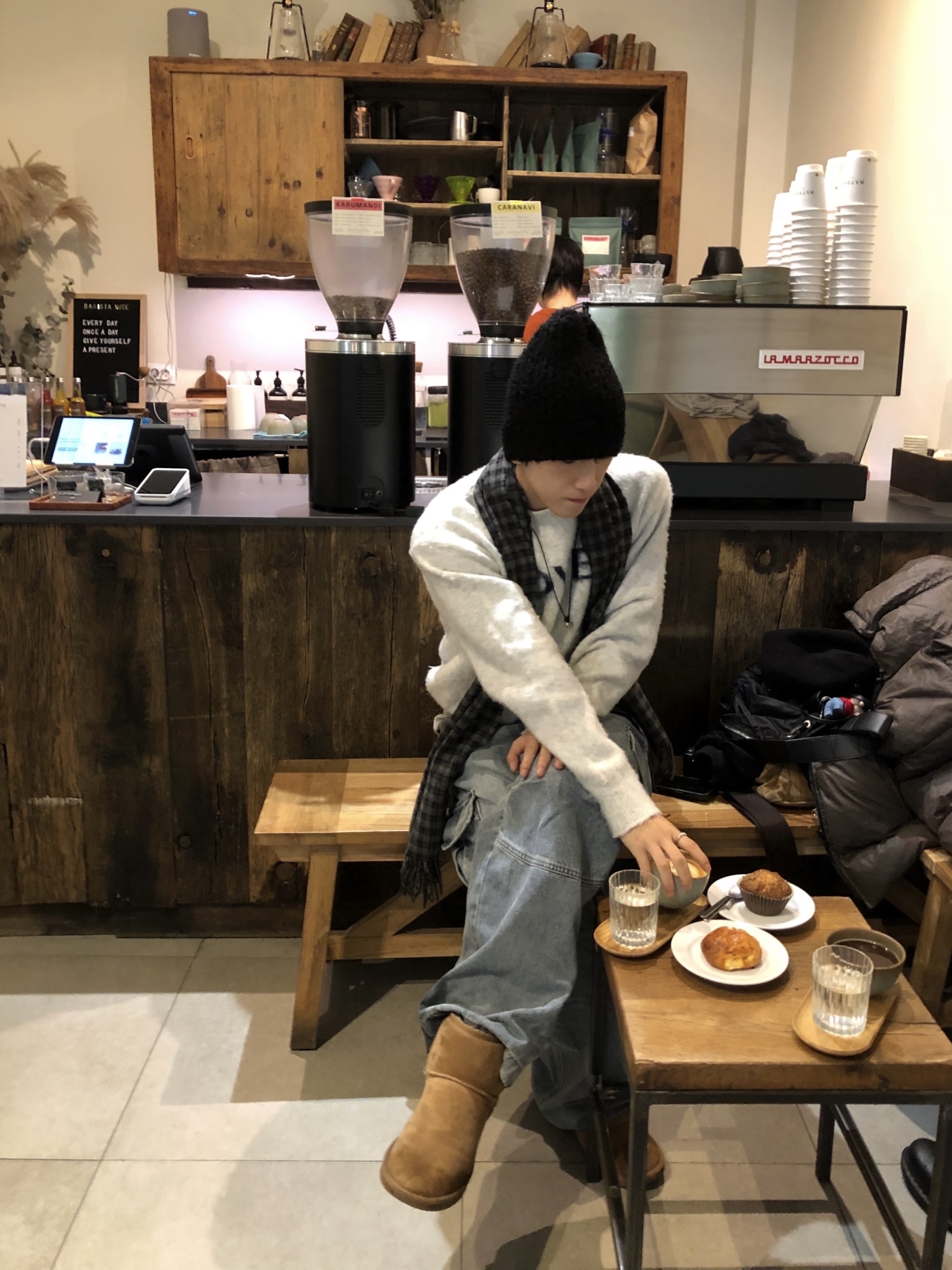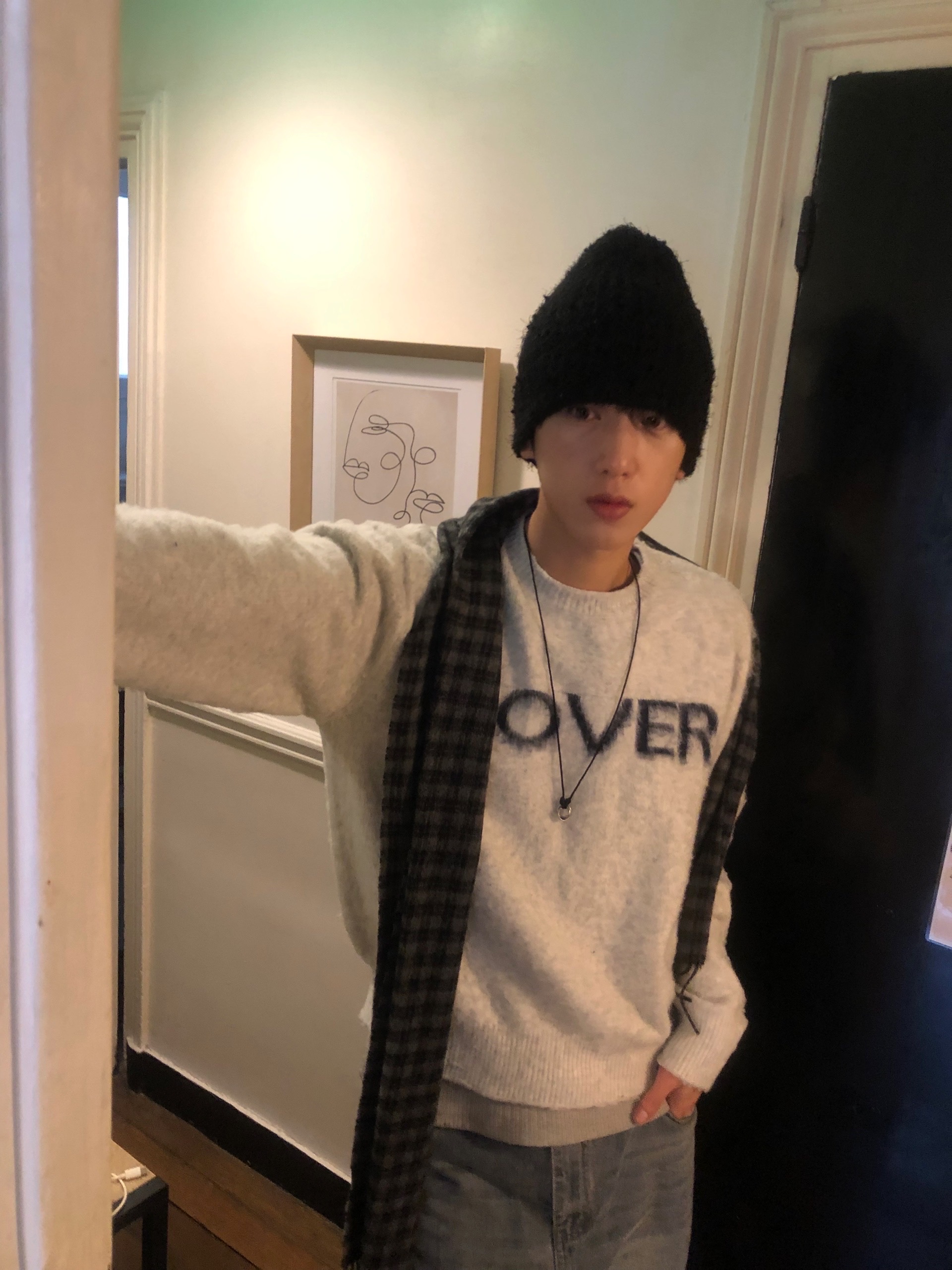 ウールシャギーチェック柄マフラー