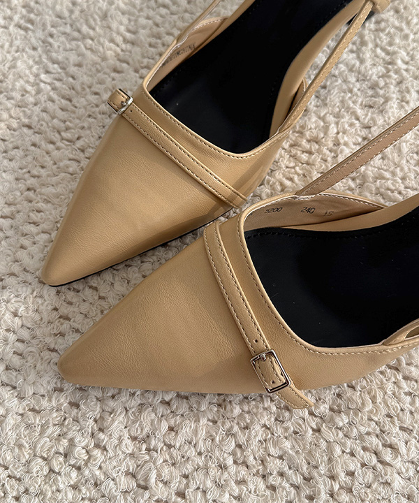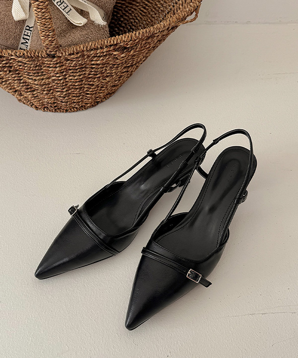 【オケージョン】サイドバックルポインテッドトゥスリングバックパンプス