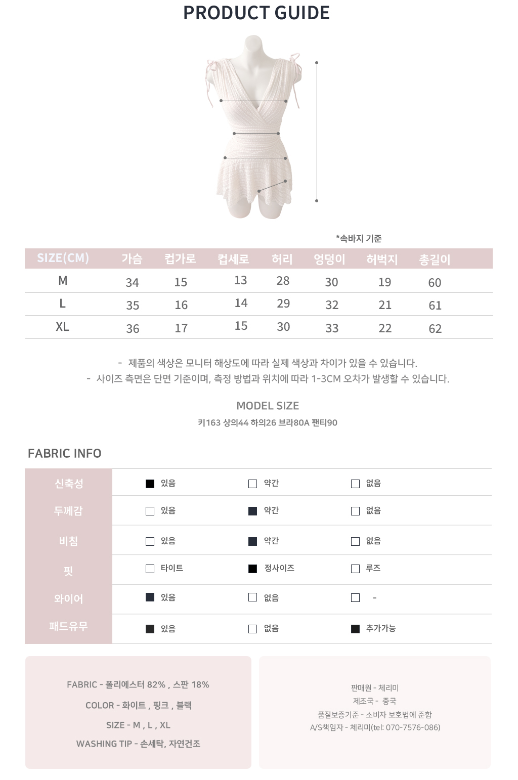 - 総丈 60 身幅 34 カップ横 15 カップ縦 13 ウエスト 28 ヒップ 30 わたり 19