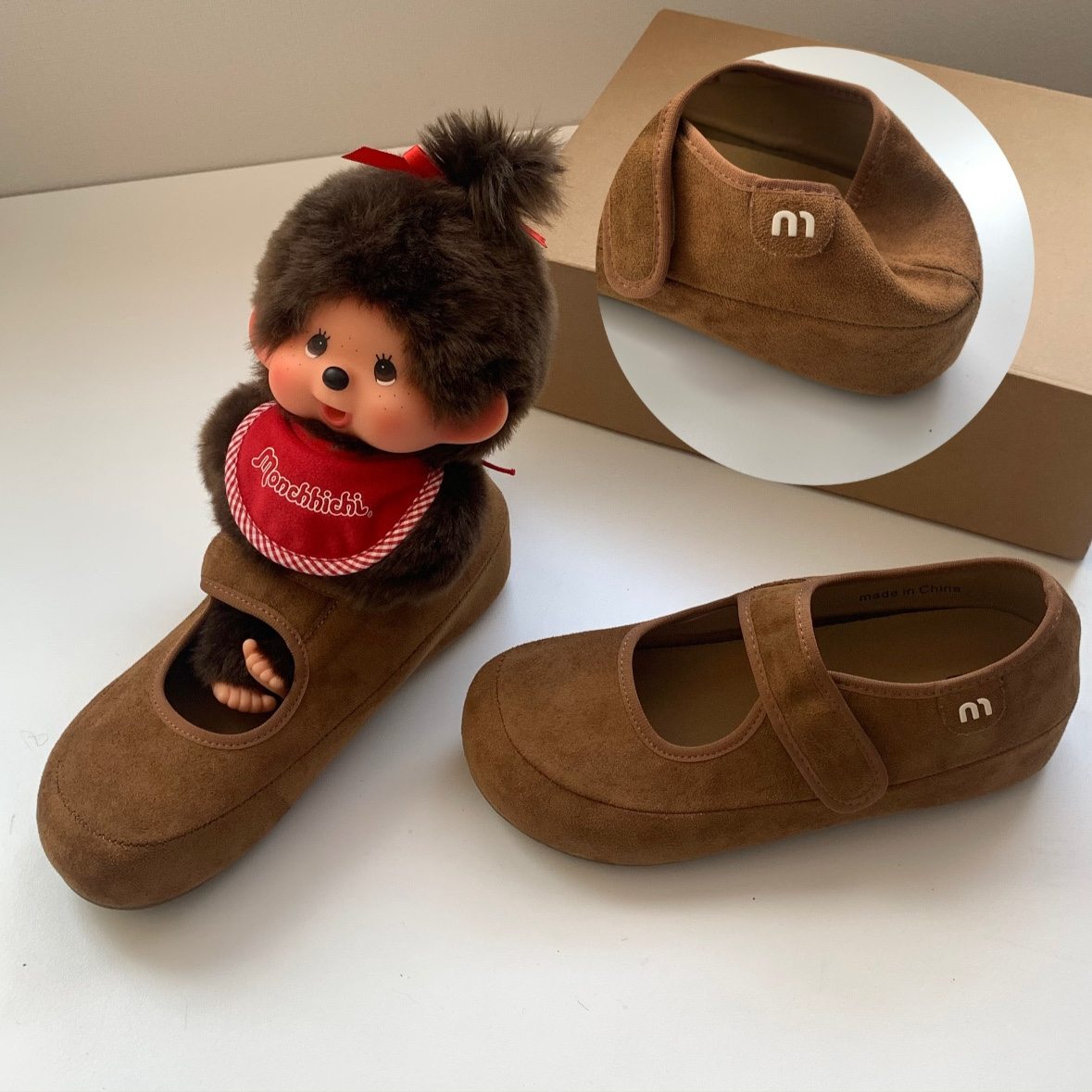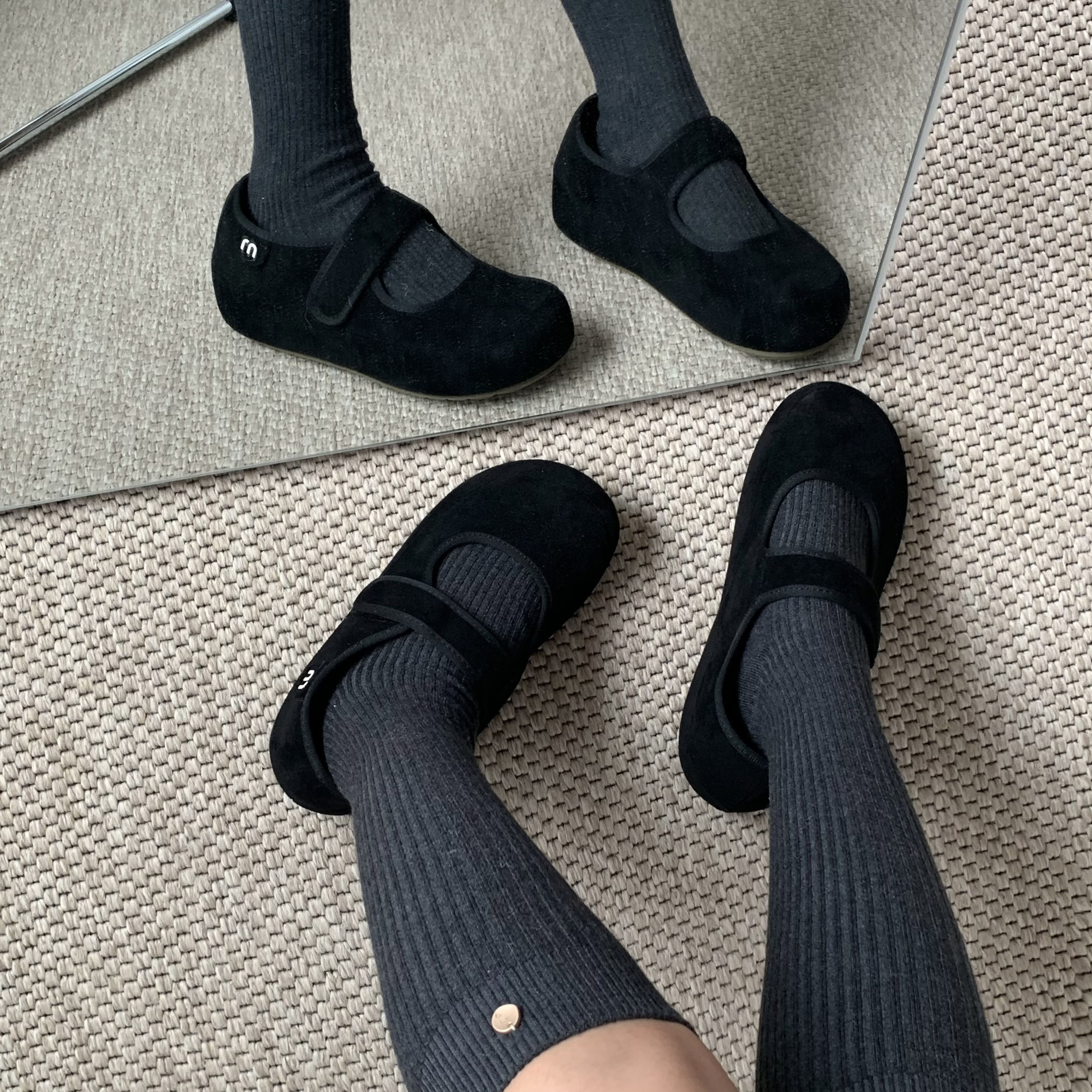 楽に履ける 3cmヒール ベーシック スエードメリージェーンローファー