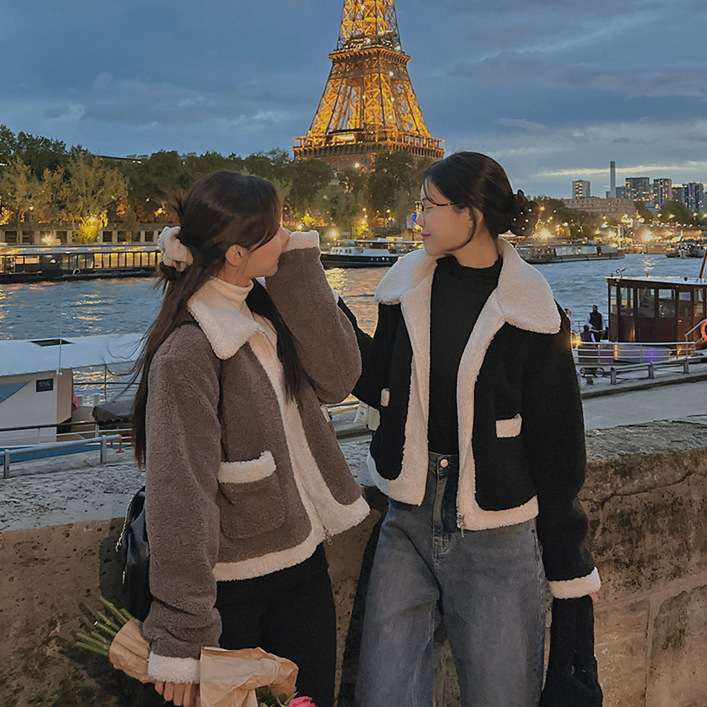 暖かいボア素材で冬にも暖かく着こなせるジャケット。