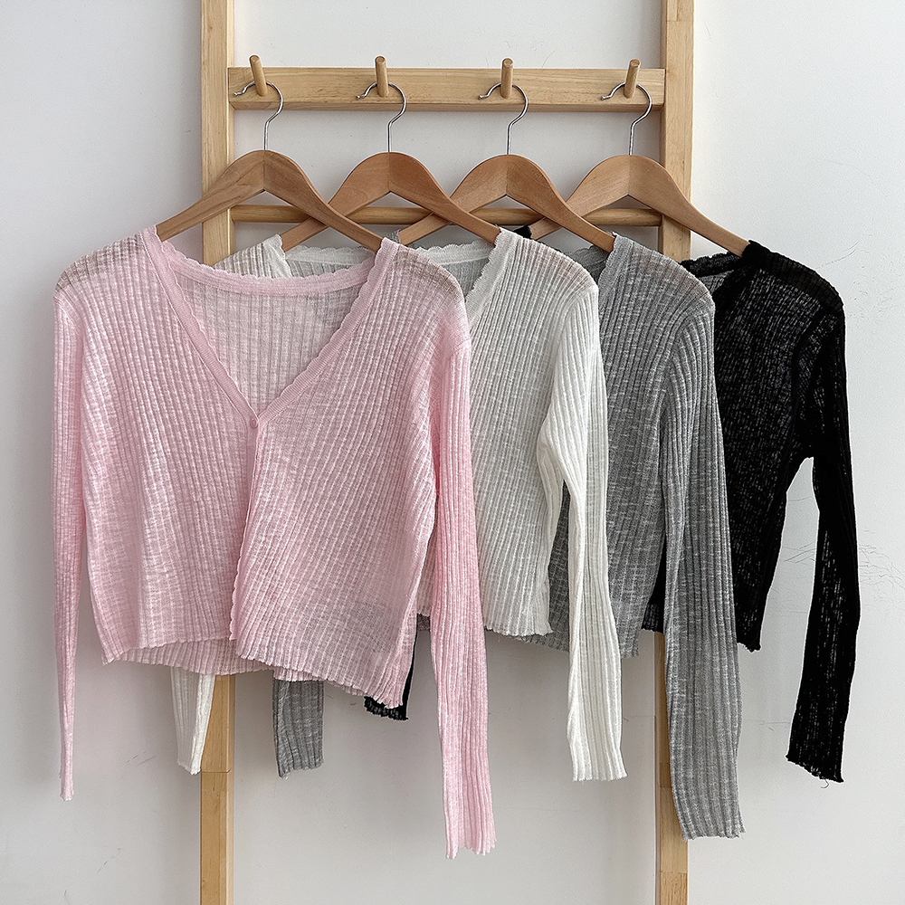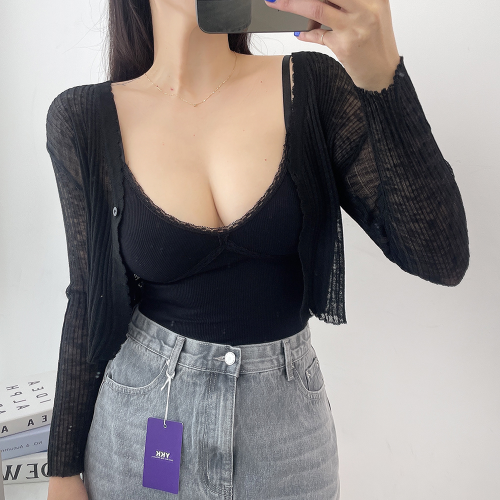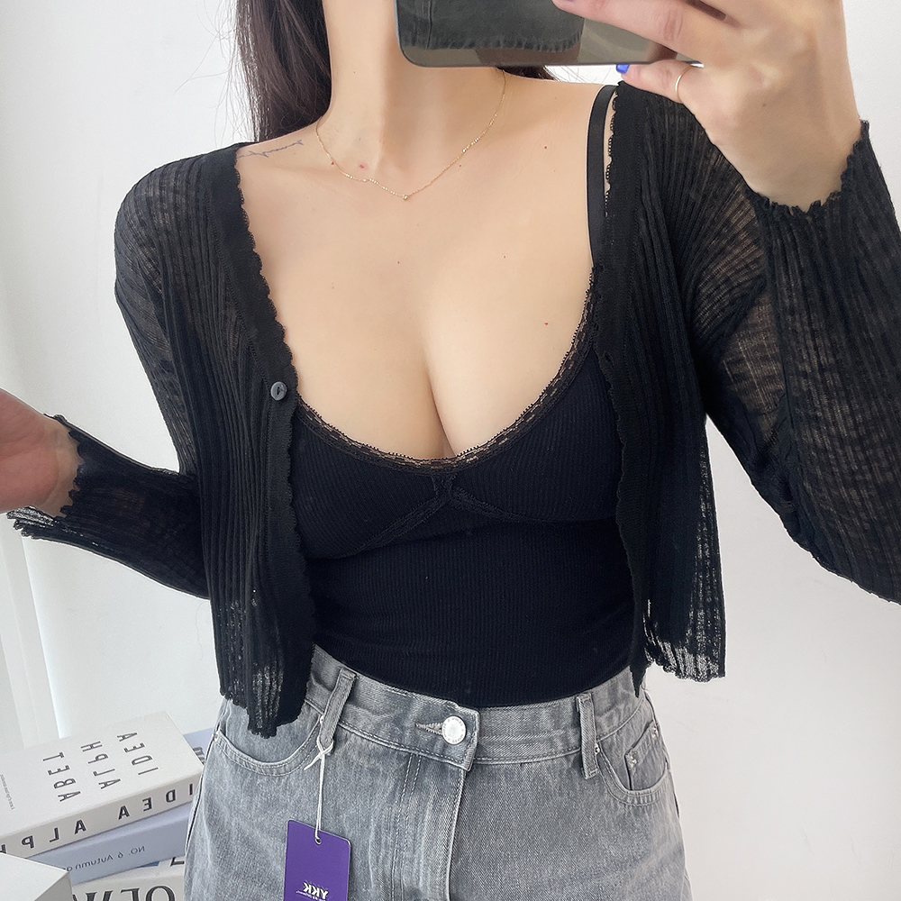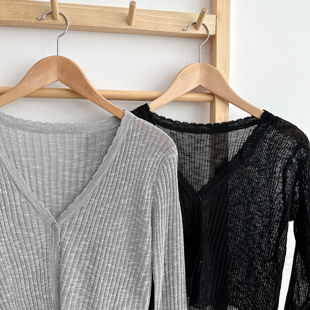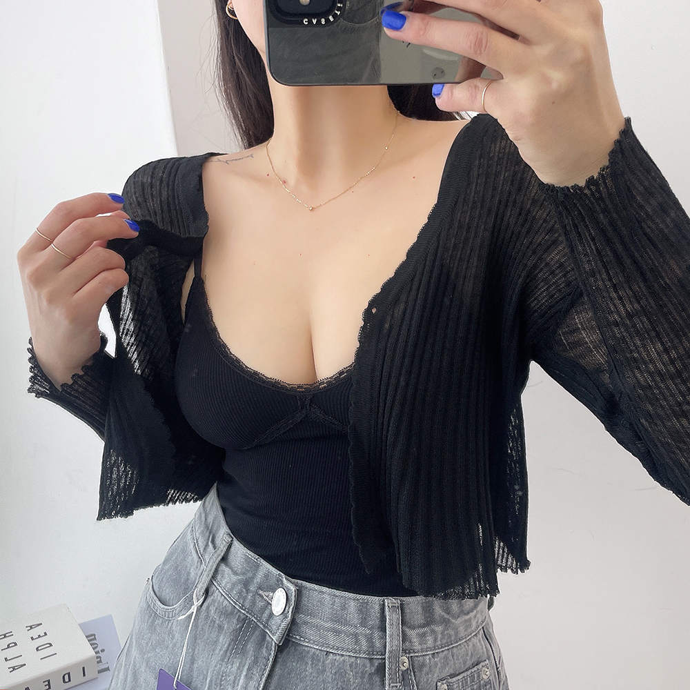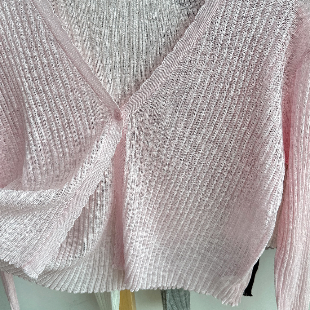シースルーワンボタン長袖クロップドカーディガン(4col)