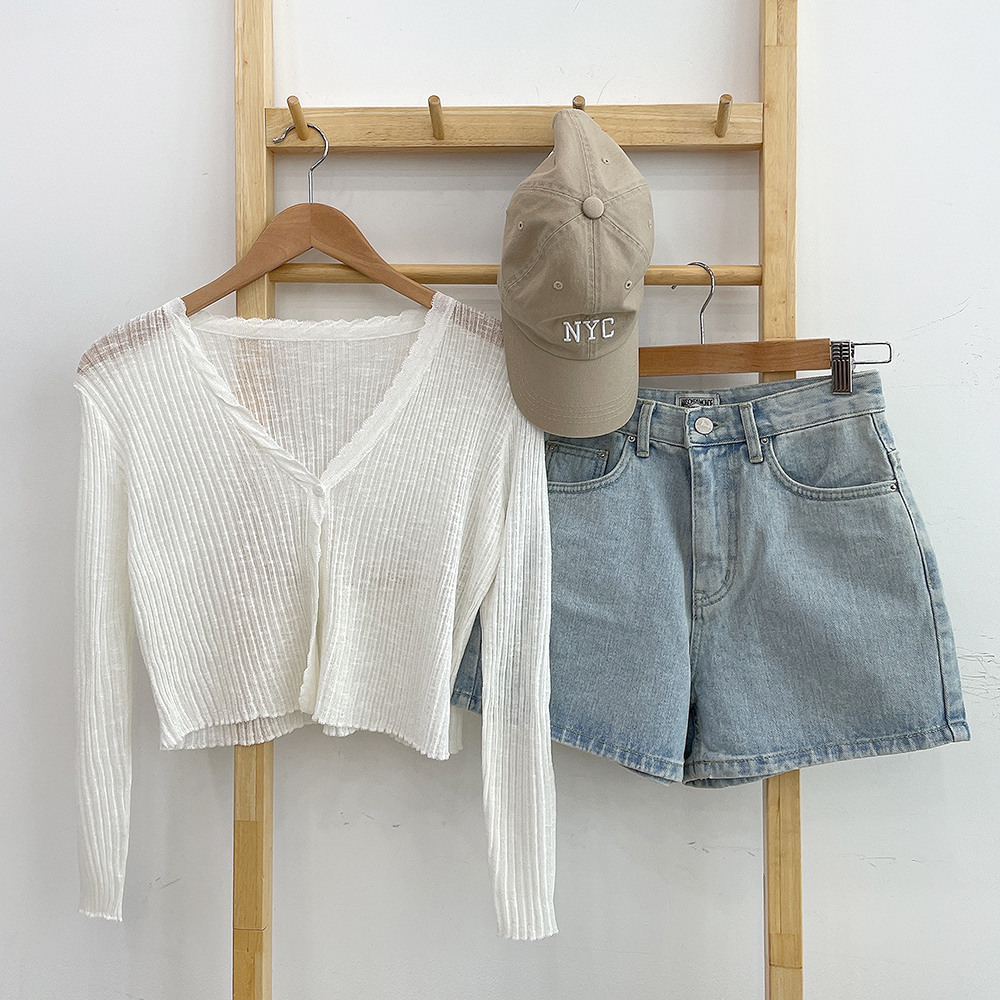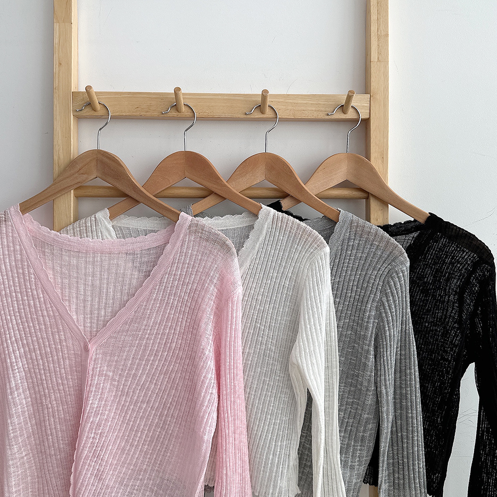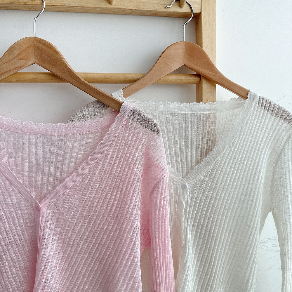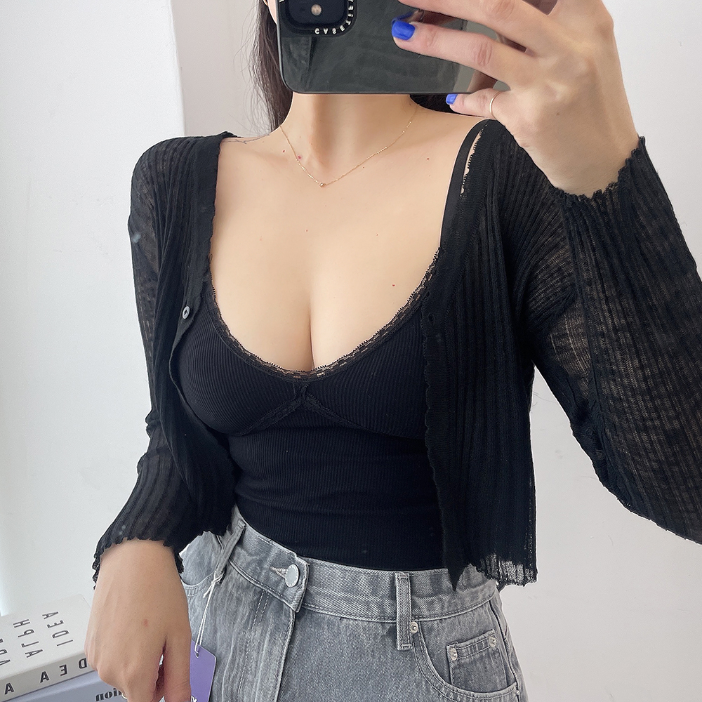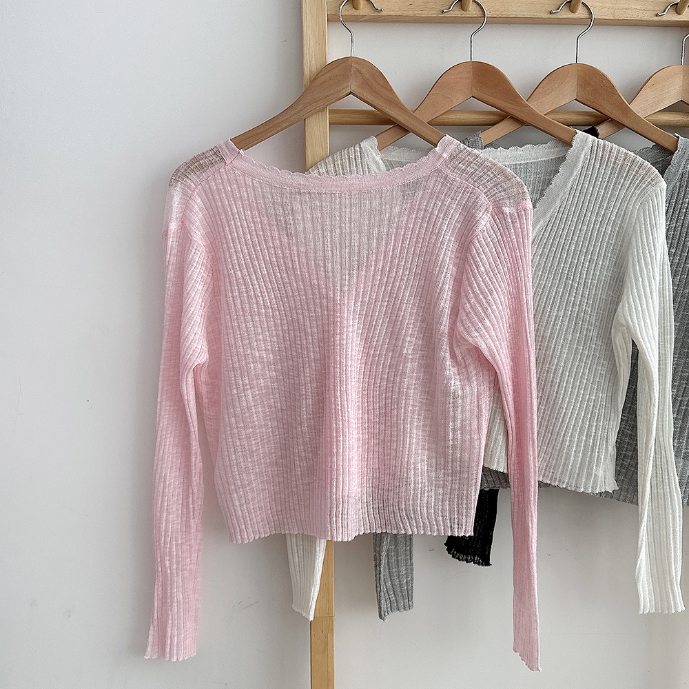 シースルーワンボタン長袖クロップドカーディガン(4col)