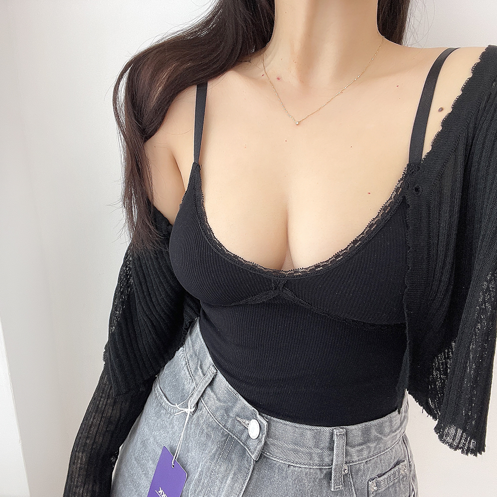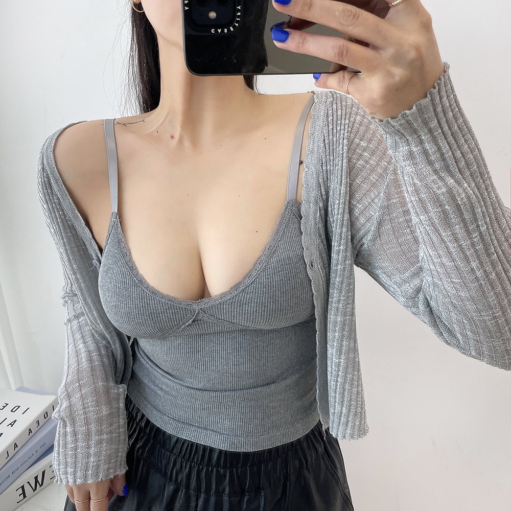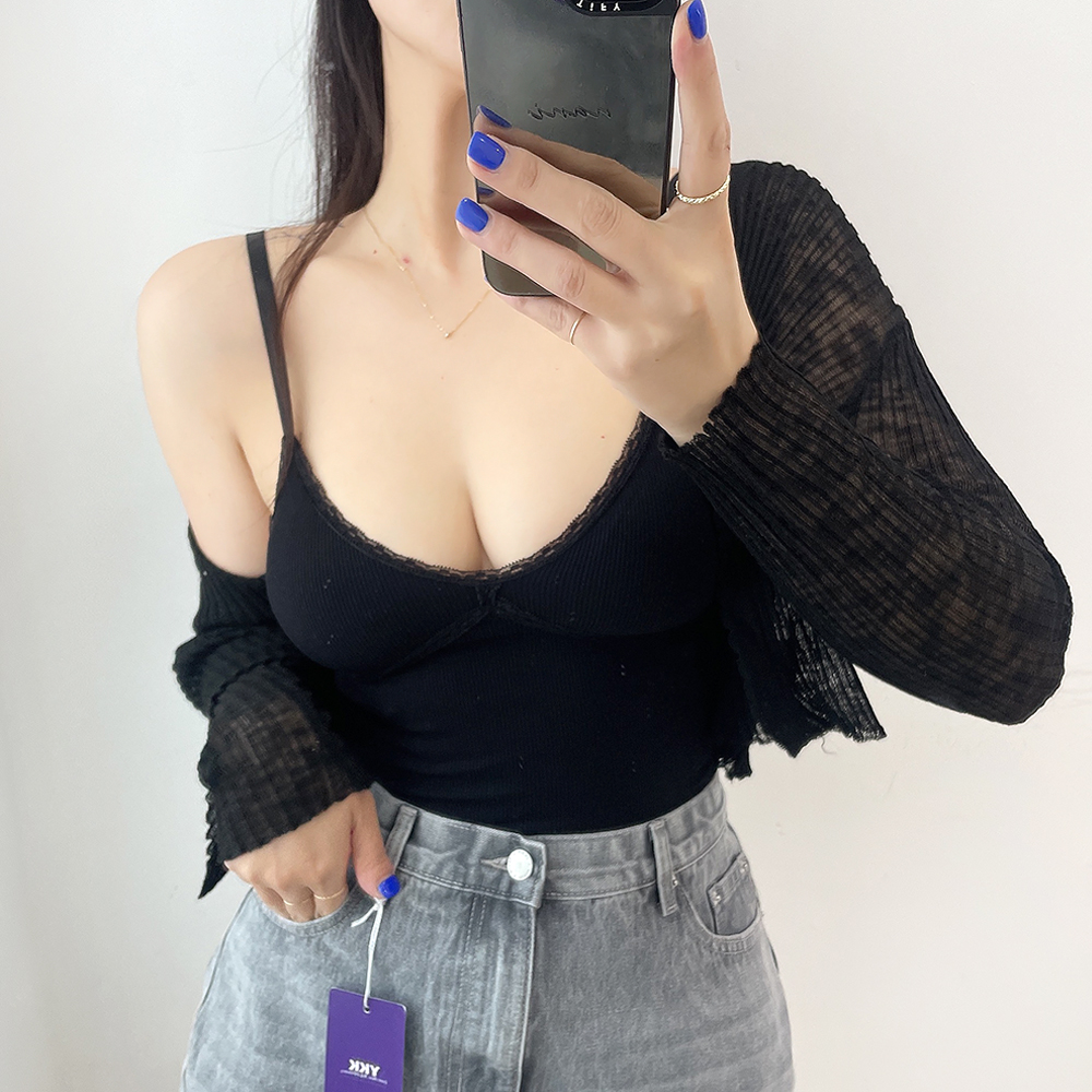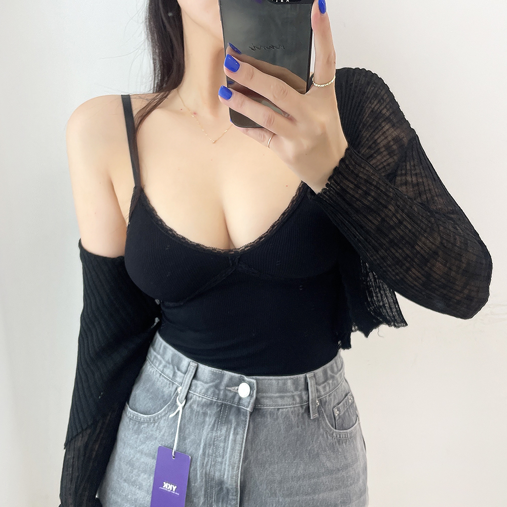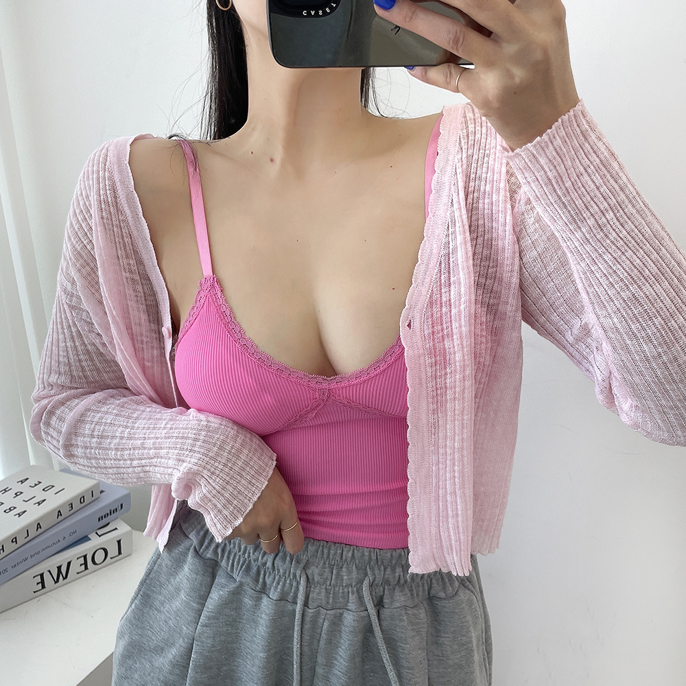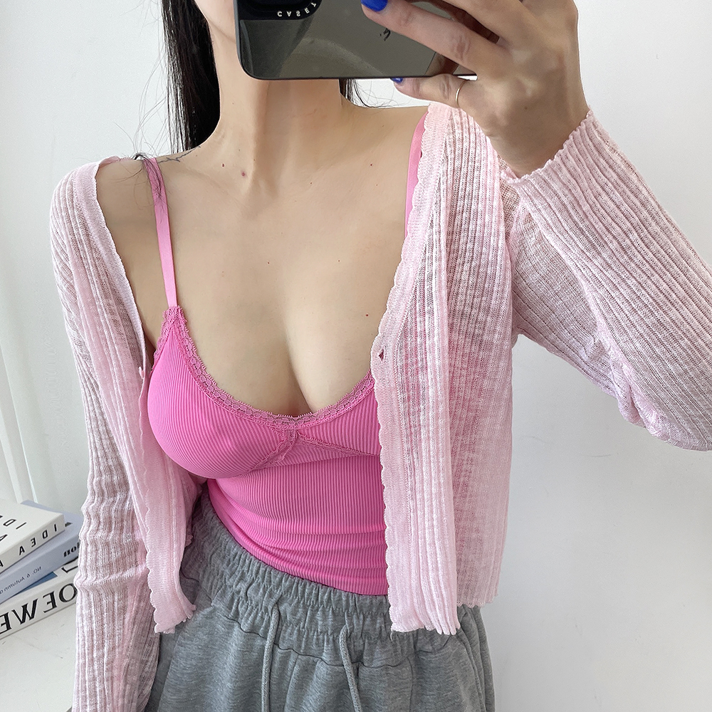 シースルーワンボタン長袖クロップドカーディガン(4col)