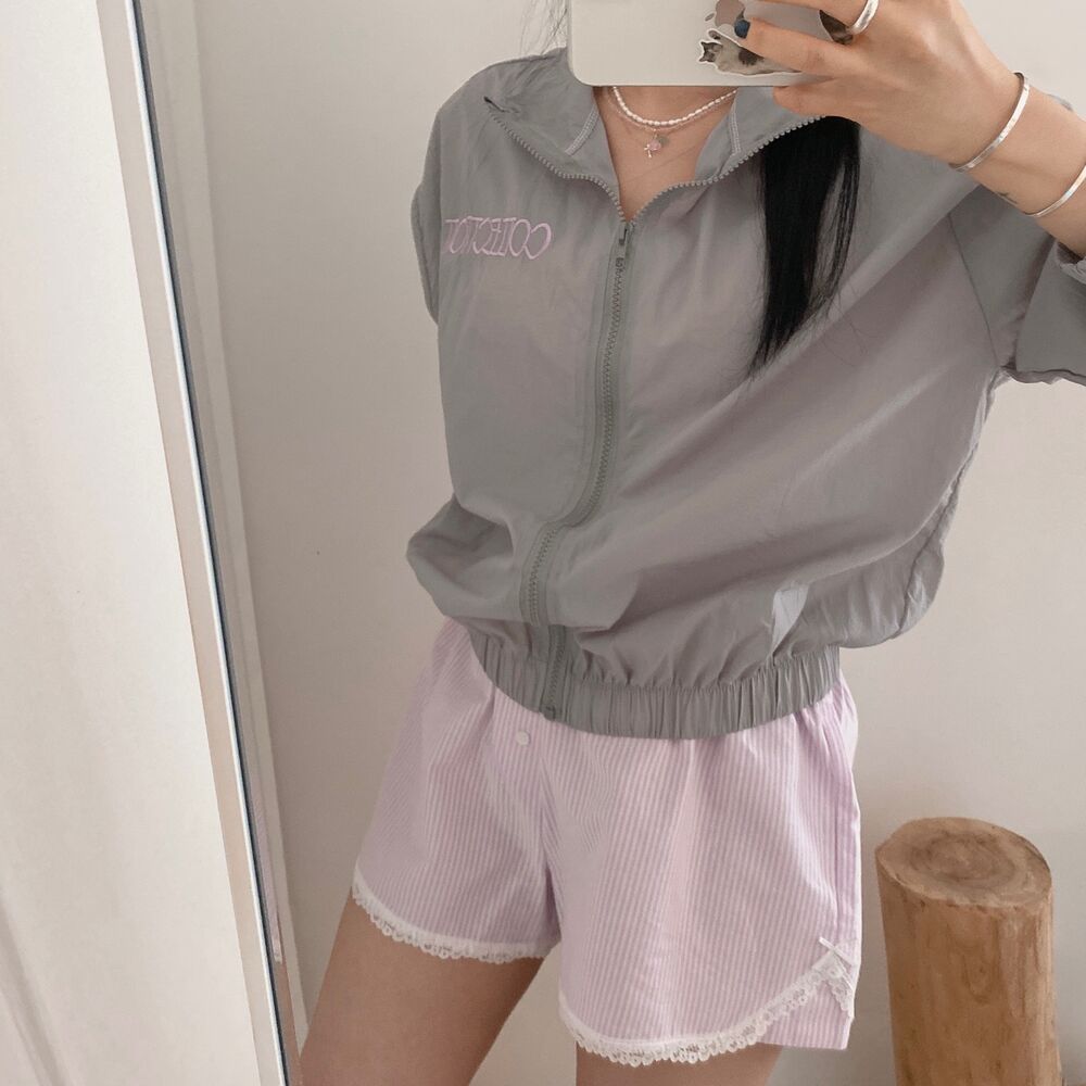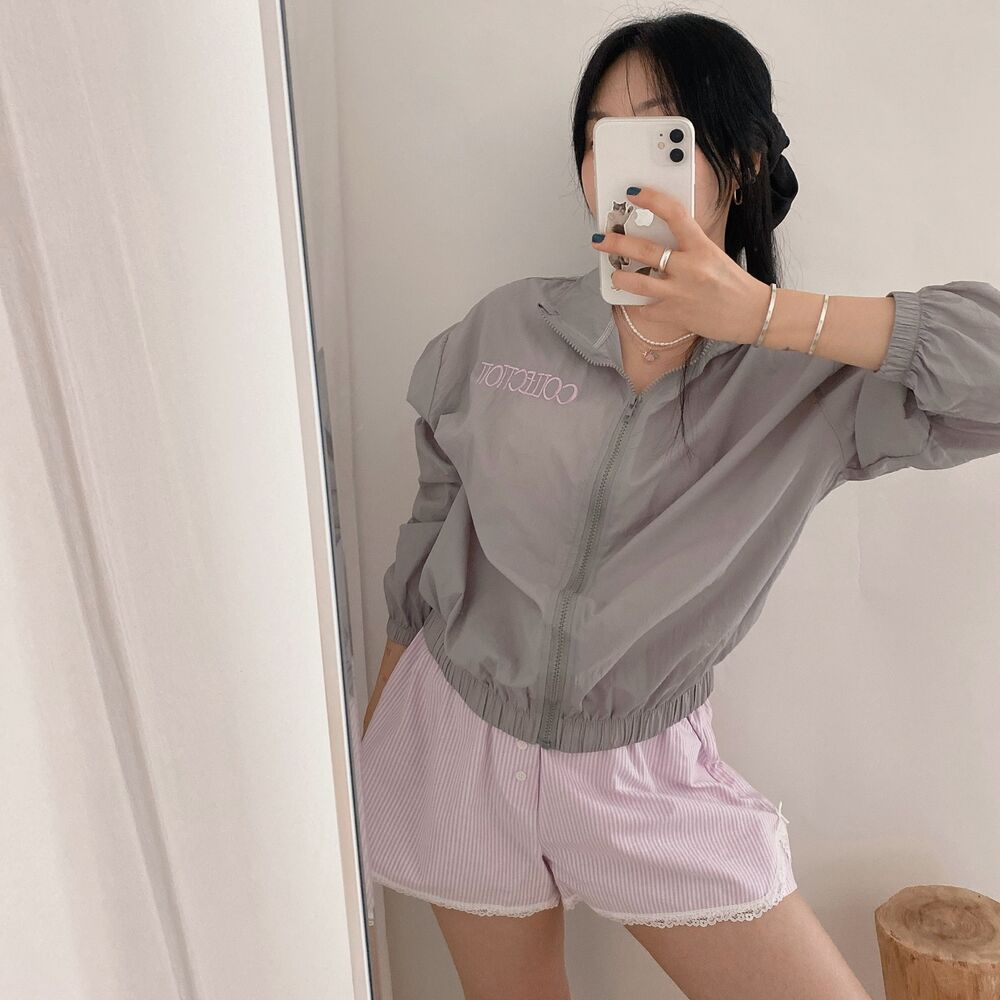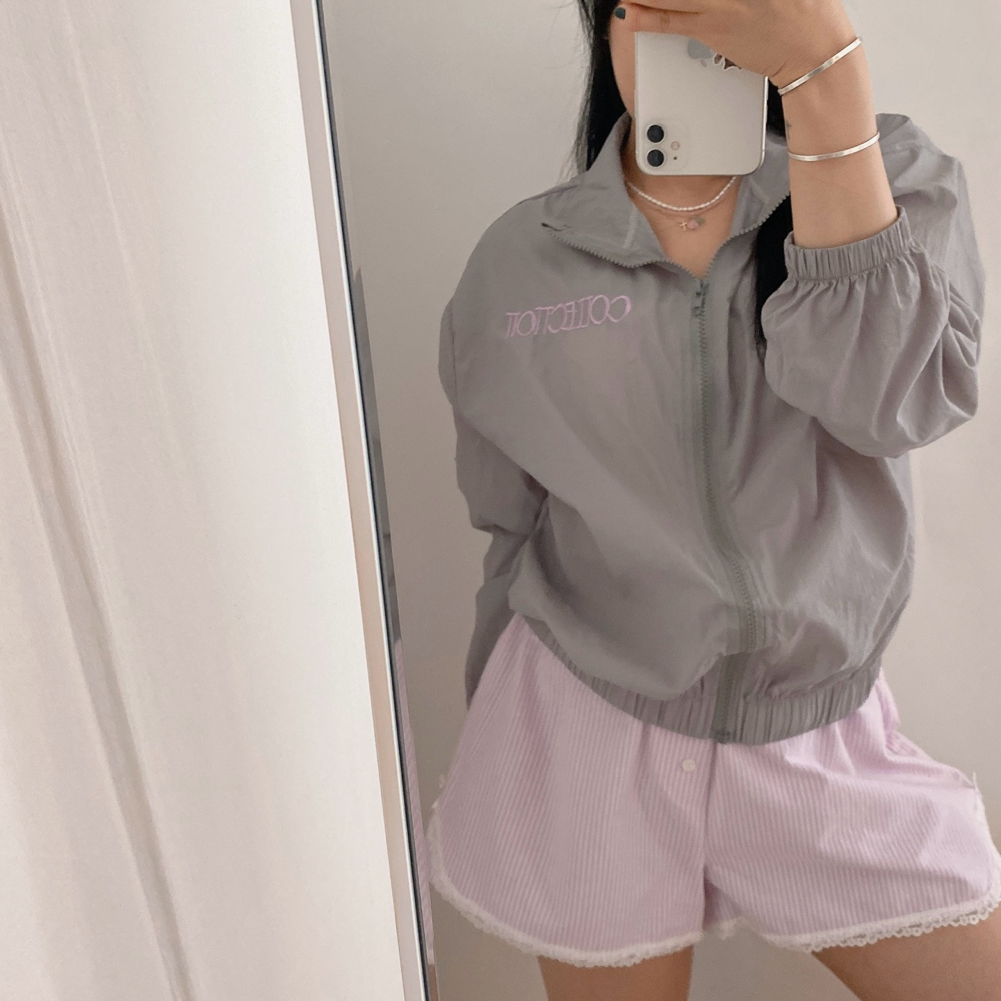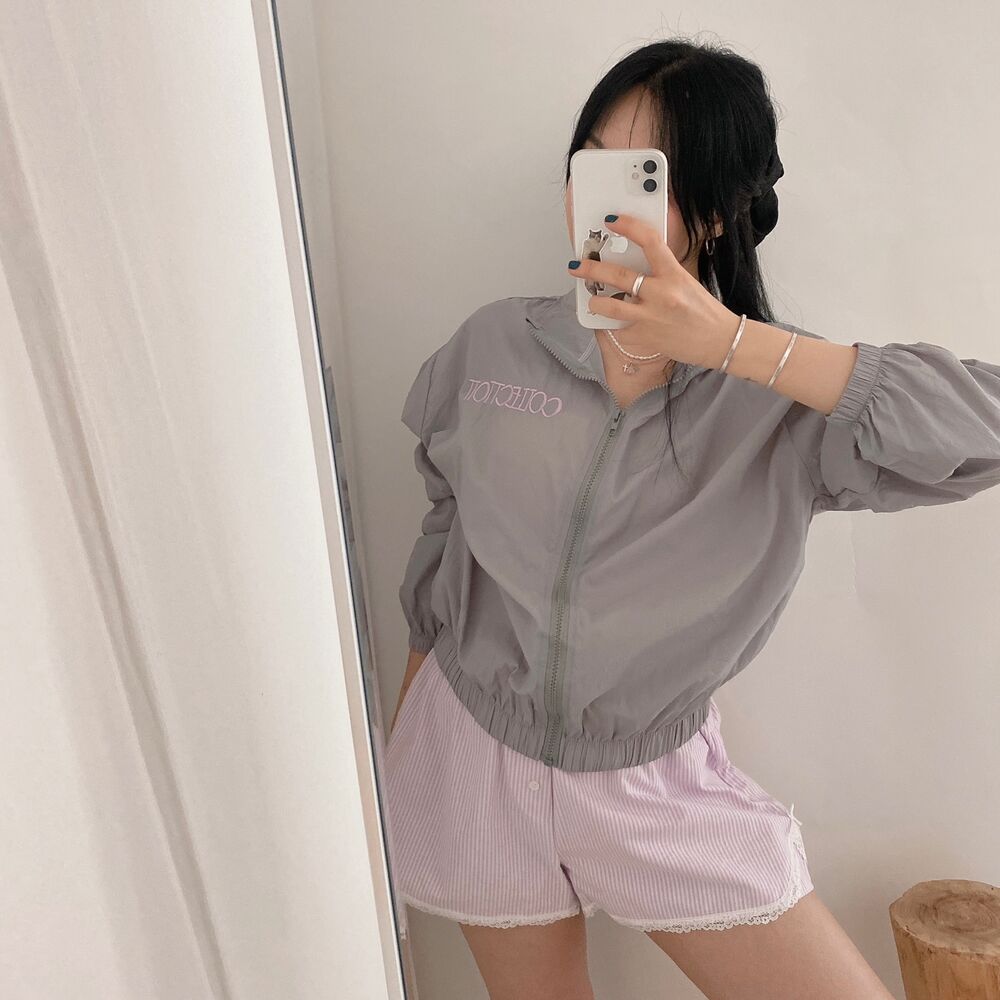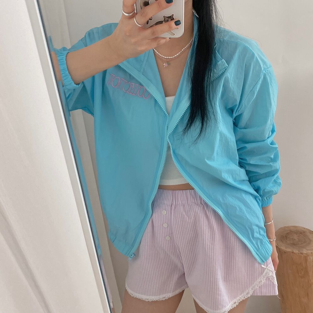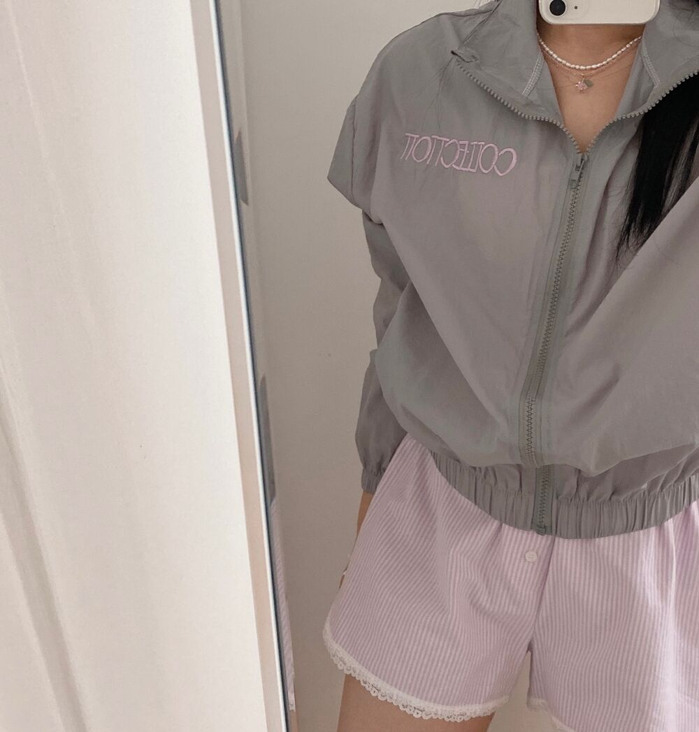 ピンク刺繍 カサゴレーン ジップアップウィンドブレーカー