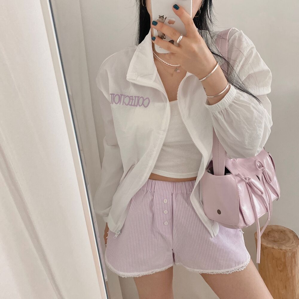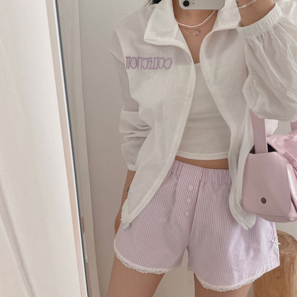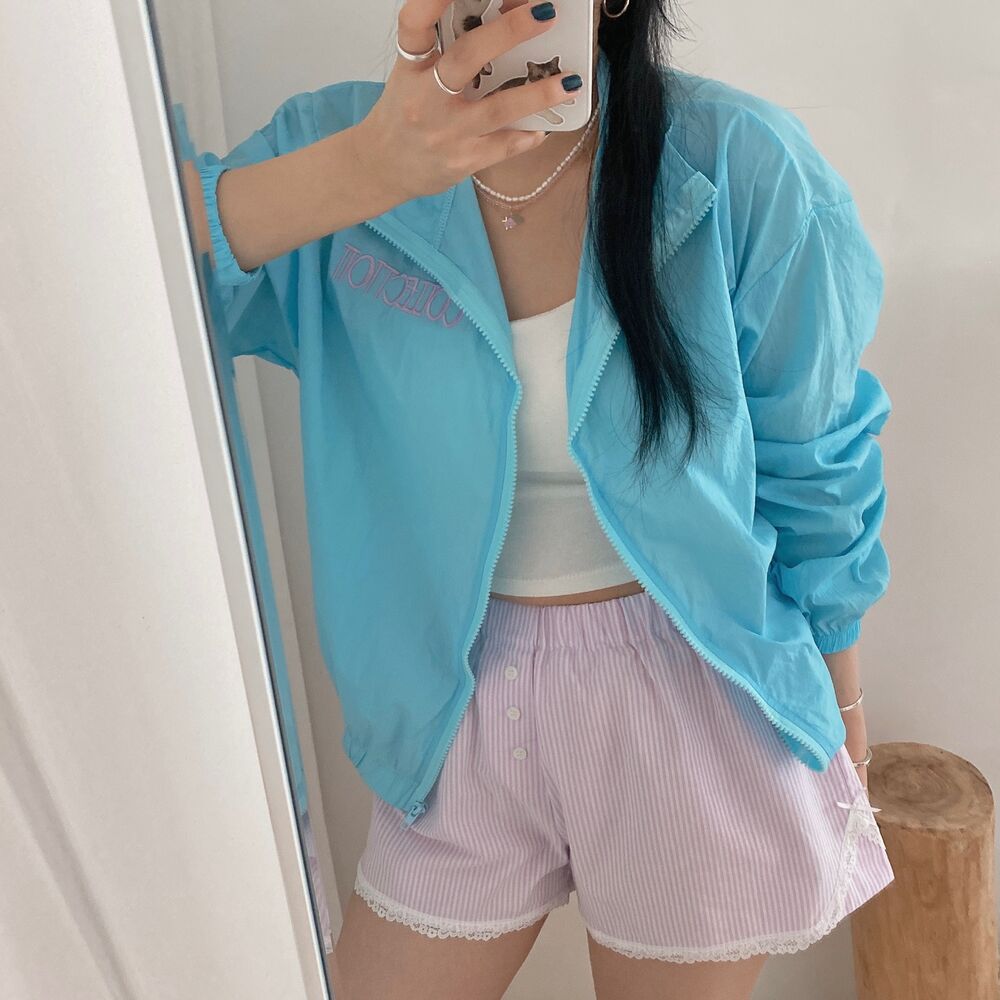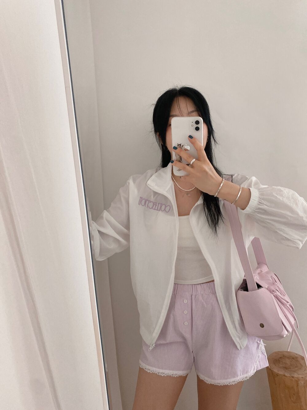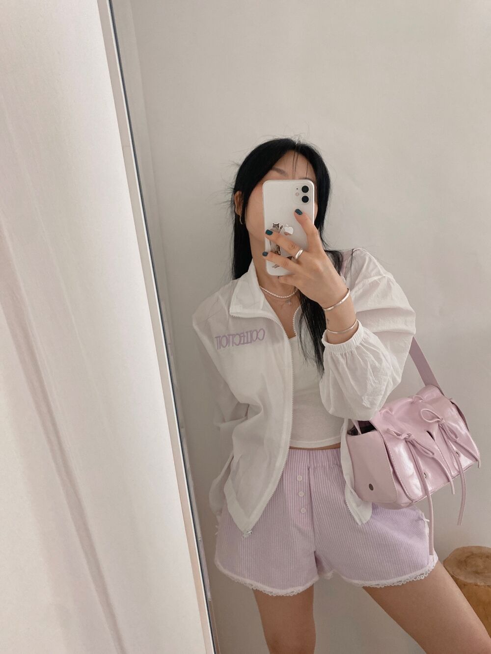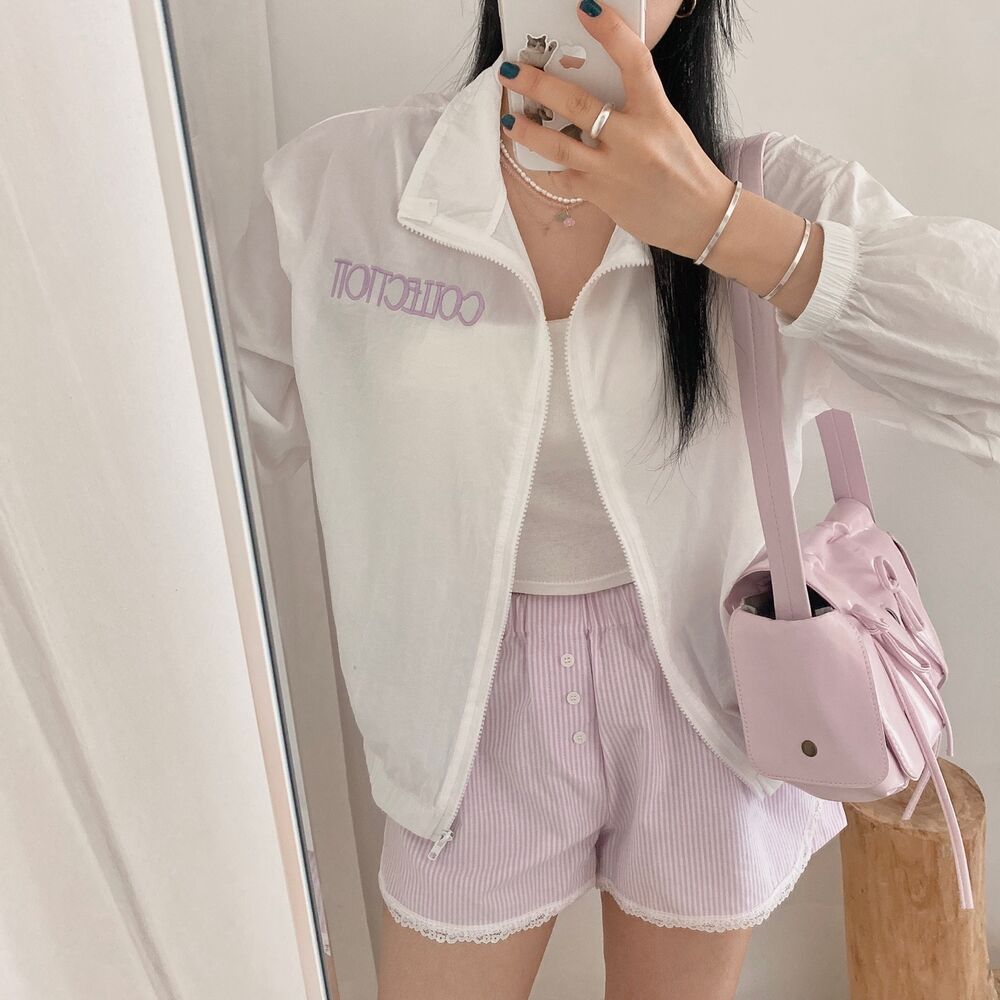 ピンク刺繍 カサゴレーン ジップアップウィンドブレーカー