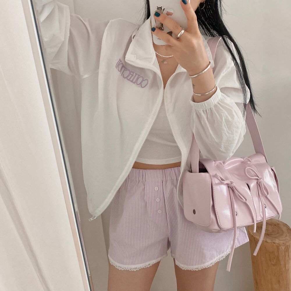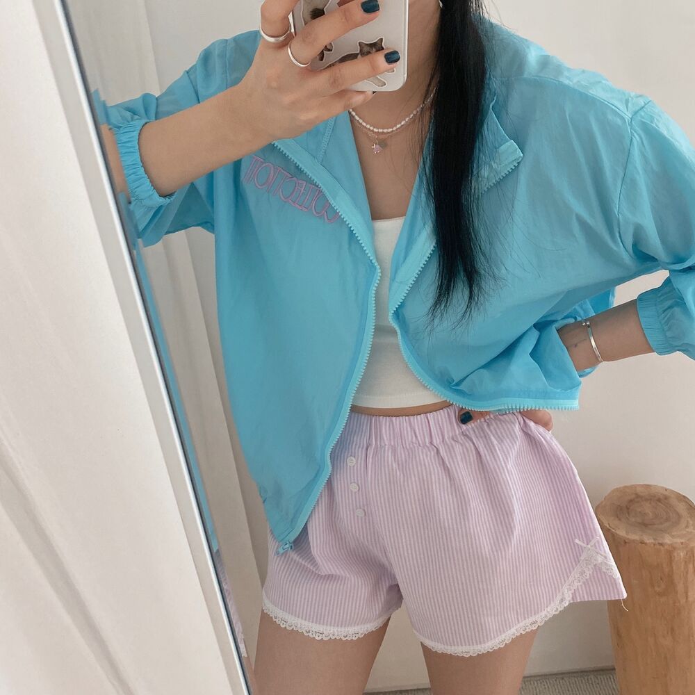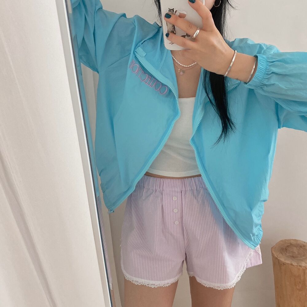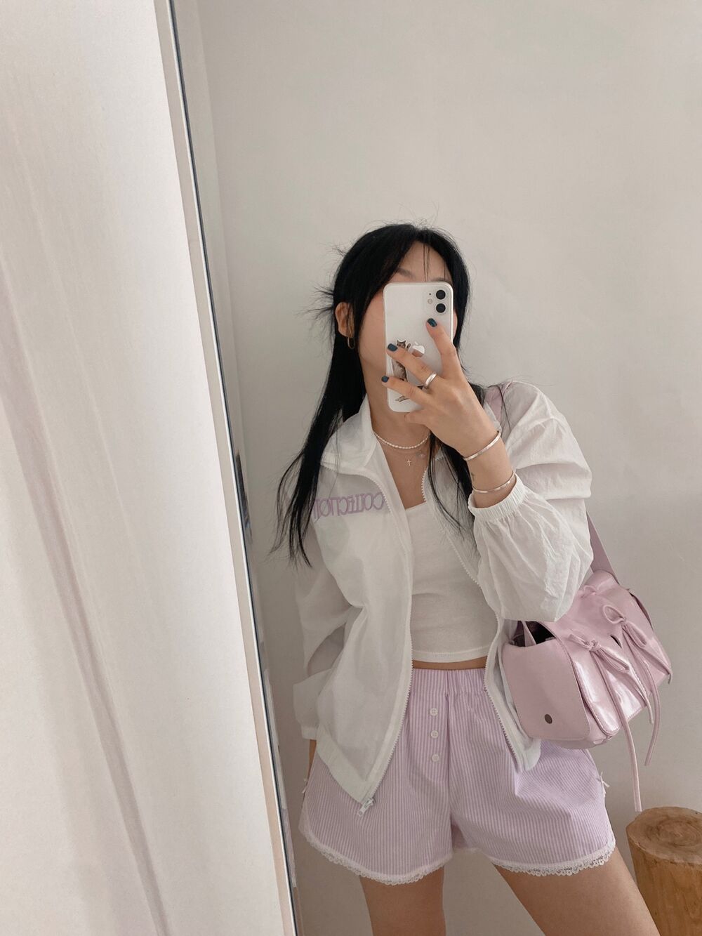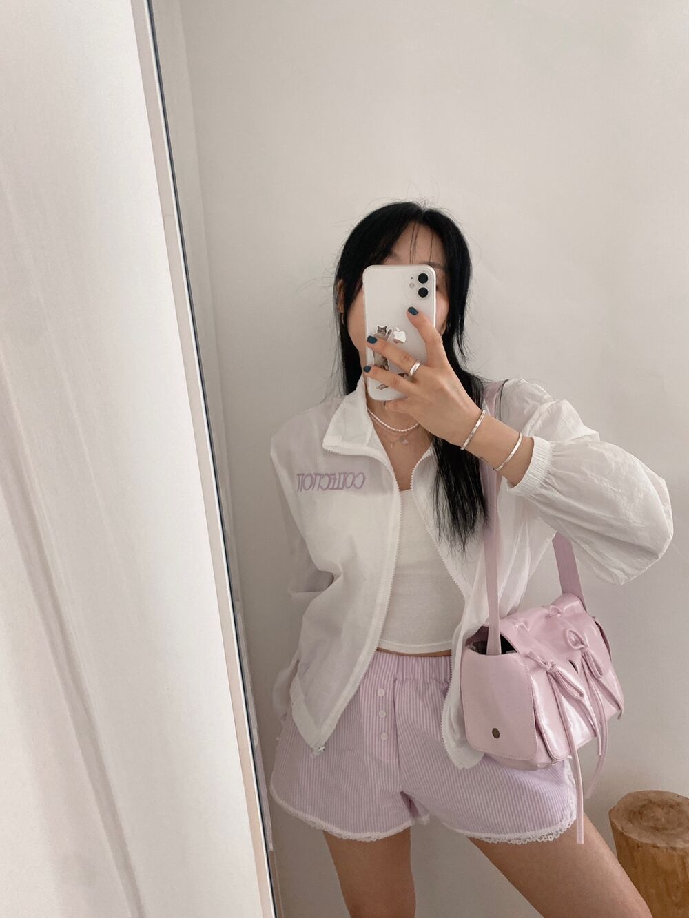 ピンク刺繍 カサゴレーン ジップアップウィンドブレーカー