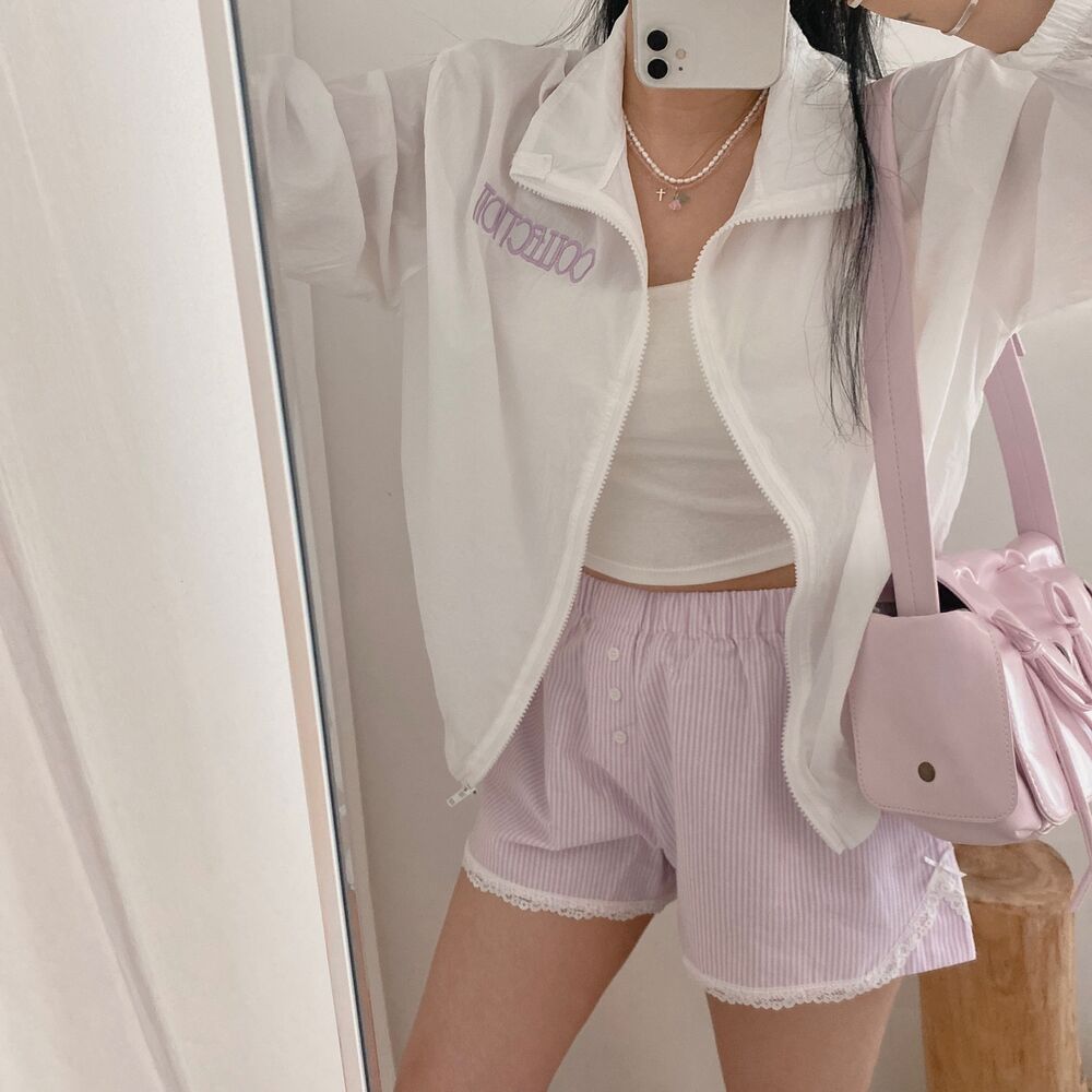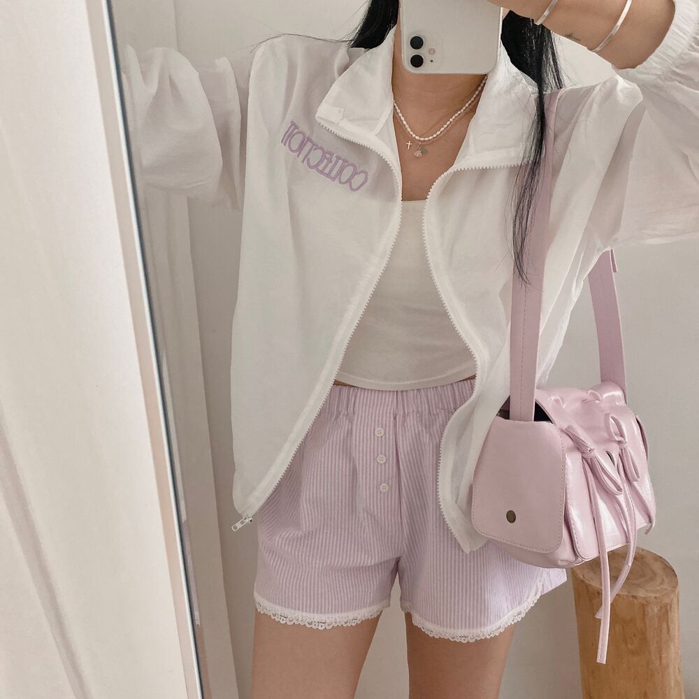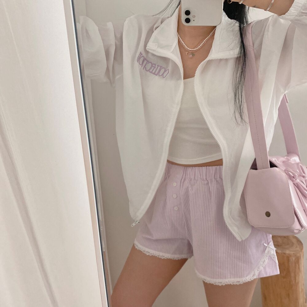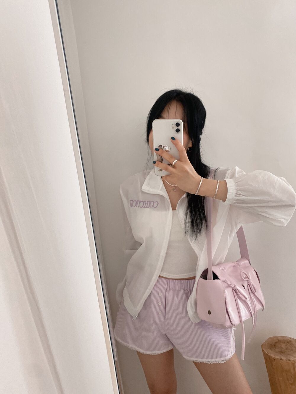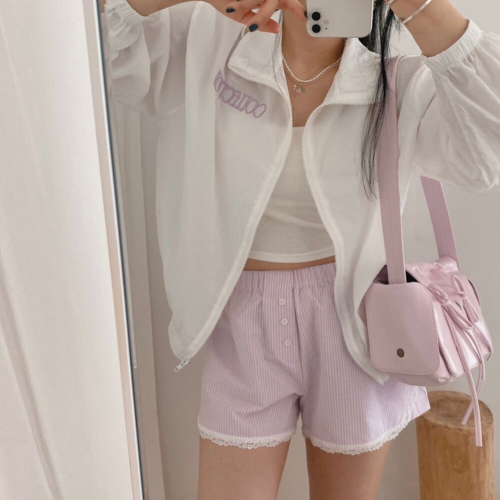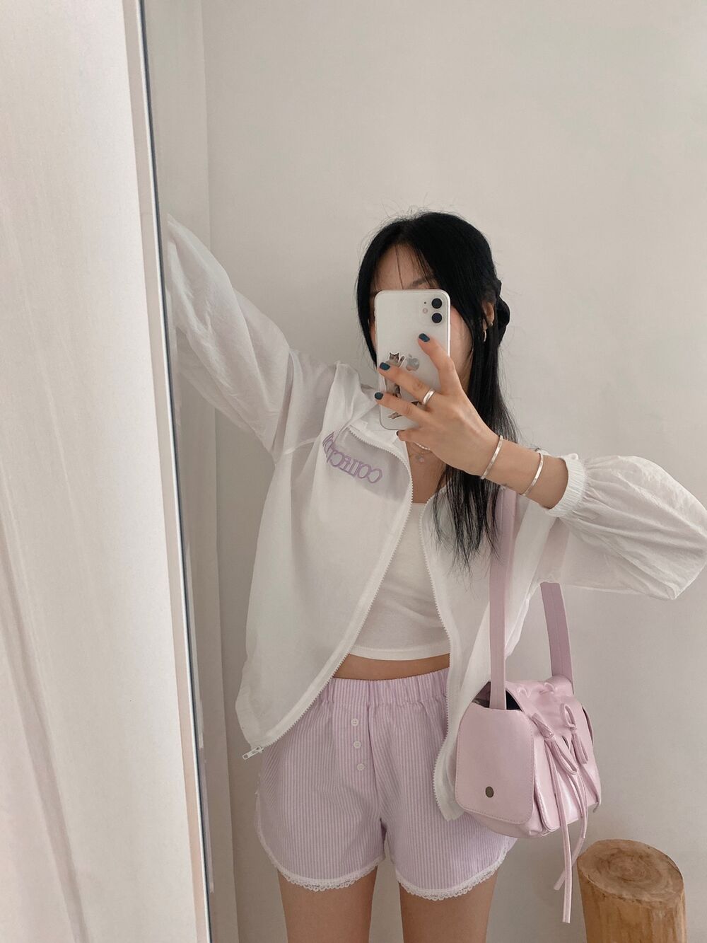 ピンク刺繍 カサゴレーン ジップアップウィンドブレーカー