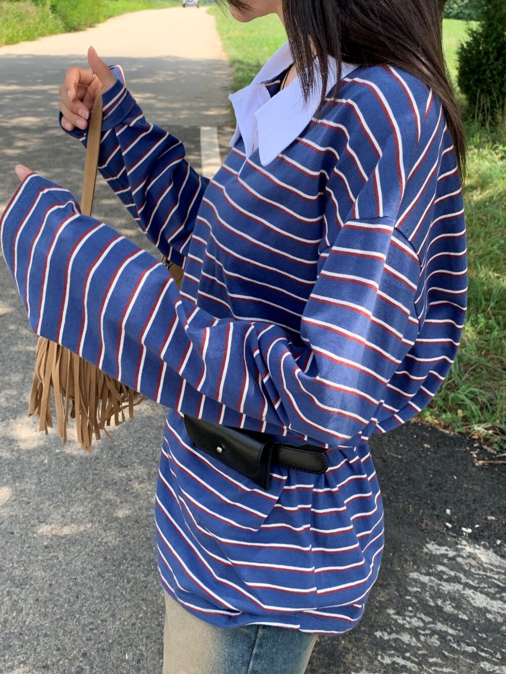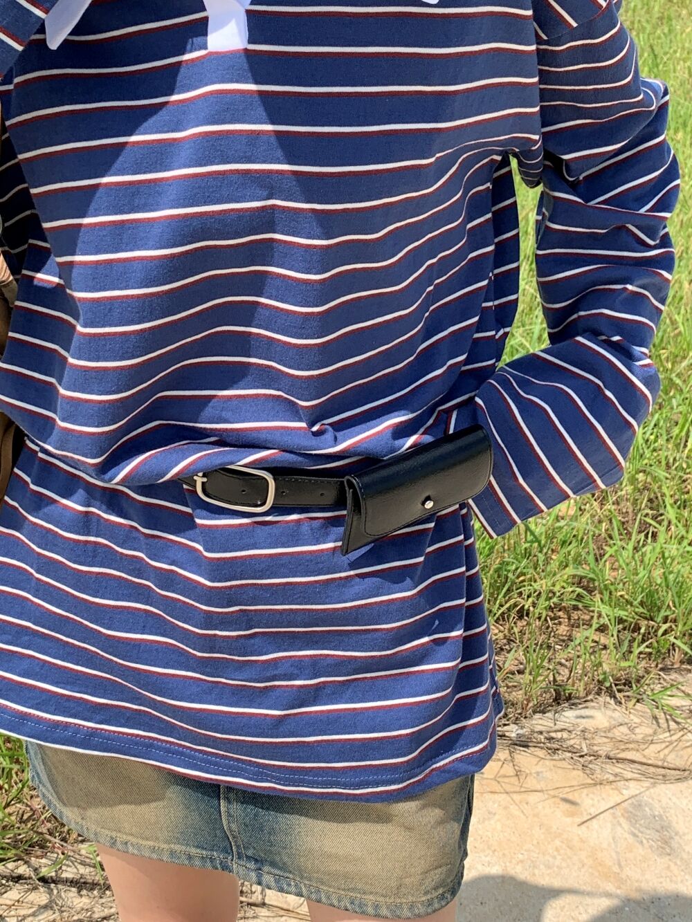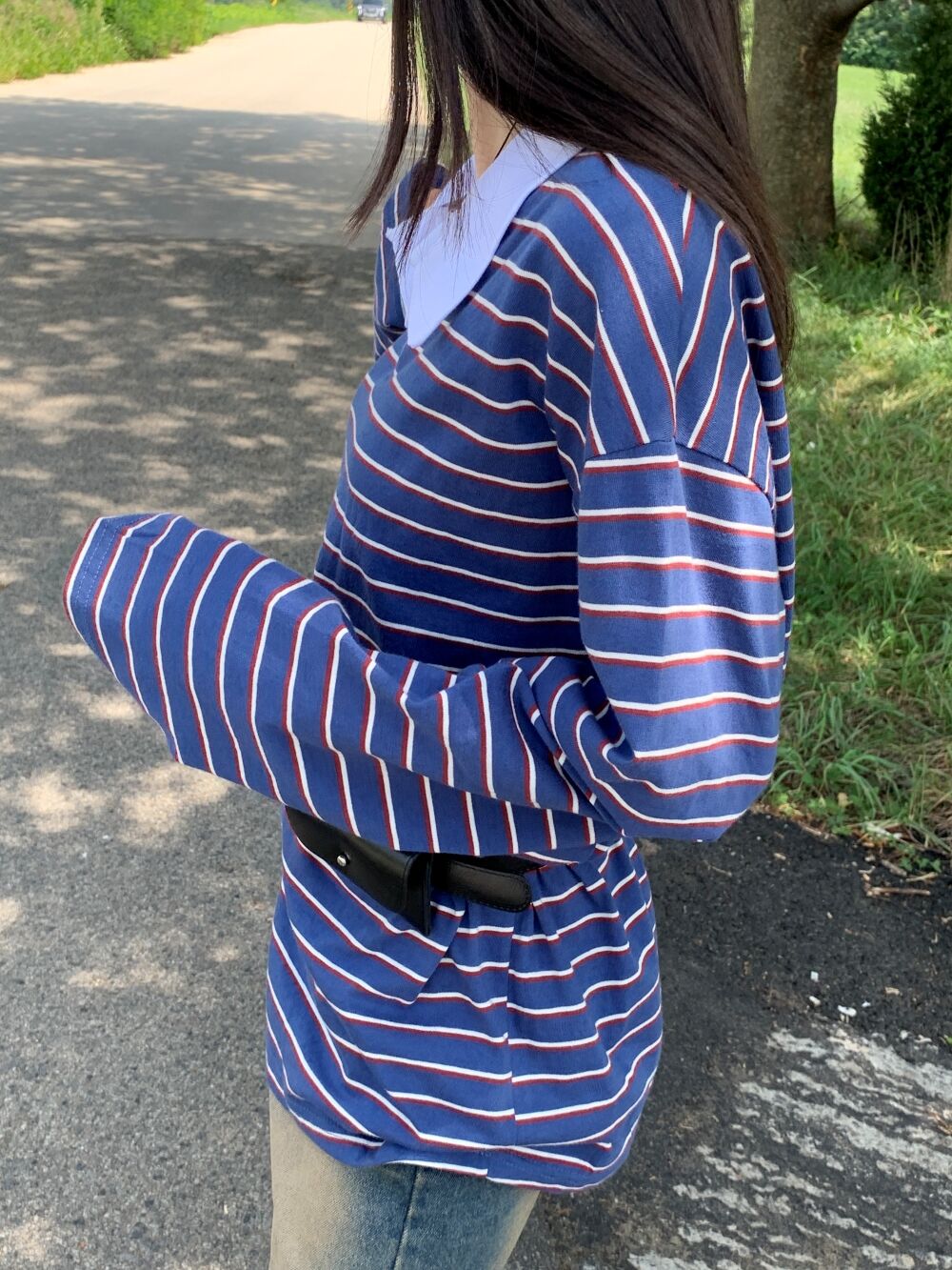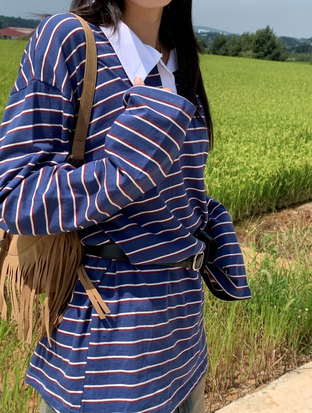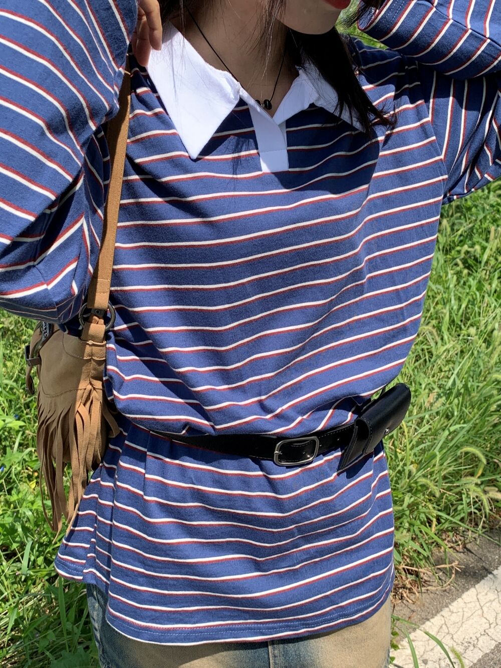 [3color]カジュアルカラーストライプ長袖Tシャツ